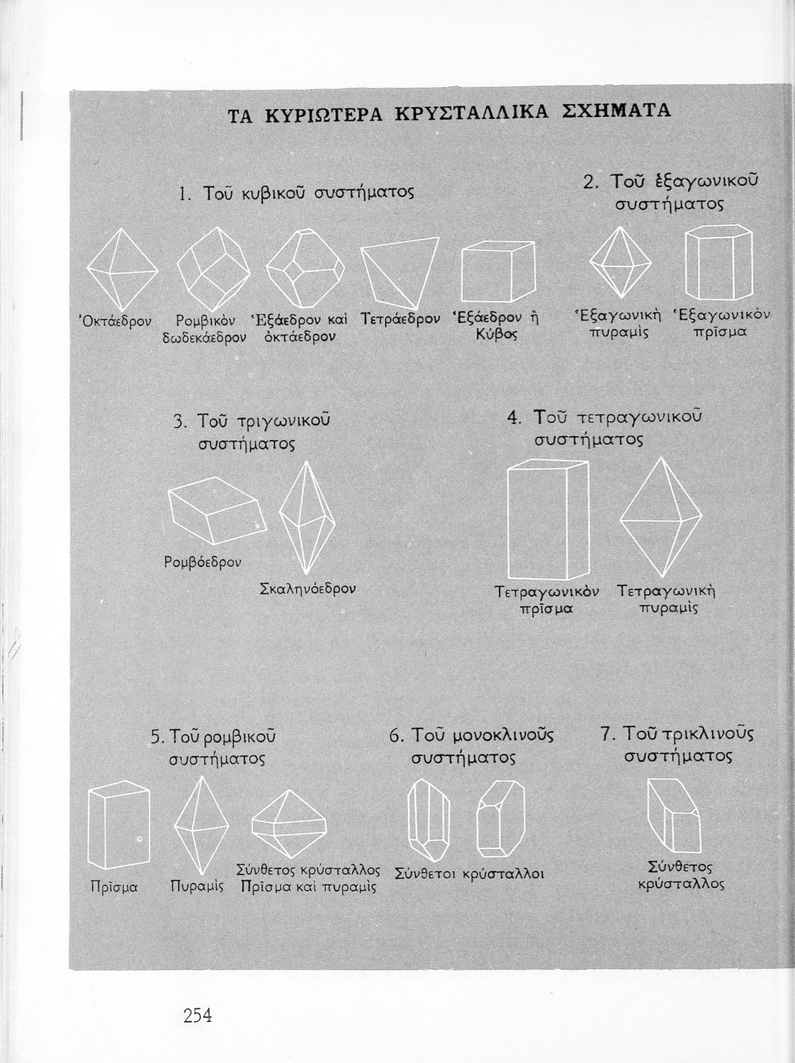 Σχολικό εγχειρίδιο Γεωλογίας/Ορυκτολογίας για την Α΄ Λυκείου που περιλαμβάνει χθονογραφική, δυναμική και ιστορική γεωλογία, και γενική και ειδική ορυκτολογία. Ο συγγραφέας ήταν καθηγητής πανεπιστημίου και η συγγραφέας φυσικός.