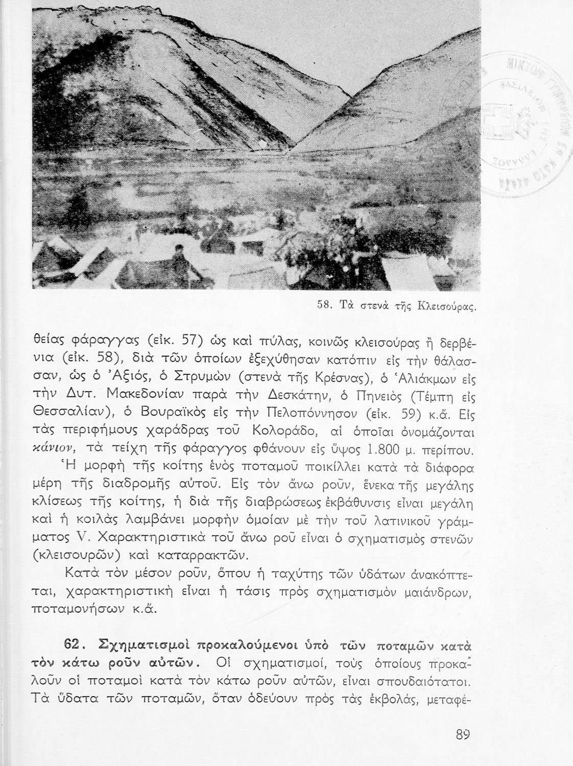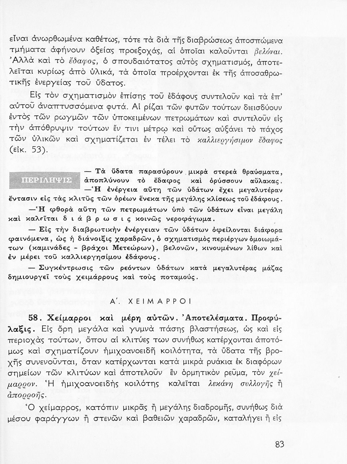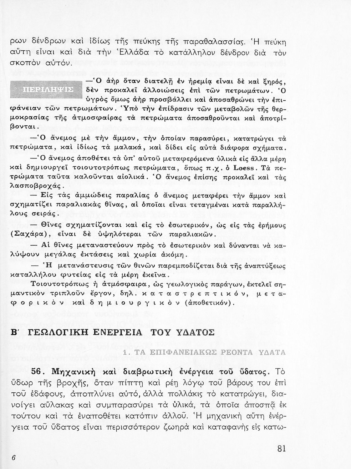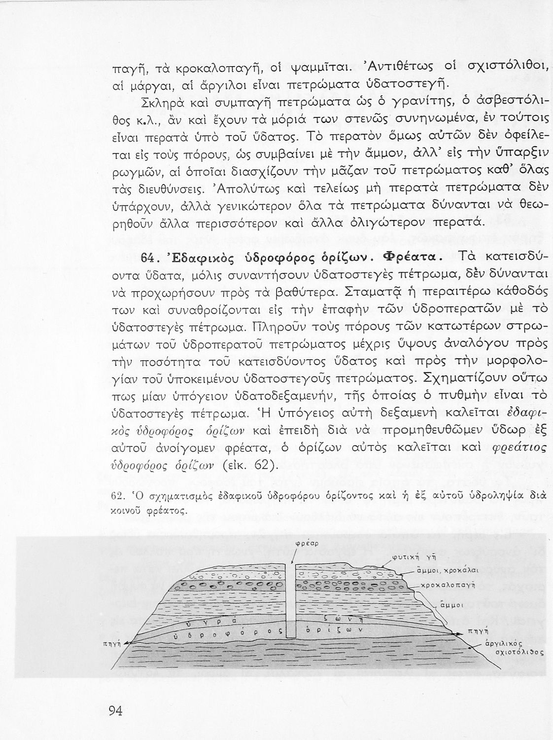 Βαθμίδα εκπαίδευσης: Δευτεροβάθμια Τάξη: Α' Λυκείου Μάθημα: Γεωλογία, Ορυκτολογία Γλώσσα: Απλή καθαρεύουσα Παρουσίαση περιεχομένου: Σχολικό εγχειρίδιο Γεωλογίας/Ορυκτολογίας για την Α΄ Λυκείου που περιλαμβάνει χθονογραφική, δυναμική και ιστορική γεωλογία, και γενική και ειδική ορυκτολογία. Ο συγγραφέας ήταν καθηγητής πανεπιστημίου και η συγγραφέας φυσικός. |