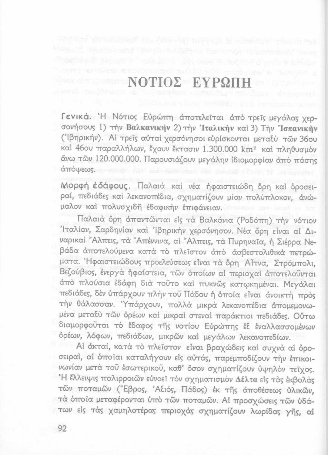 Σχολικό εγχειρίδιο Γεωγραφίας Β΄ Γυμνασίου που περιλαμβάνει εισαγωγή στη φυσική και πολιτισμική γεωγραφία της Ευρώπης και εξετάζει τις χώρες της από γεωμορφολογική, οικονομική και πολιτική άποψη.