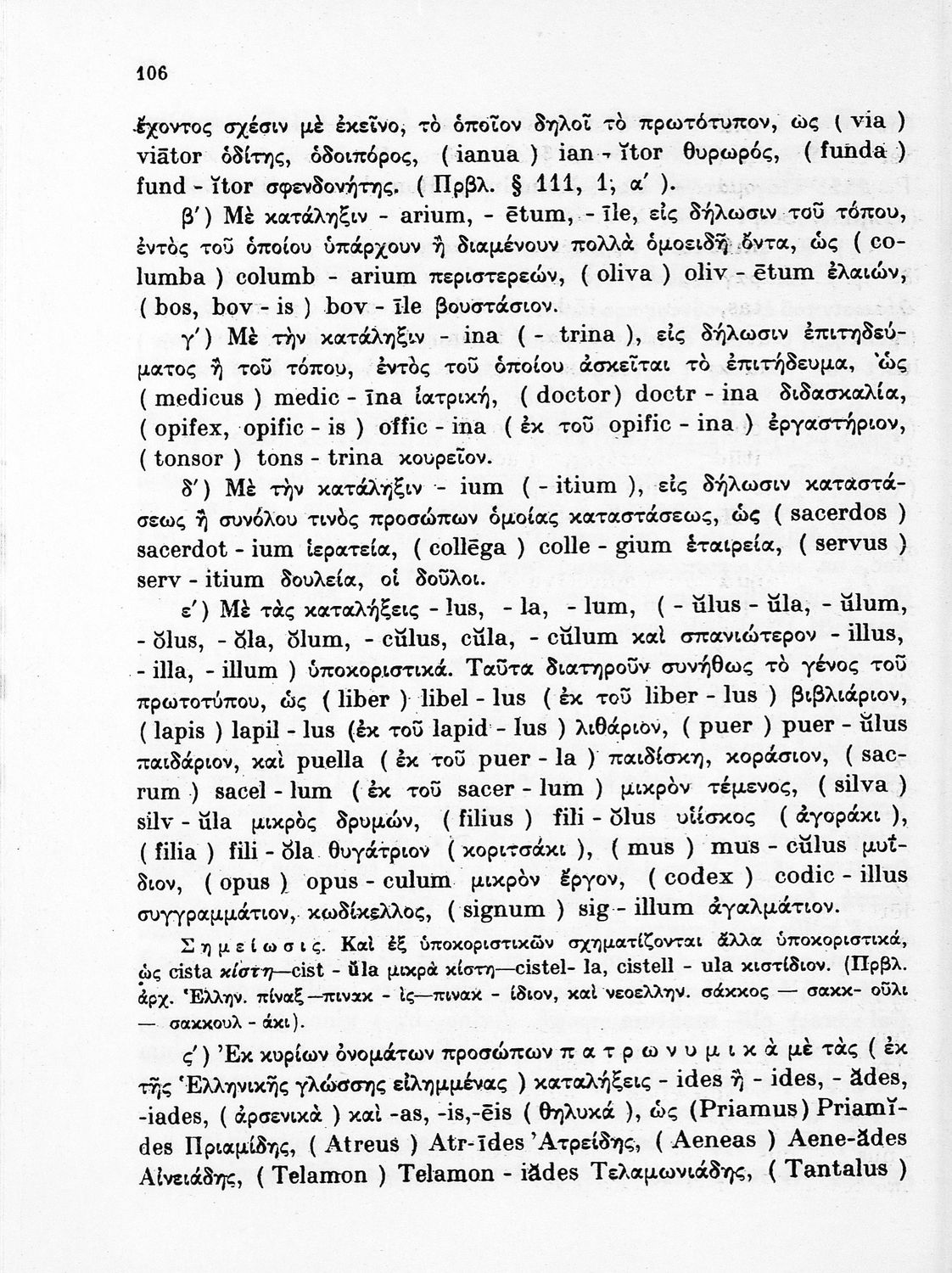Σχολικό εγχειρίδιο Λατινικών που περιλαμβάνει τη γραμματική της λατινικής και είναι χωρισμένο στο φθογγολογικό, το τυπολογικό και το ετυμολογικό μέρος. Περιέχει και τους συντακτικούς κανόνες της λατινικής.