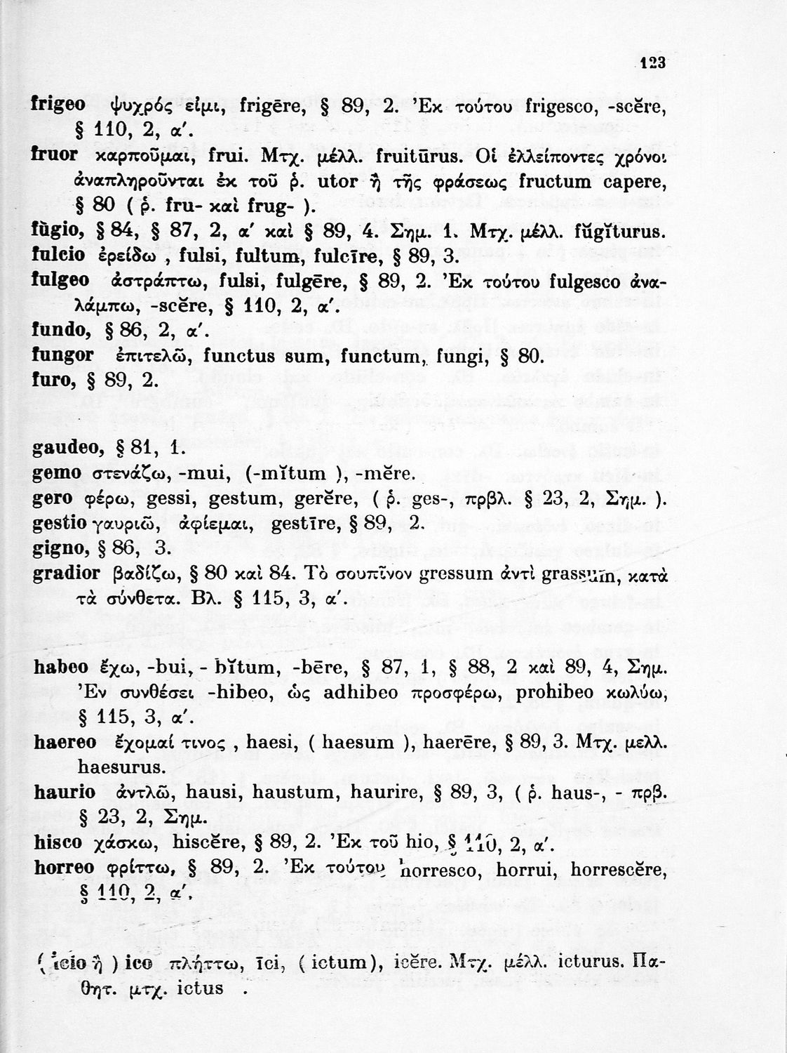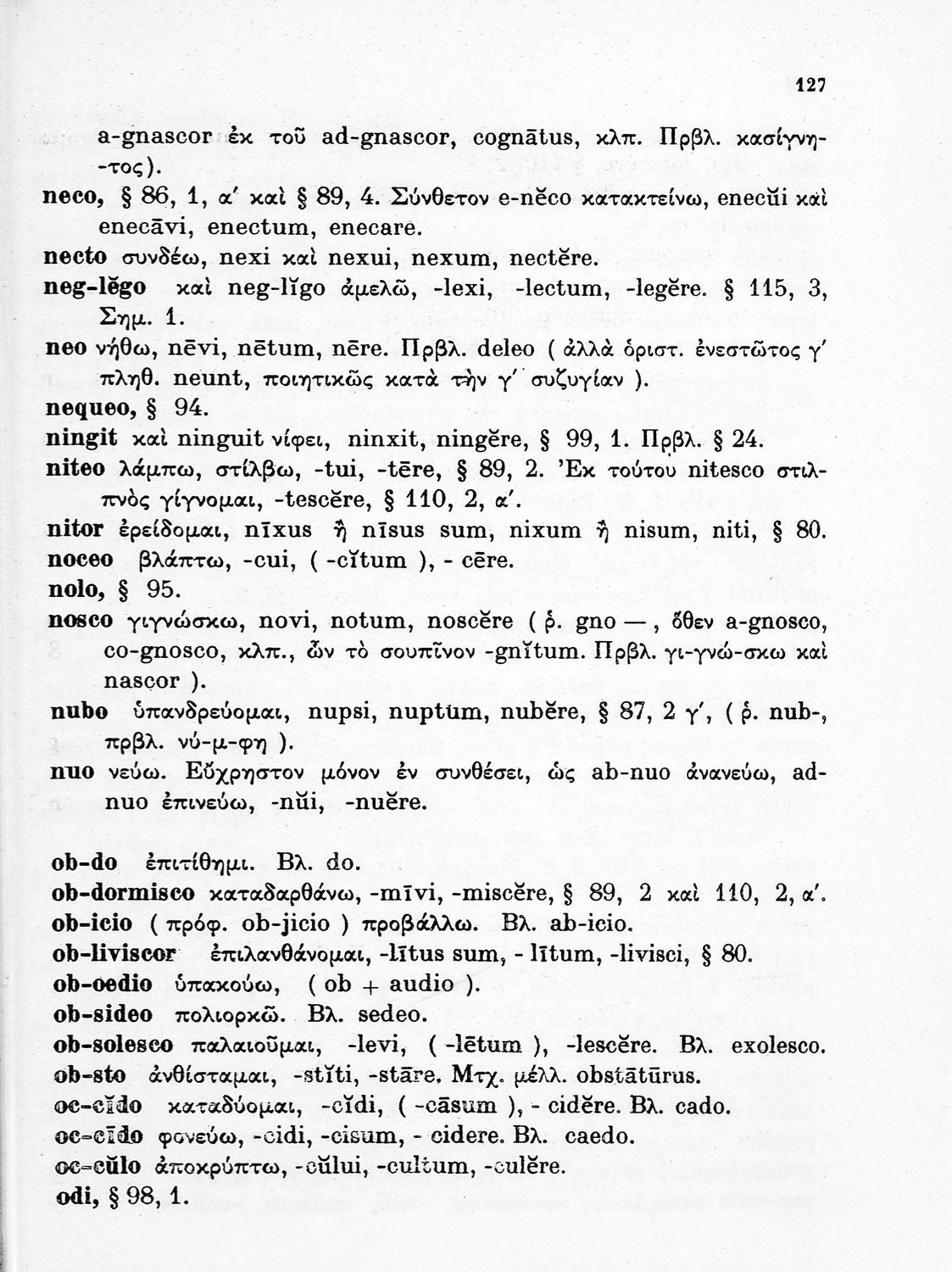 Σχολικό εγχειρίδιο Αρχαίων Ελληνικών Γυμνασίου που περιέχει τους κανόνες γραμματικής και είναι χωρισμένο σε φθογγολογικό, τυπολογικό και ετυμολογικό μέρος. Περιέχει και κατάλογο ανωμάλων ρημάτων.