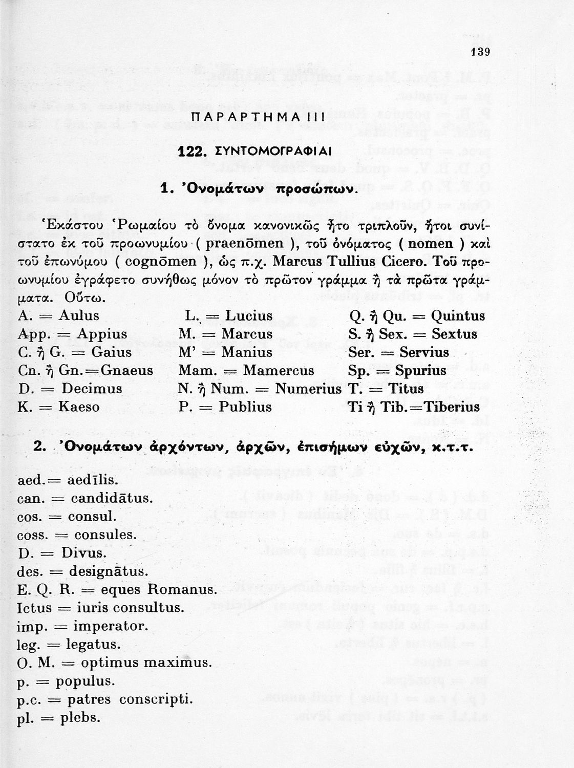 Σχολικό εγχειρίδιο Λατινικών που περιλαμβάνει τη γραμματική της λατινικής και είναι χωρισμένο στο φθογγολογικό, το τυπολογικό και το ετυμολογικό μέρος. Περιέχει και τους συντακτικούς κανόνες της λατινικής.