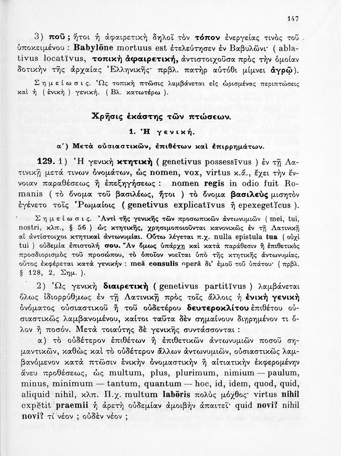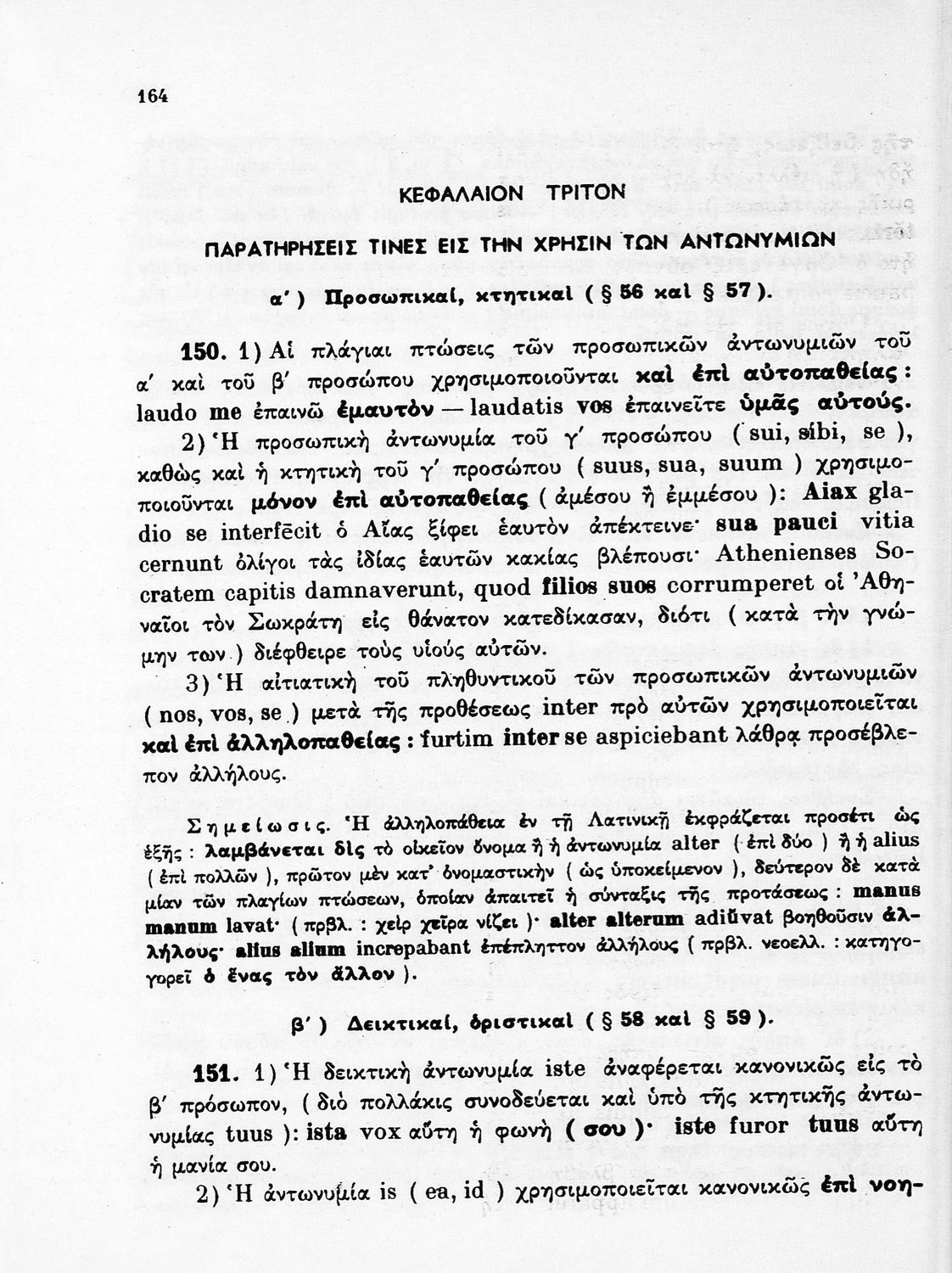 Σχολικό εγχειρίδιο Λατινικών που περιλαμβάνει τη γραμματική της λατινικής και είναι χωρισμένο στο φθογγολογικό, το τυπολογικό και το ετυμολογικό μέρος. Περιέχει και τους συντακτικούς κανόνες της λατινικής.