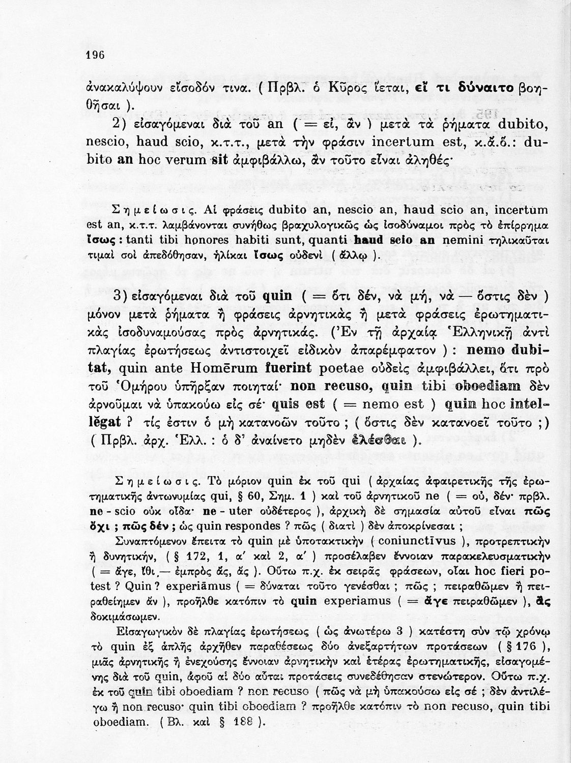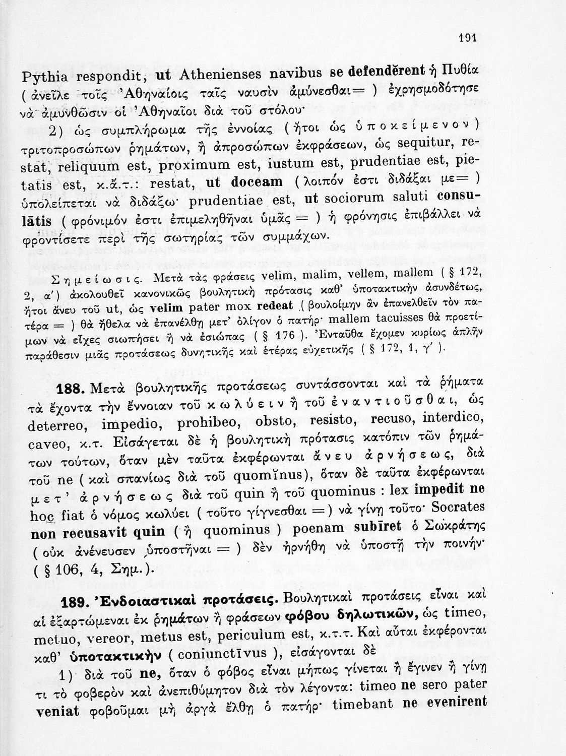 Γραμματικής της λατινικής γλώσσας για τα Ελληνικά Σχολεία και Γυμνάσια που περιέχει δύο τμήματα: το τεχνολογικό που εστιάζει στα μέρη του λόγου και το συντακτικό που ασχολείται με τις πτώσεις, τις εγκλίσεις, ...