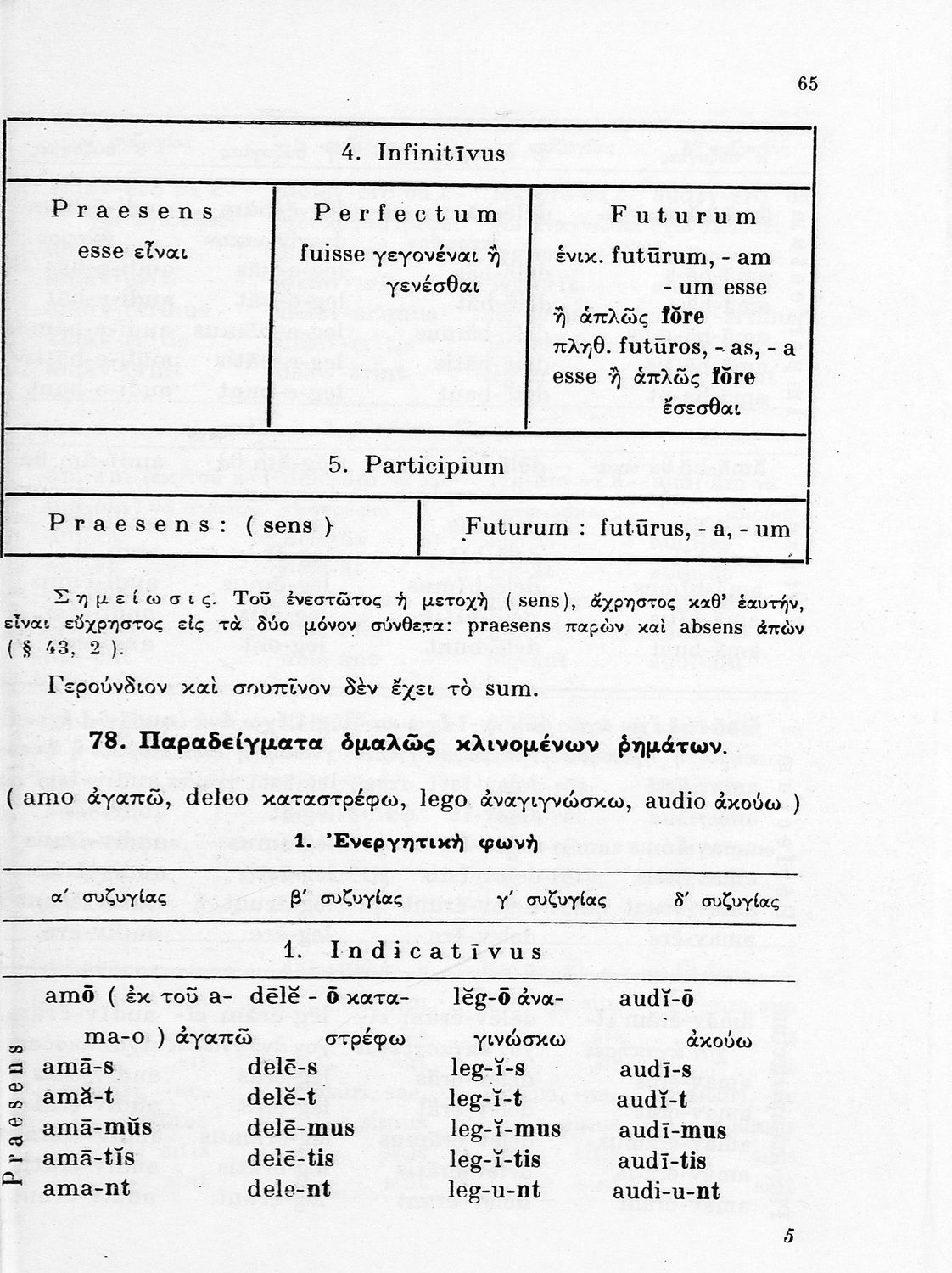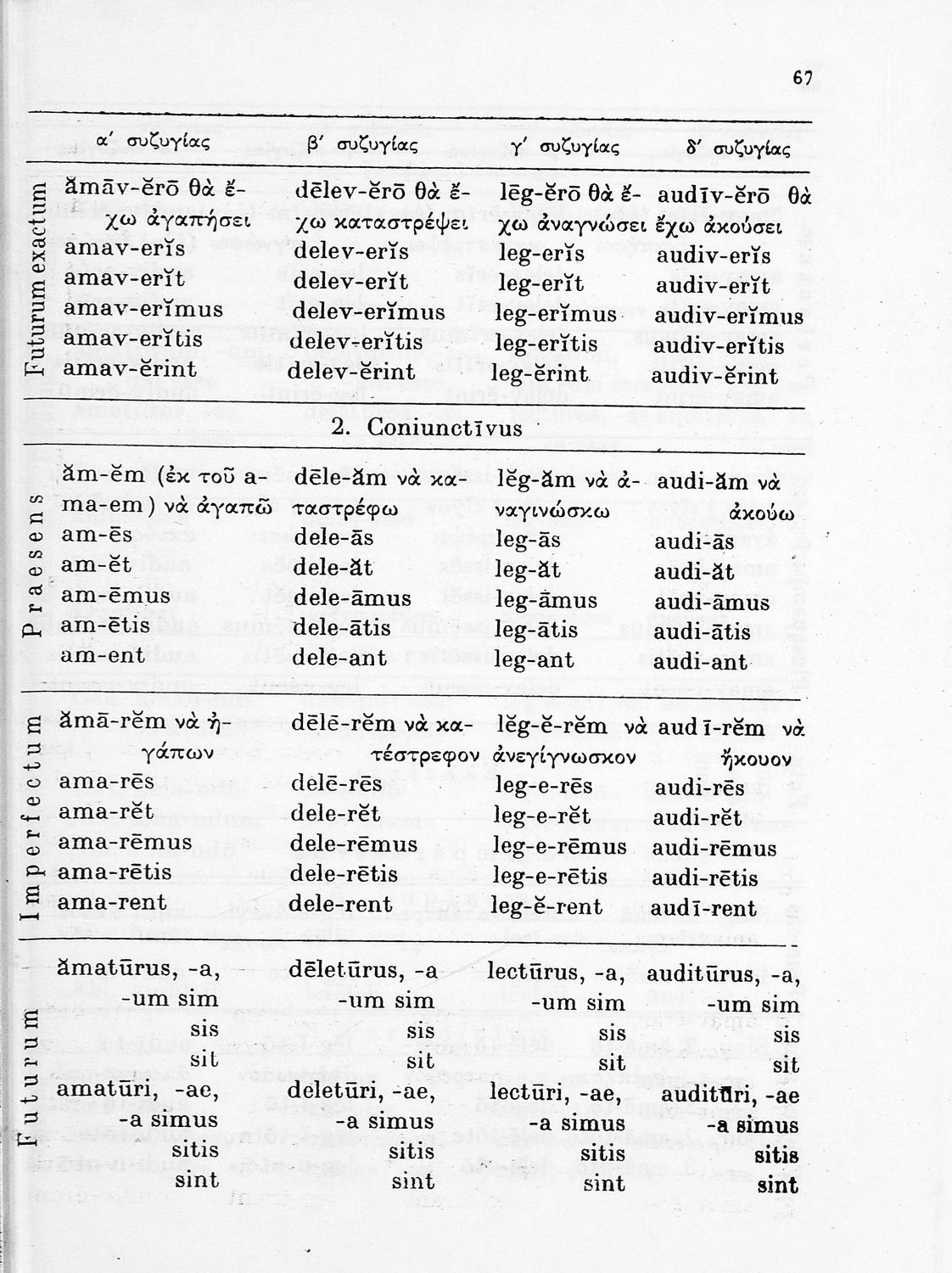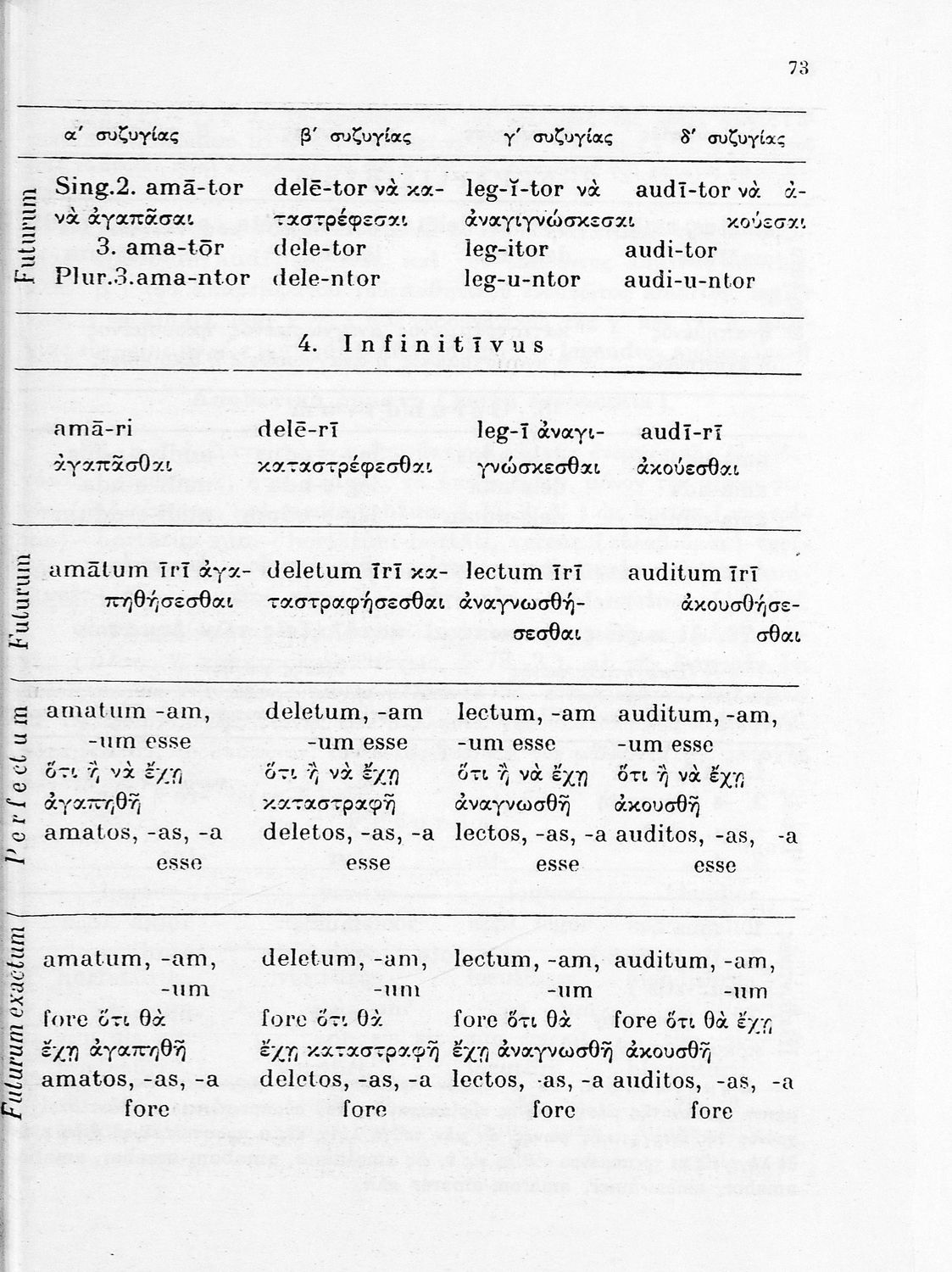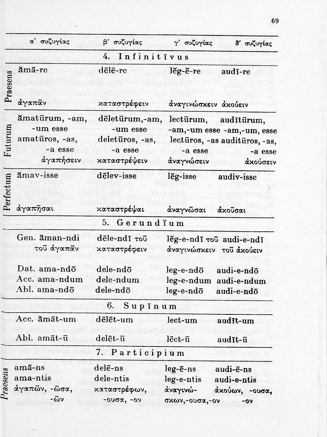 Σχολικό εγχειρίδιο Λατινικών που περιλαμβάνει τη γραμματική της λατινικής και είναι χωρισμένο στο φθογγολογικό, το τυπολογικό και το ετυμολογικό μέρος. Περιέχει και τους συντακτικούς κανόνες της λατινικής.