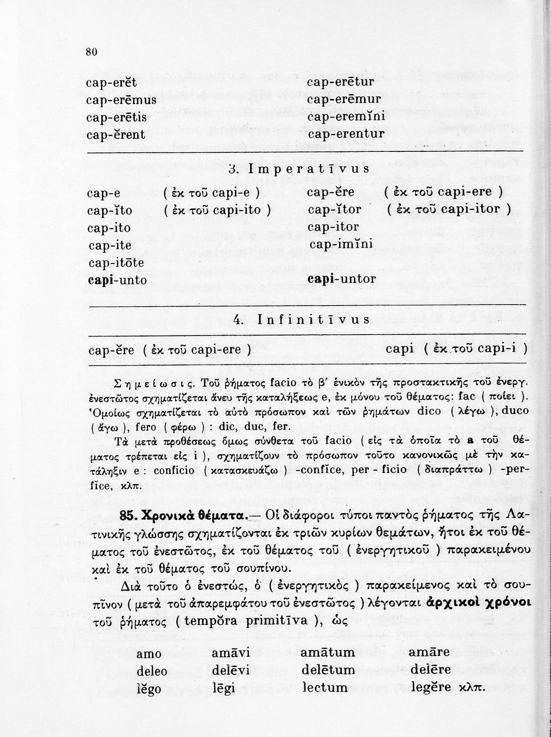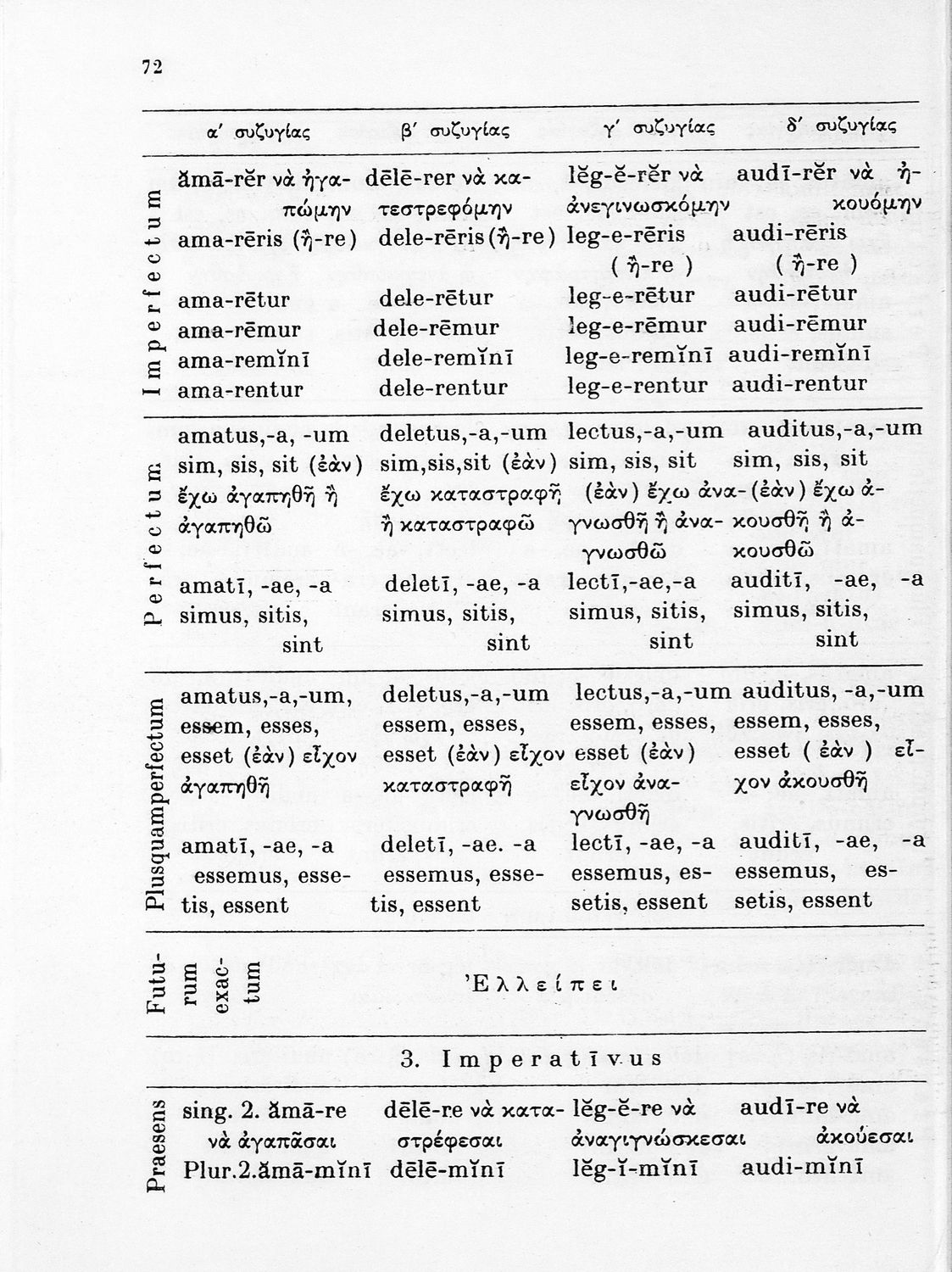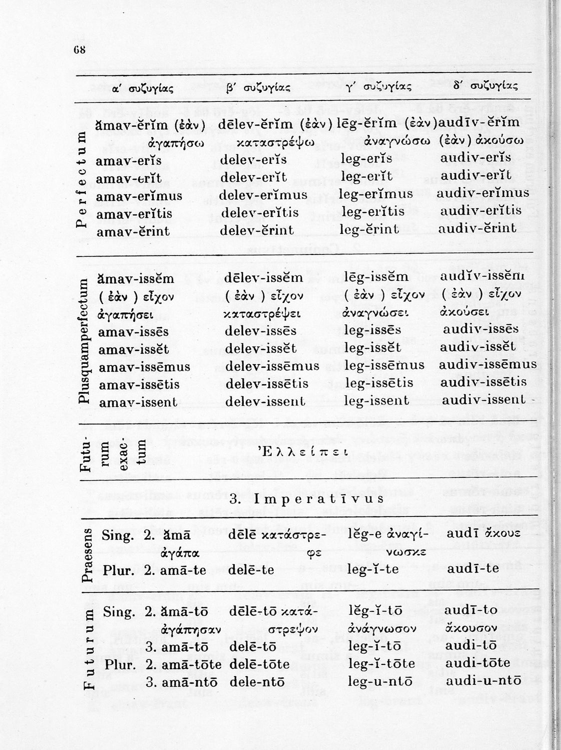 Σχολικό εγχειρίδιο Λατινικών που περιλαμβάνει τη γραμματική της λατινικής και είναι χωρισμένο στο φθογγολογικό, το τυπολογικό και το ετυμολογικό μέρος. Περιέχει και τους συντακτικούς κανόνες της λατινικής.