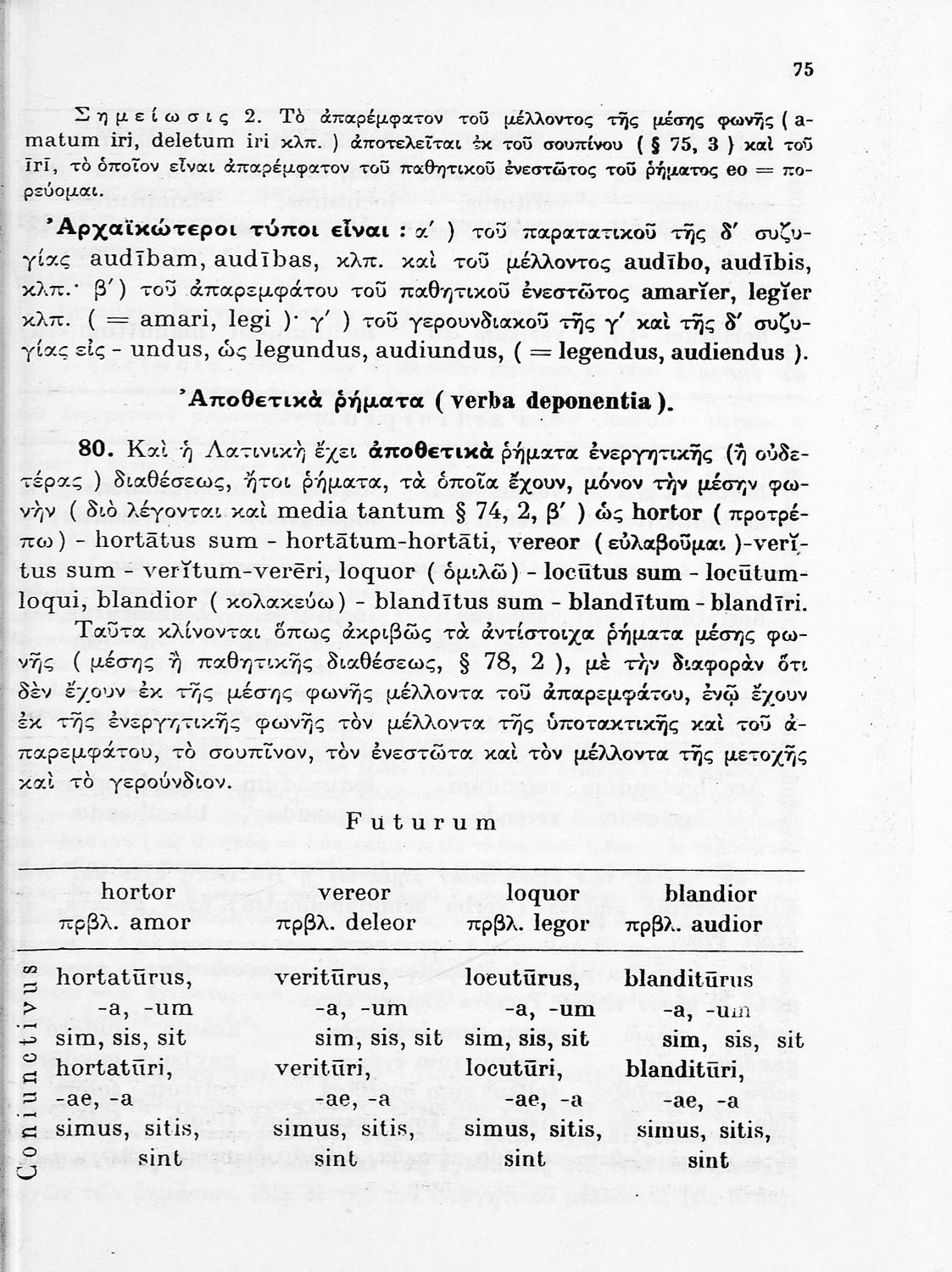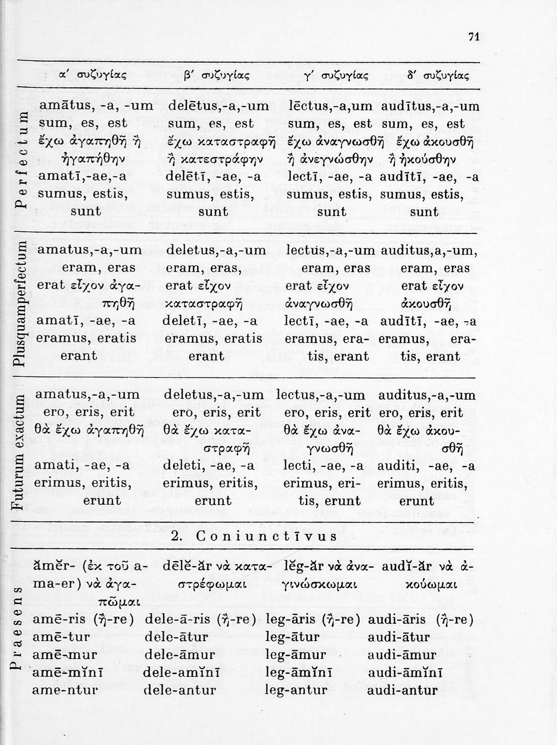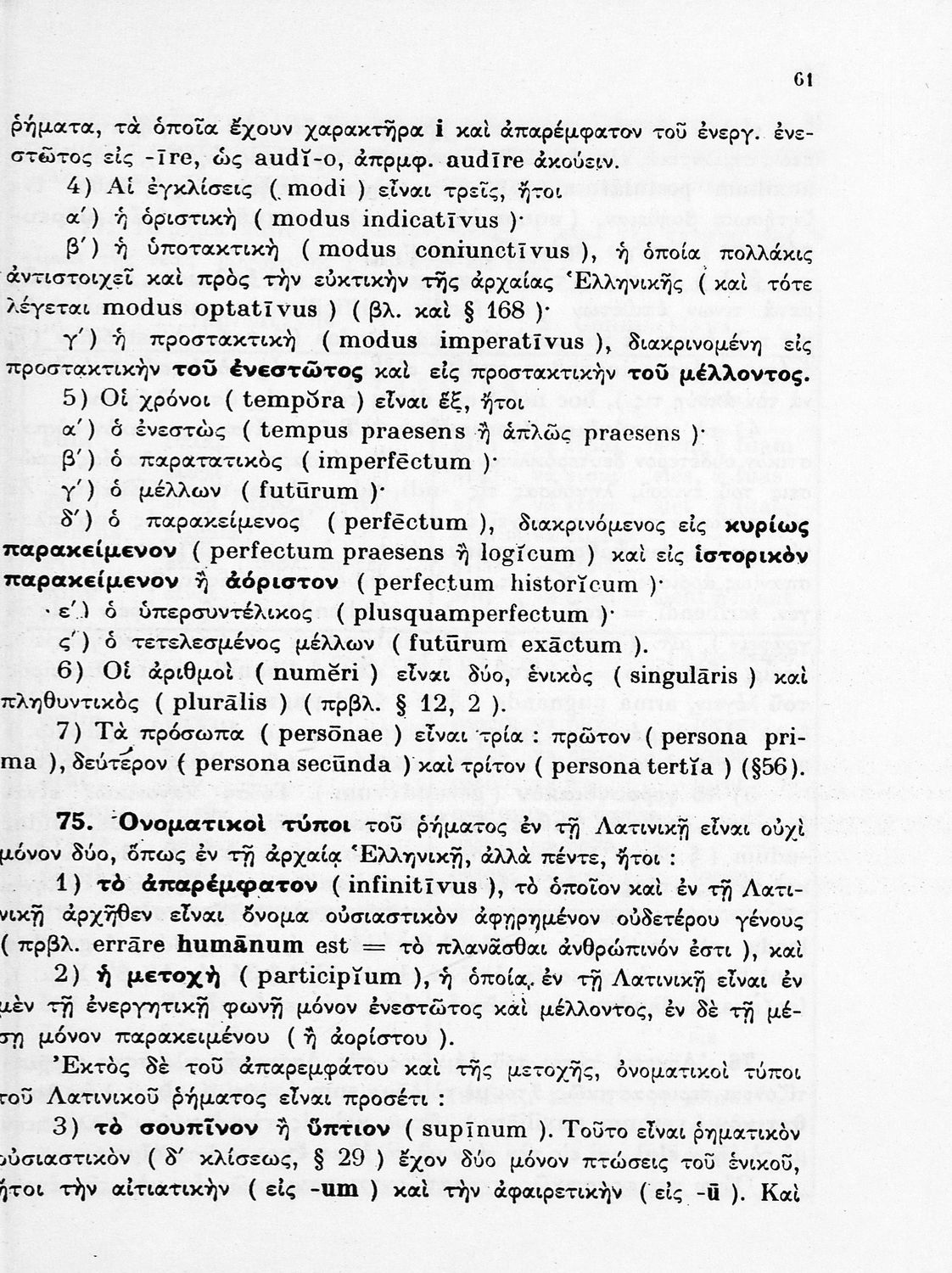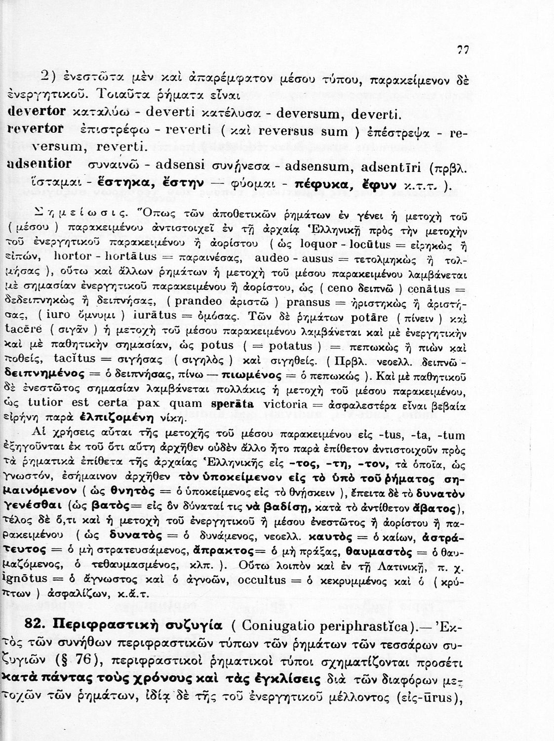 Σχολικό εγχειρίδιο Λατινικών που περιλαμβάνει τη γραμματική της λατινικής και είναι χωρισμένο στο φθογγολογικό, το τυπολογικό και το ετυμολογικό μέρος. Περιέχει και τους συντακτικούς κανόνες της λατινικής.