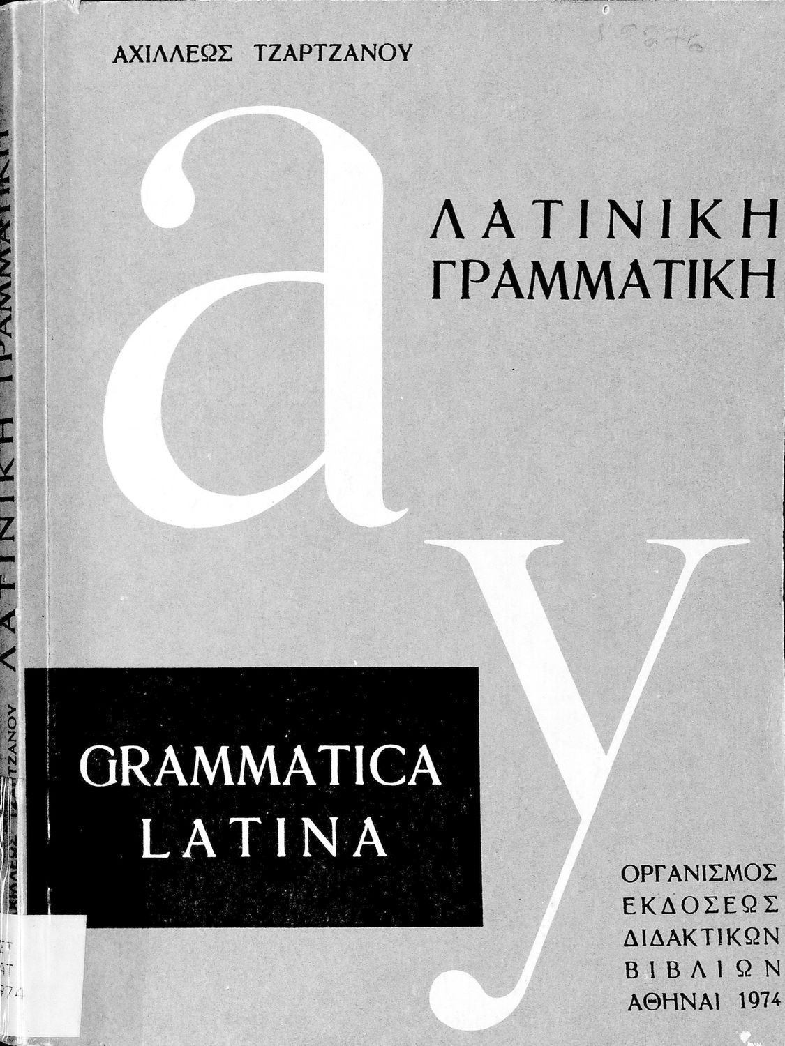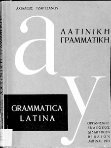 Κωδικός αναγνώρισης: 01-19276a Τίτλος: Γραμματικής της λατινικής γλώσσας Συγγραφέας: Αχιλλέας Α. Τζάρτζανος Εικονογράφος: Τ. Χατζής (εξώφυλλο) Μέγεθος και υπόστρωμα: Σχολικό εγχειρίδιο, 20εκ., μαλακό εξώφυλλο, 203 σελίδες. |