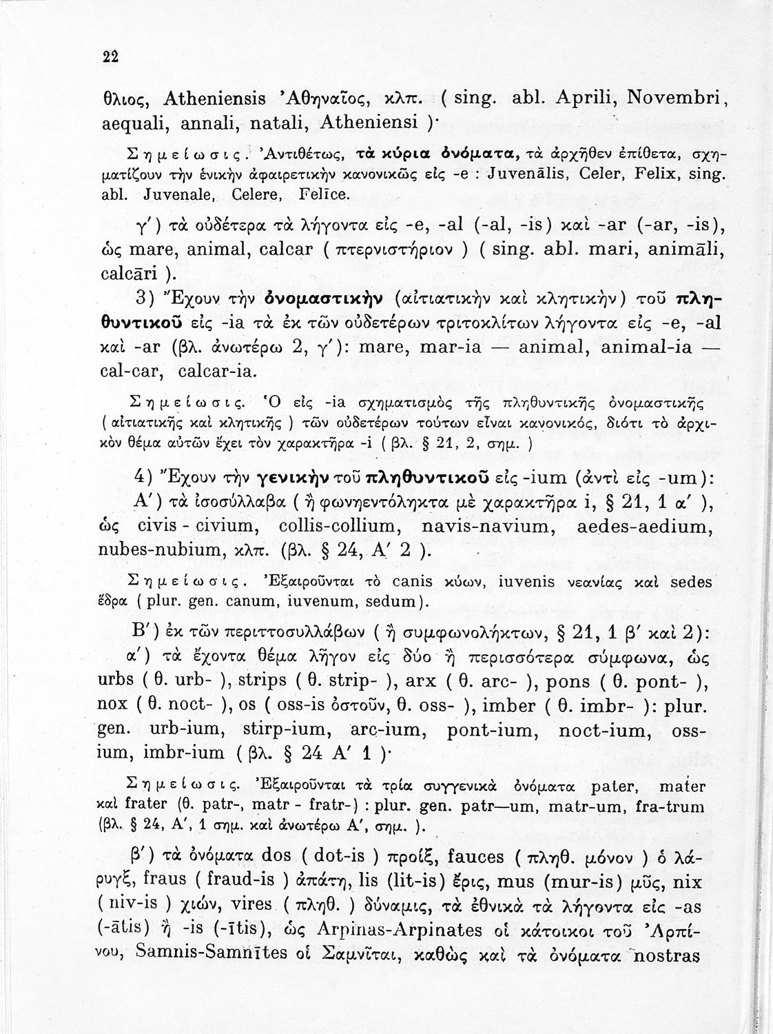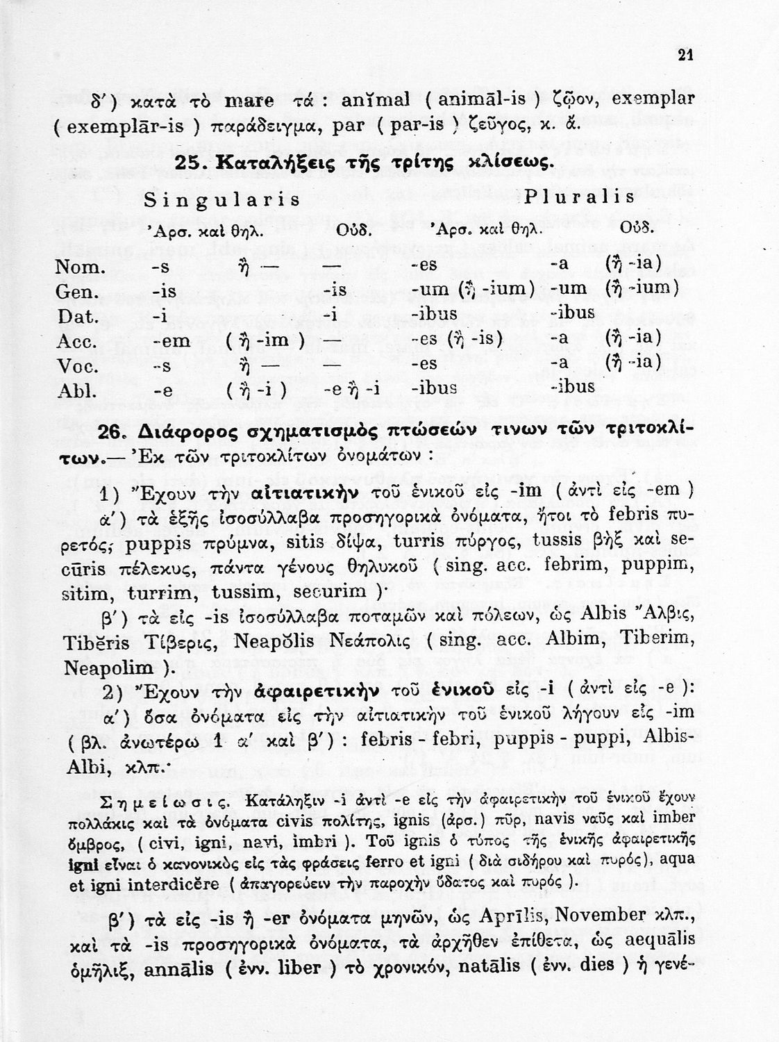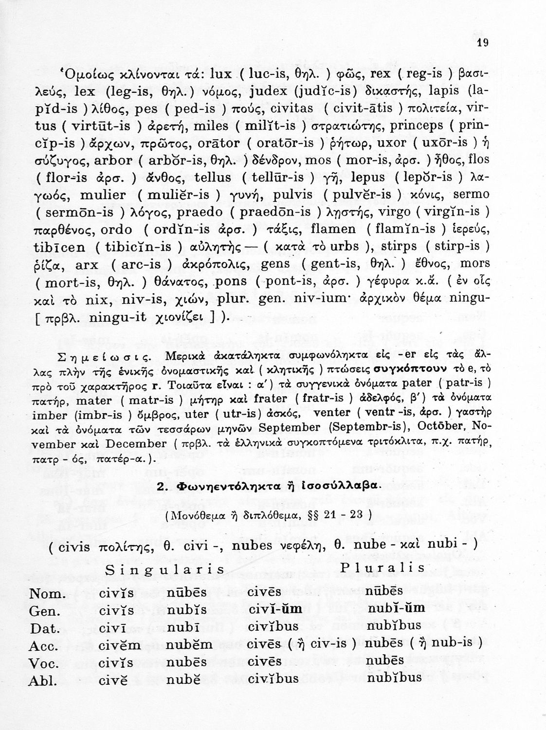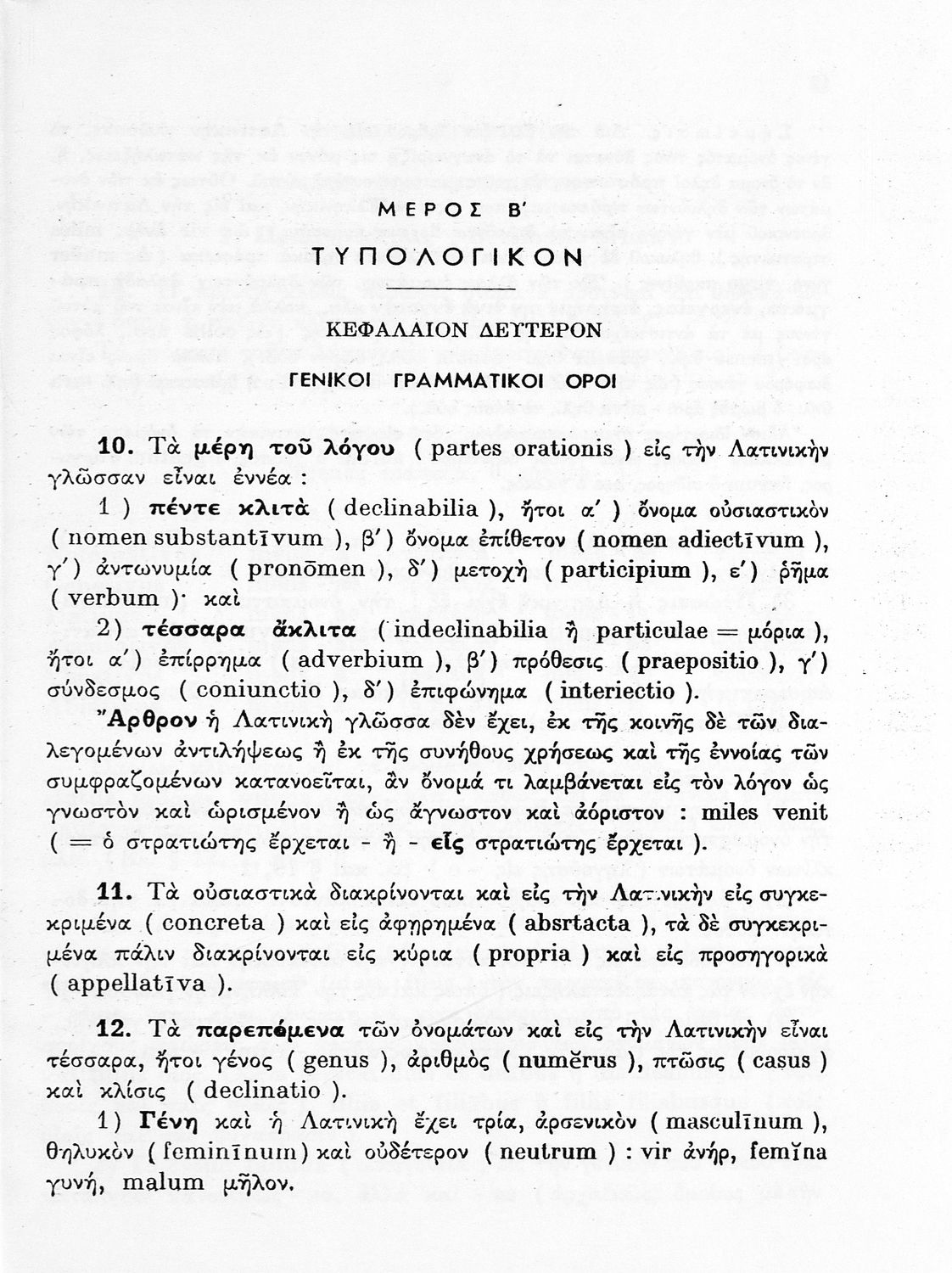 Σχολικό εγχειρίδιο Λατινικών που περιλαμβάνει τη γραμματική της λατινικής και είναι χωρισμένο στο φθογγολογικό, το τυπολογικό και το ετυμολογικό μέρος. Περιέχει και τους συντακτικούς κανόνες της λατινικής.