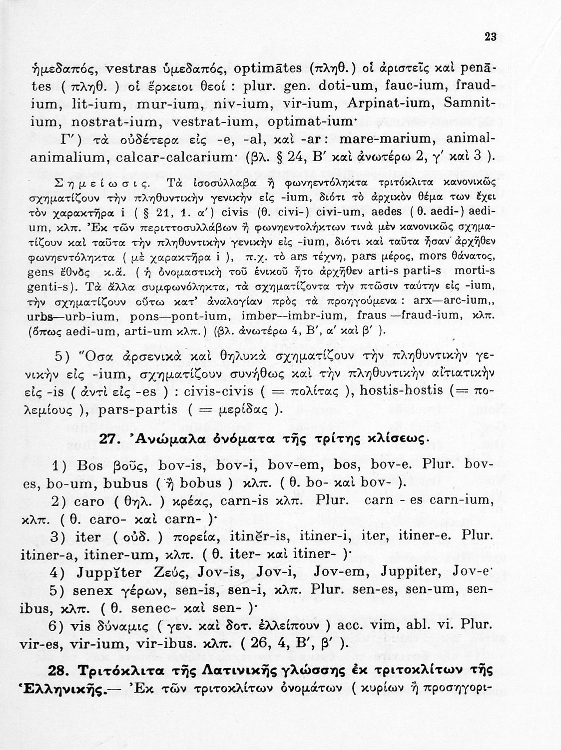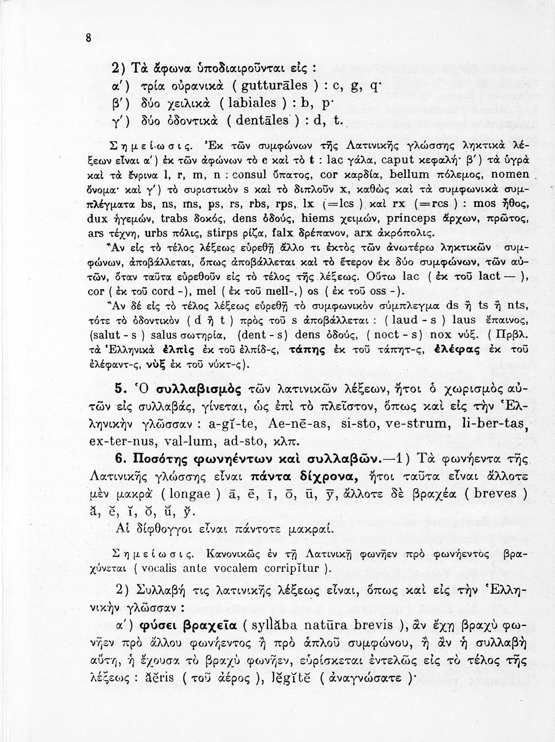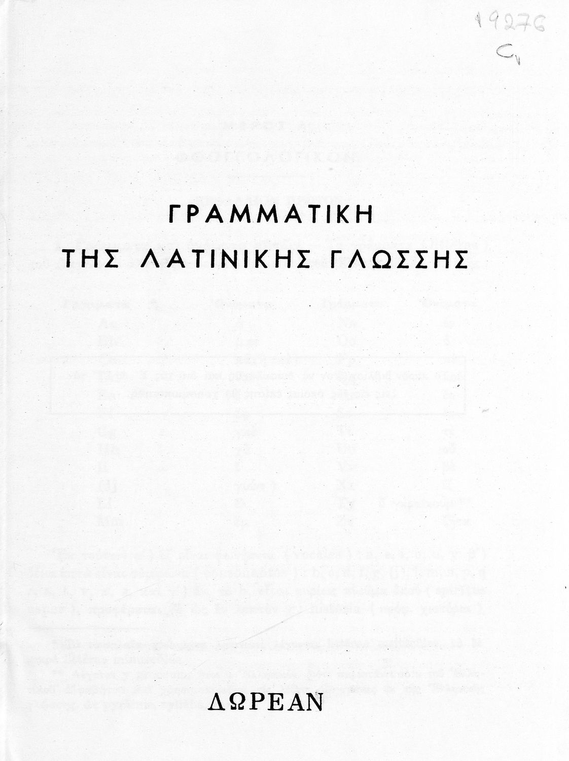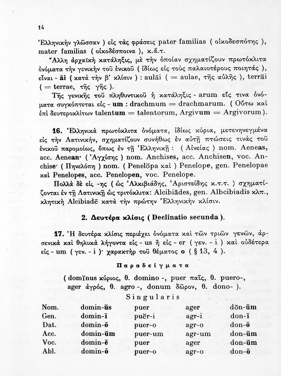 Σχολικό εγχειρίδιο Λατινικών που περιλαμβάνει τη γραμματική της λατινικής και είναι χωρισμένο στο φθογγολογικό, το τυπολογικό και το ετυμολογικό μέρος. Περιέχει και τους συντακτικούς κανόνες της λατινικής.