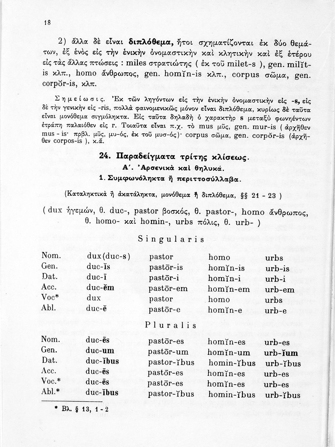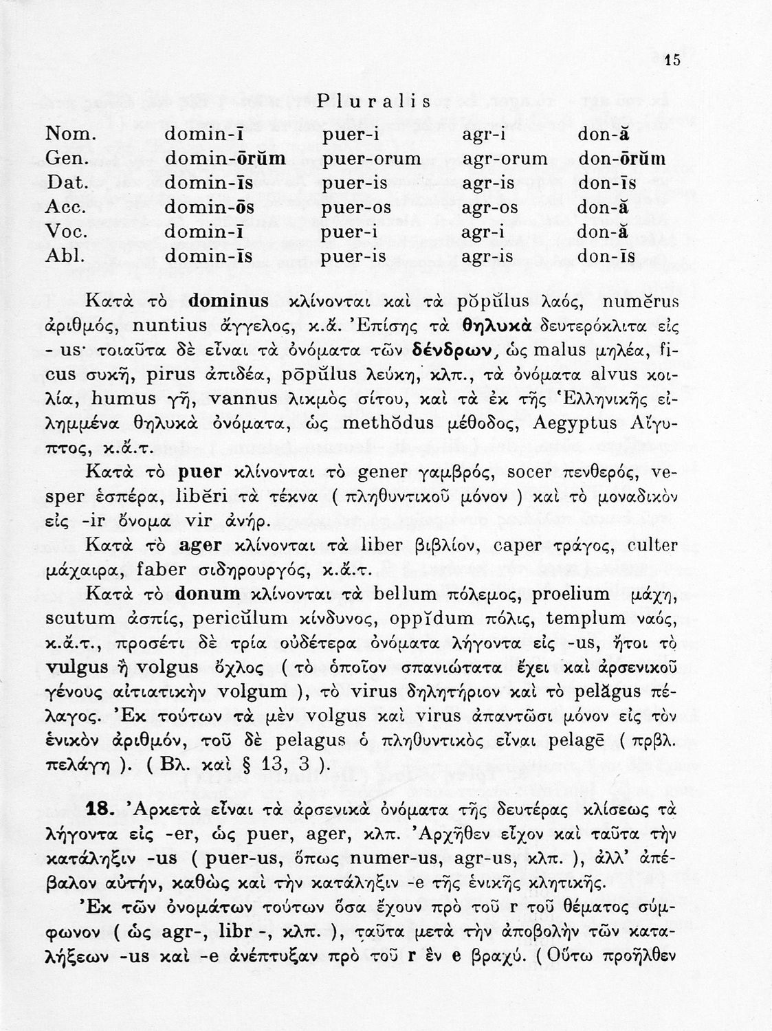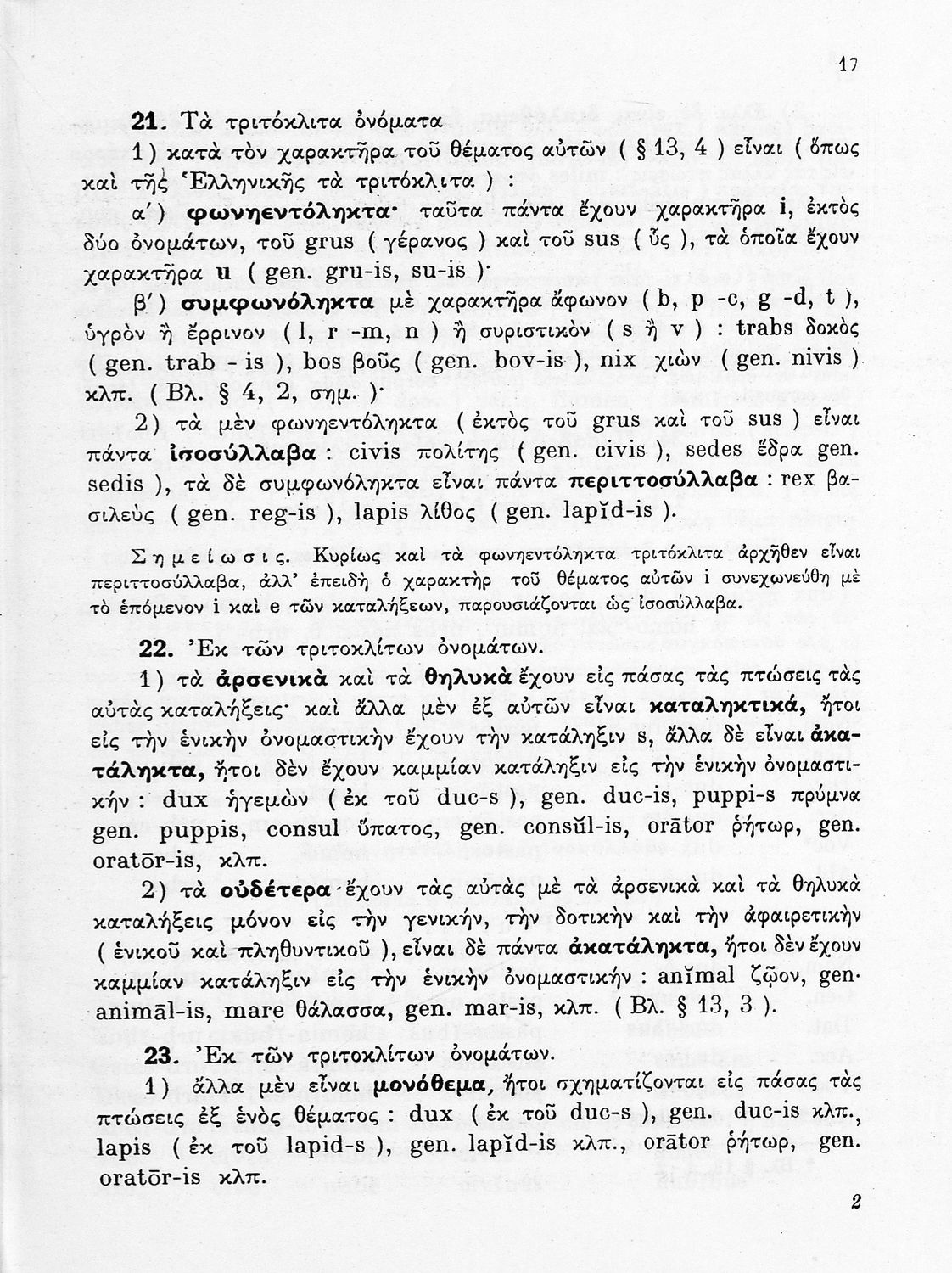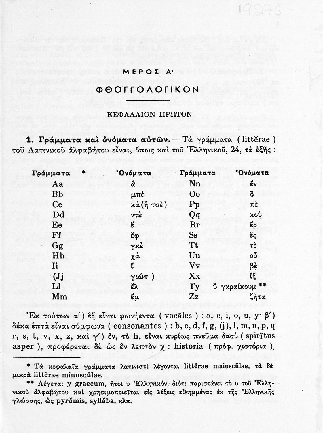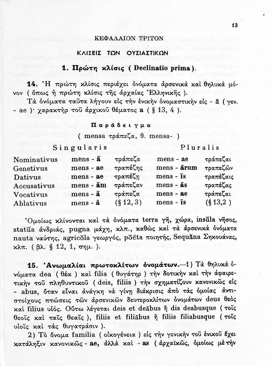 Σχολικό εγχειρίδιο Λατινικών που περιλαμβάνει τη γραμματική της λατινικής και είναι χωρισμένο στο φθογγολογικό, το τυπολογικό και το ετυμολογικό μέρος. Περιέχει και τους συντακτικούς κανόνες της λατινικής.
