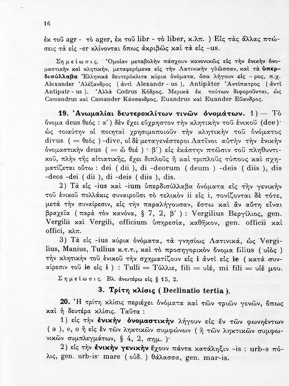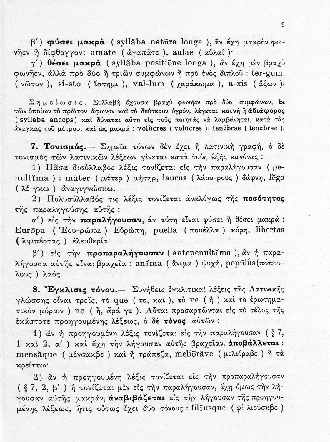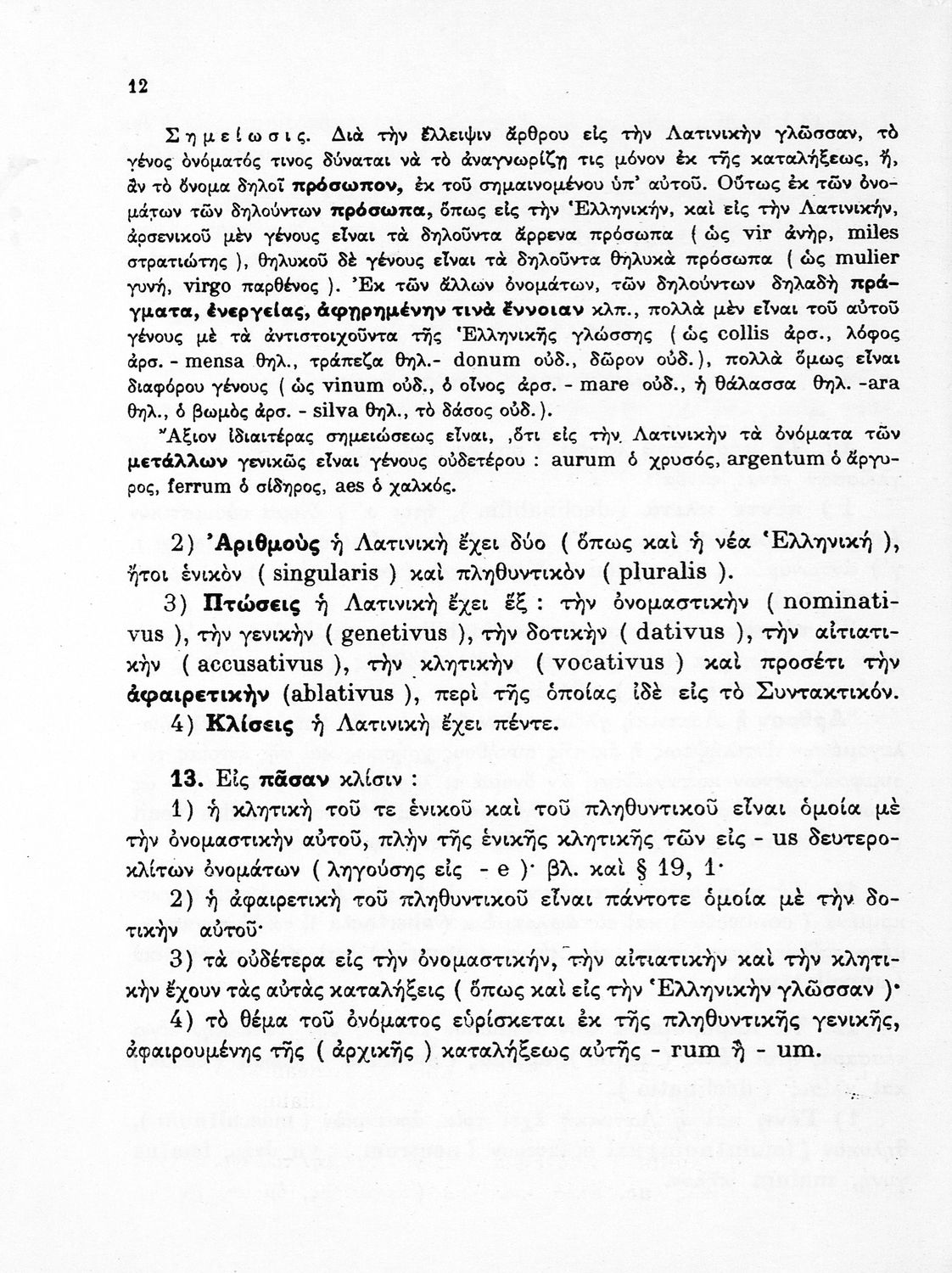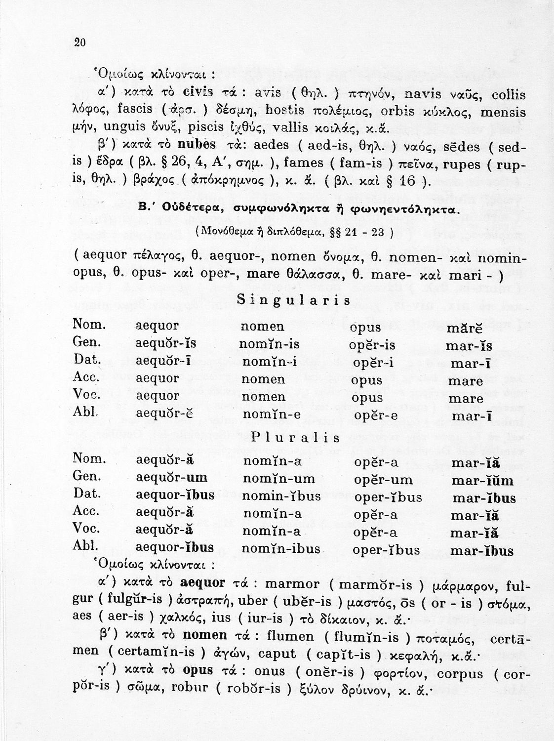 Σχολικό εγχειρίδιο Λατινικών που περιλαμβάνει τη γραμματική της λατινικής και είναι χωρισμένο στο φθογγολογικό, το τυπολογικό και το ετυμολογικό μέρος. Περιέχει και τους συντακτικούς κανόνες της λατινικής.