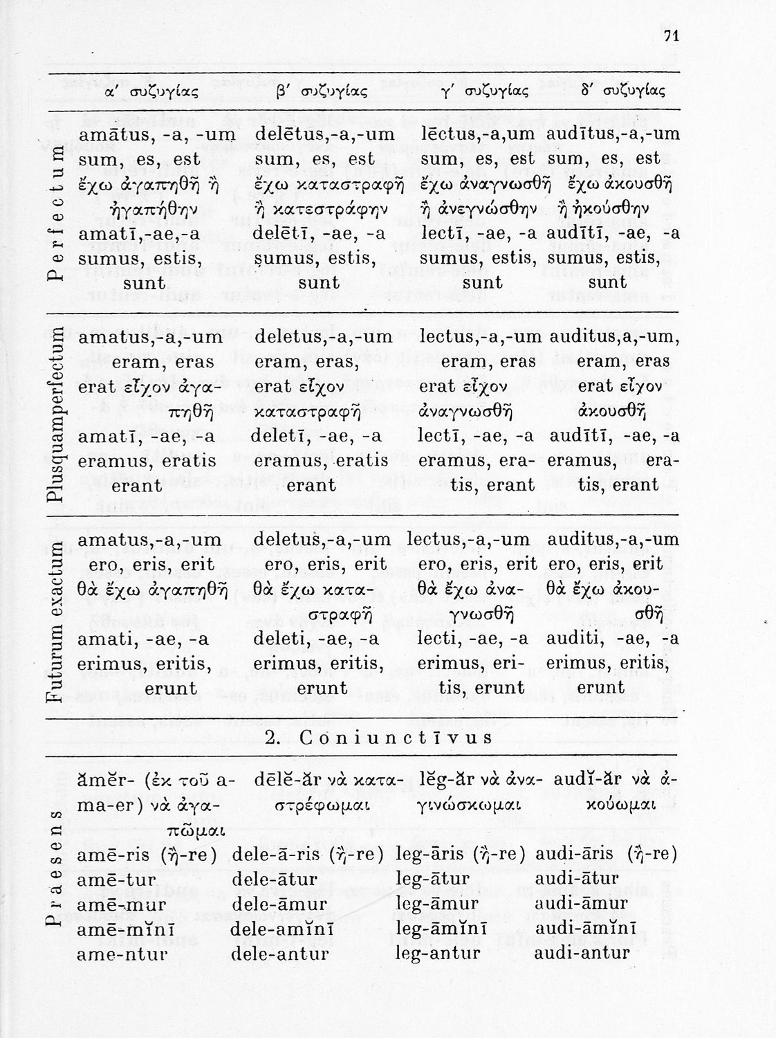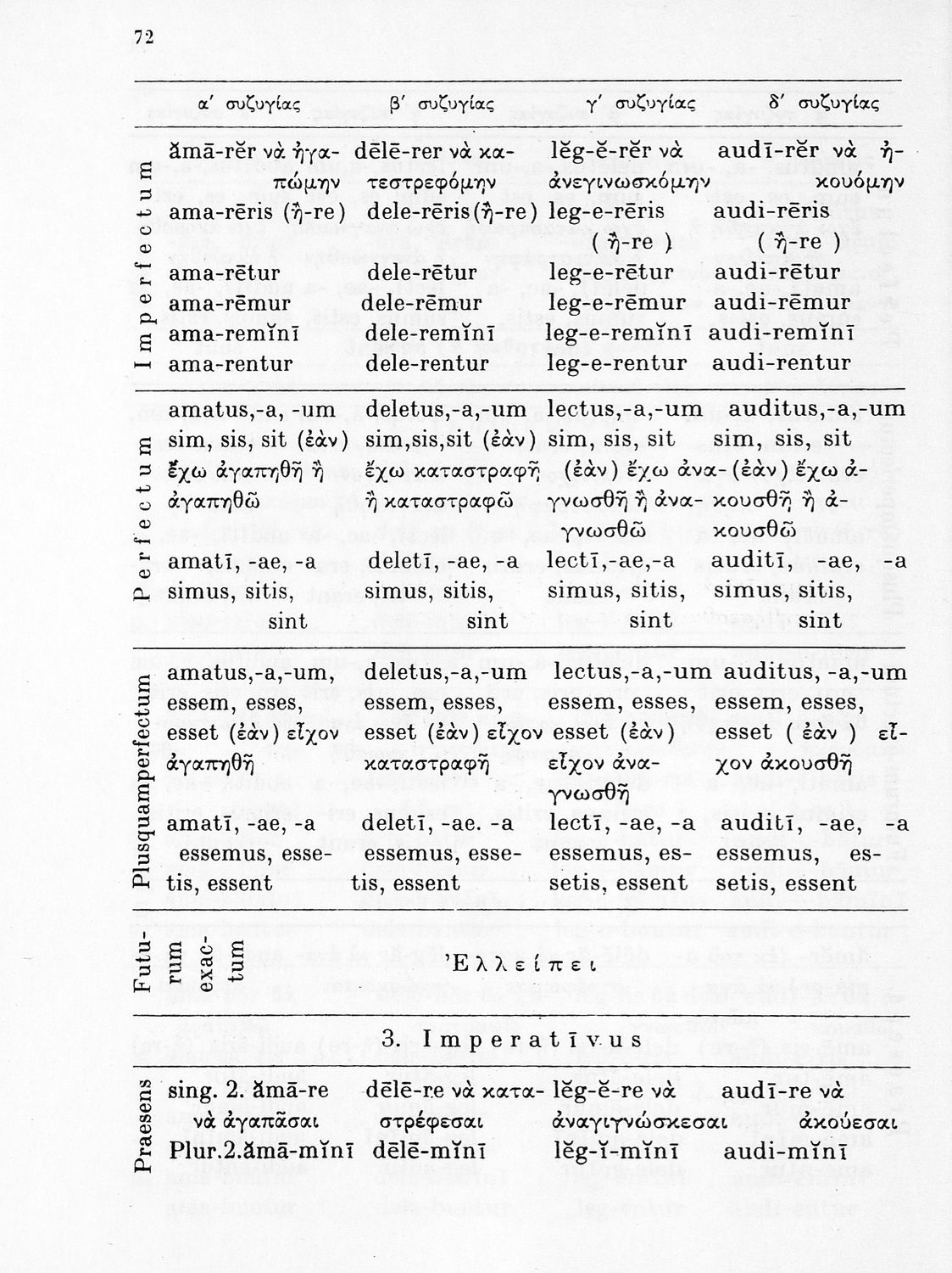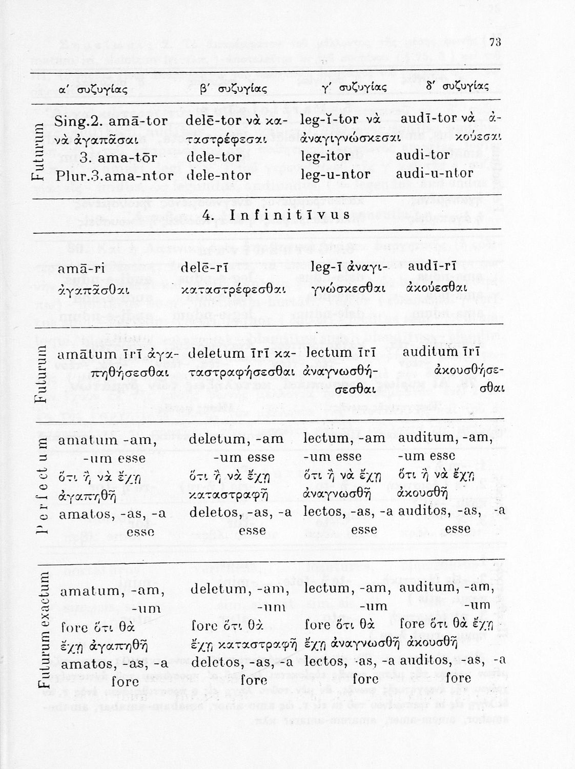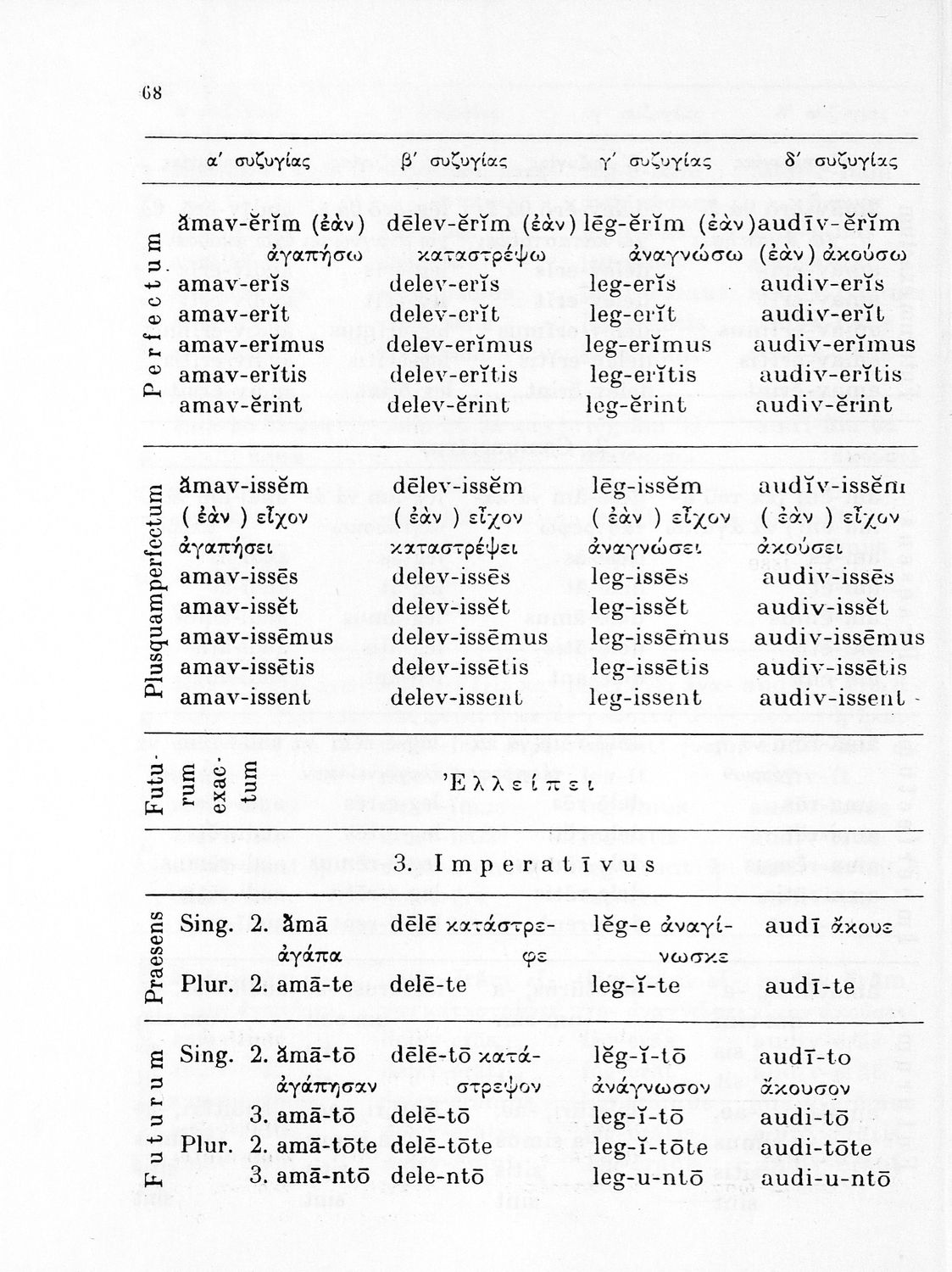520 ## _aΣχολικό εγχειρίδιο Λατινικών που περιλαμβάνει τη γραμματική της λατινικής και είναι χωρισμένο στο φθογγολογικό, το τυπολογικό και το ετυμολογικό μέρος. Περιέχει και τους συντακτικούς κανόνες της λατινικής.