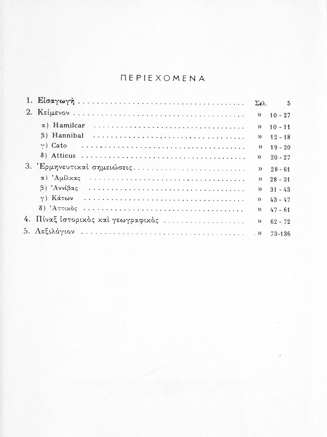 Σχολικό εγχειρίδιο Λατινικών Δ΄ Γυμνασίου παλαιού τύπου και την Ε΄ Γυμνασίου νέου τύπου που περιέχει σύντομο βιογραφικό σημείωμα του Νέπωτος, αποσπάσματα από τα έργα Αμίλκας, Αννίβας, Κάτων και Αττικός, ...