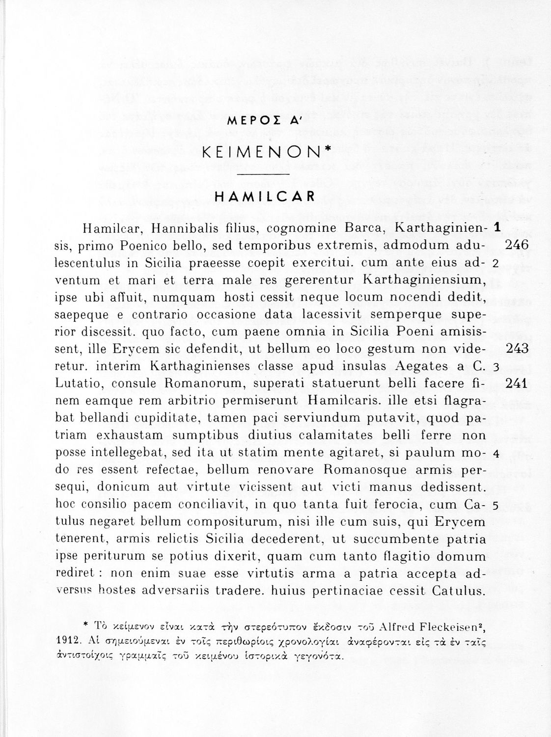 Σχολικό εγχειρίδιο Λατινικών για την Δ΄ Γυμνασίου παλαιού τύπου και την Ε΄ Γυμνασίου νέου τύπου που περιέχει σύντομο βιογραφικό σημείωμα του Νέπωτα, αποσπάσματα από τα έργα Αμίλκας, Αννίβας, Κάτων και Αττικός ...
