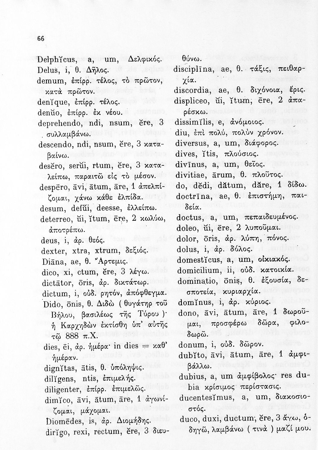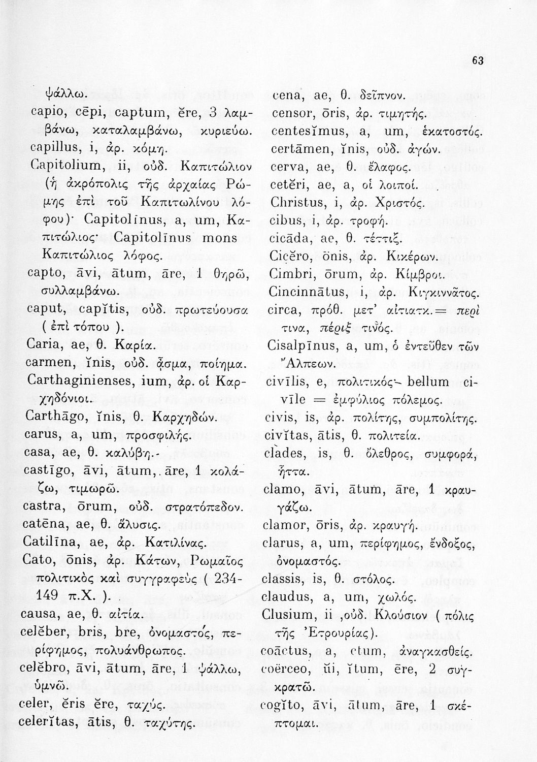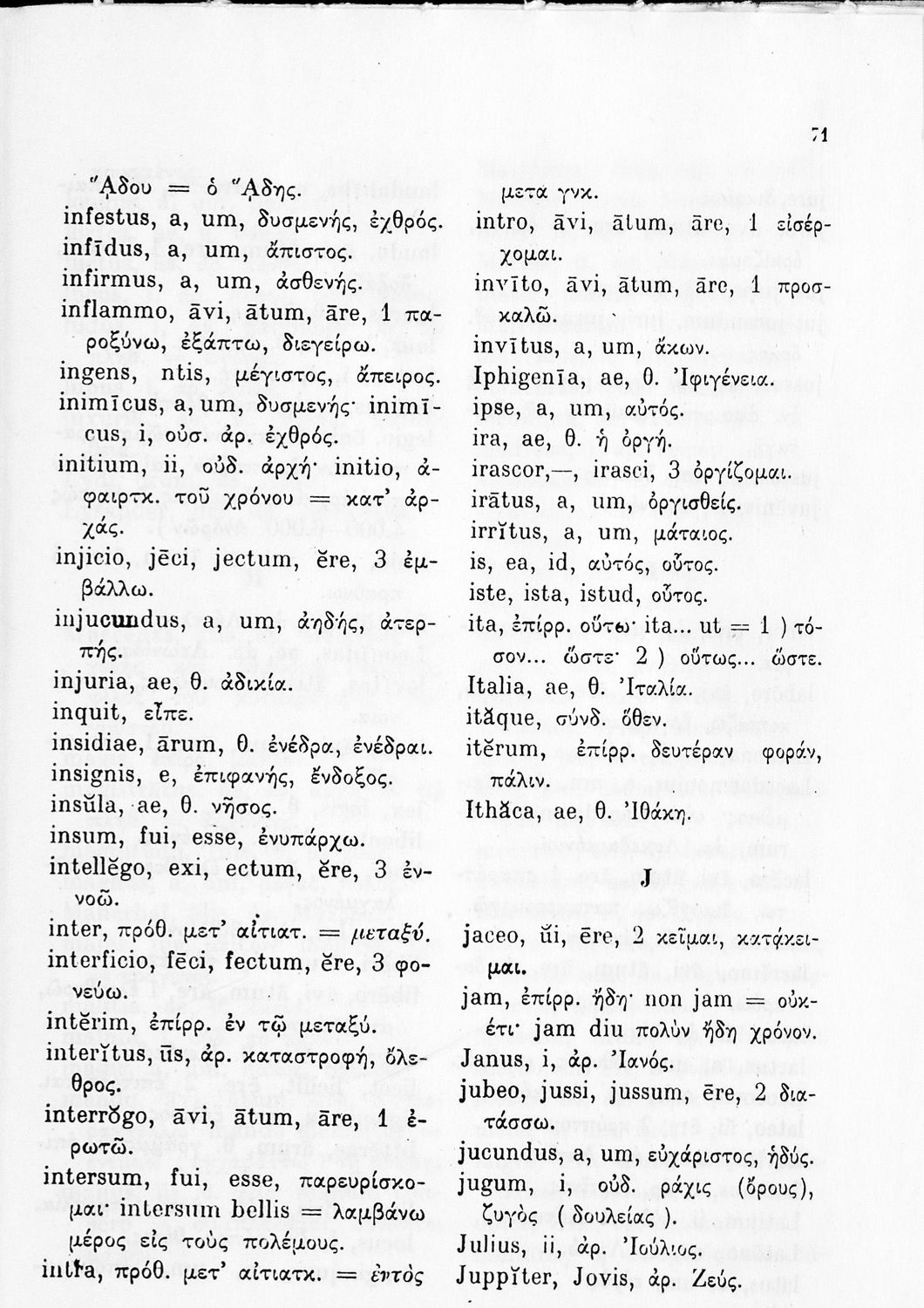Σχολικό εγχειρίδιο Λατινικών για τη Γ΄ Γυμνασίου που περιέχει 54 κείμενα/περικοπές στα λατινικά, ερμηνευτικά υπομνήματα, λεξιλόγιο και κατάλογο με τα συντακτικά φαινόμενα (αφαιρετική, προθέσεις, σύνδεσμοι) που
