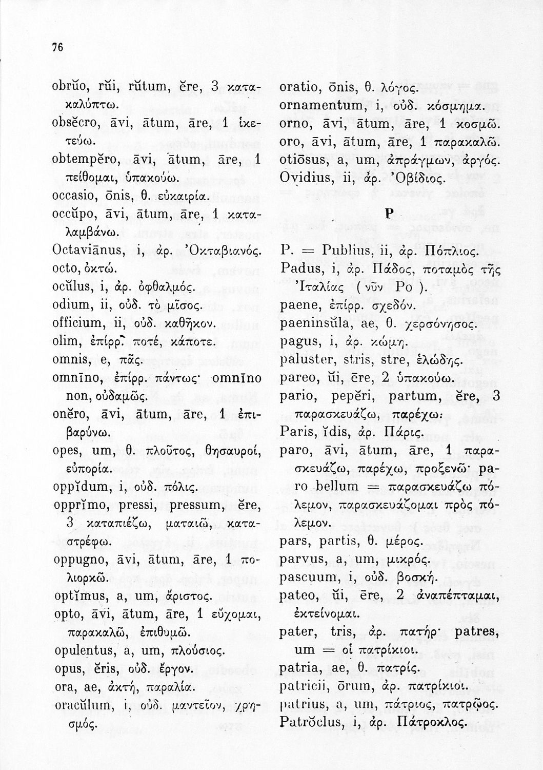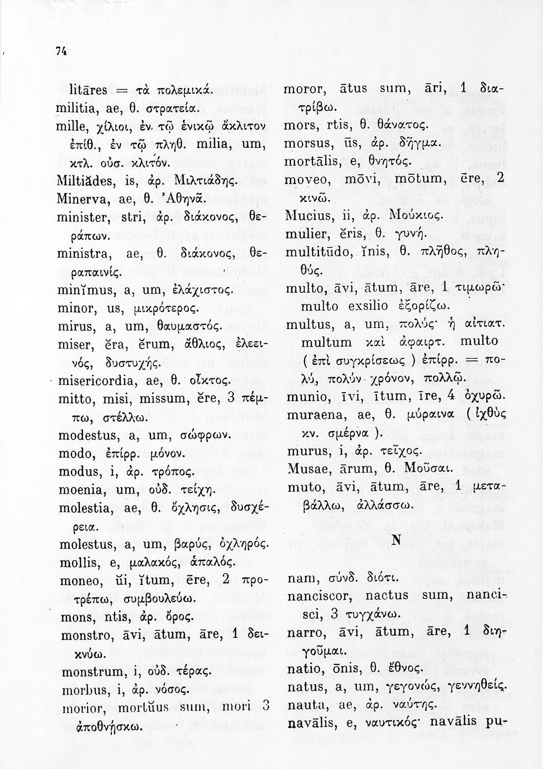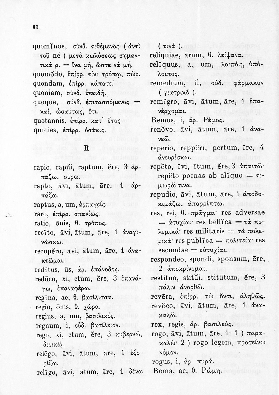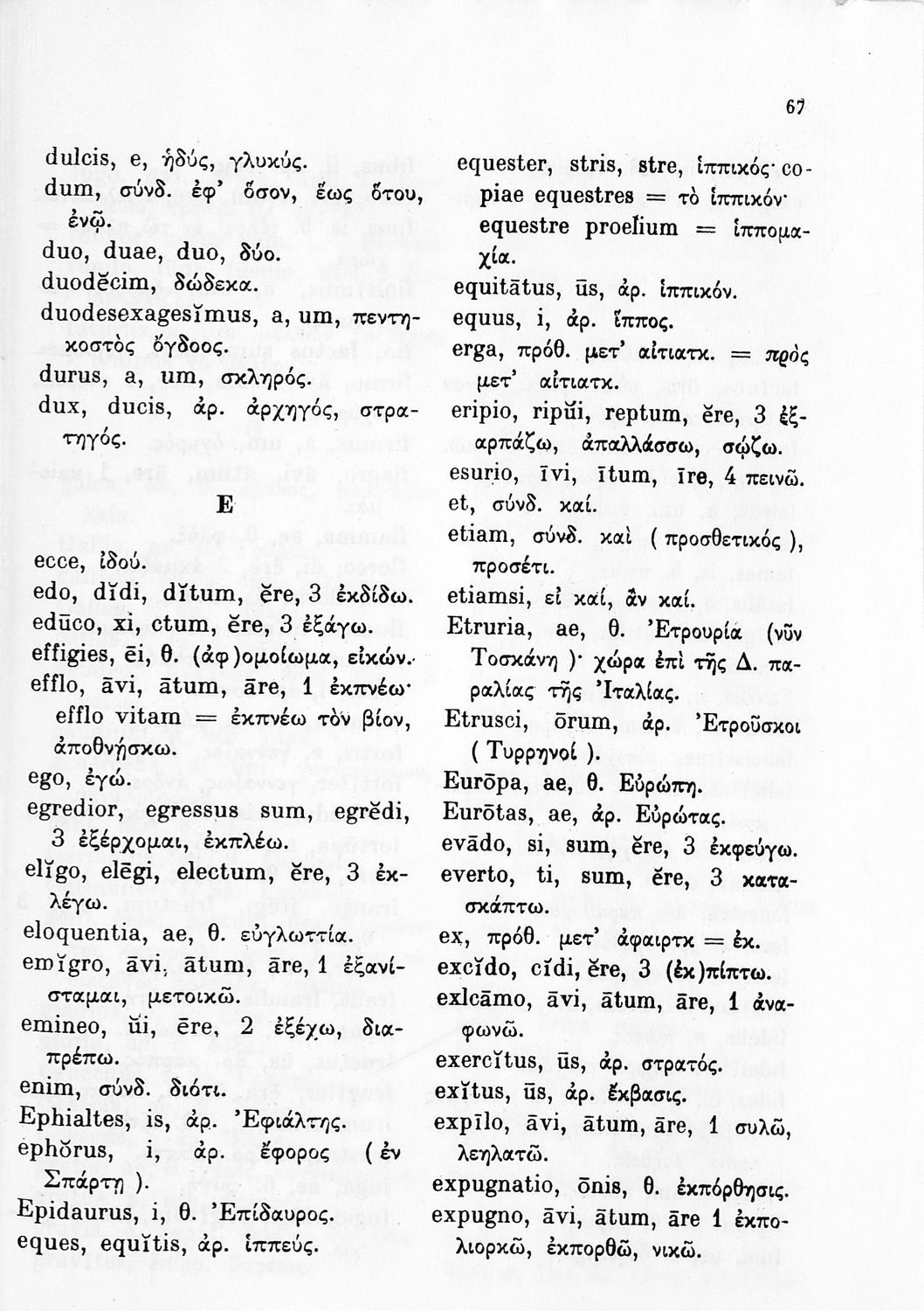 Σχολικό εγχειρίδιο Λατινικών για τη Γ΄ Γυμνασίου που περιέχει 54 κείμενα/περικοπές στα λατινικά, ερμηνευτικά υπομνήματα, λεξιλόγιο και κατάλογο με τα συντακτικά φαινόμενα (αφαιρετική, προθέσεις, σύνδεσμοι) που
