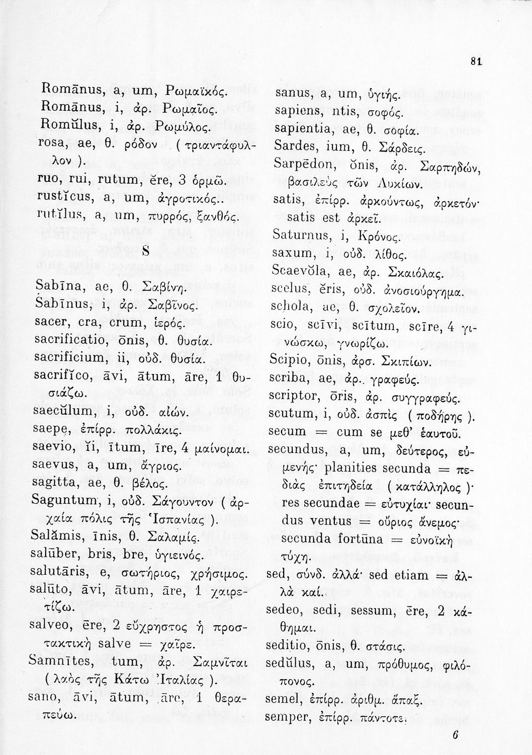 Σχολικό εγχειρίδιο Λατινικών Δ΄, Ε΄, ΣΤ΄ Γυμνασίου που περιλαμβάνει γραμματική και συντακτικό και είναι χωρισμένο σε φθογγολογικό, τυπολογικό και ετυμολογικό μέρος. Φέρει το σύμβολο της δικτατορίας.