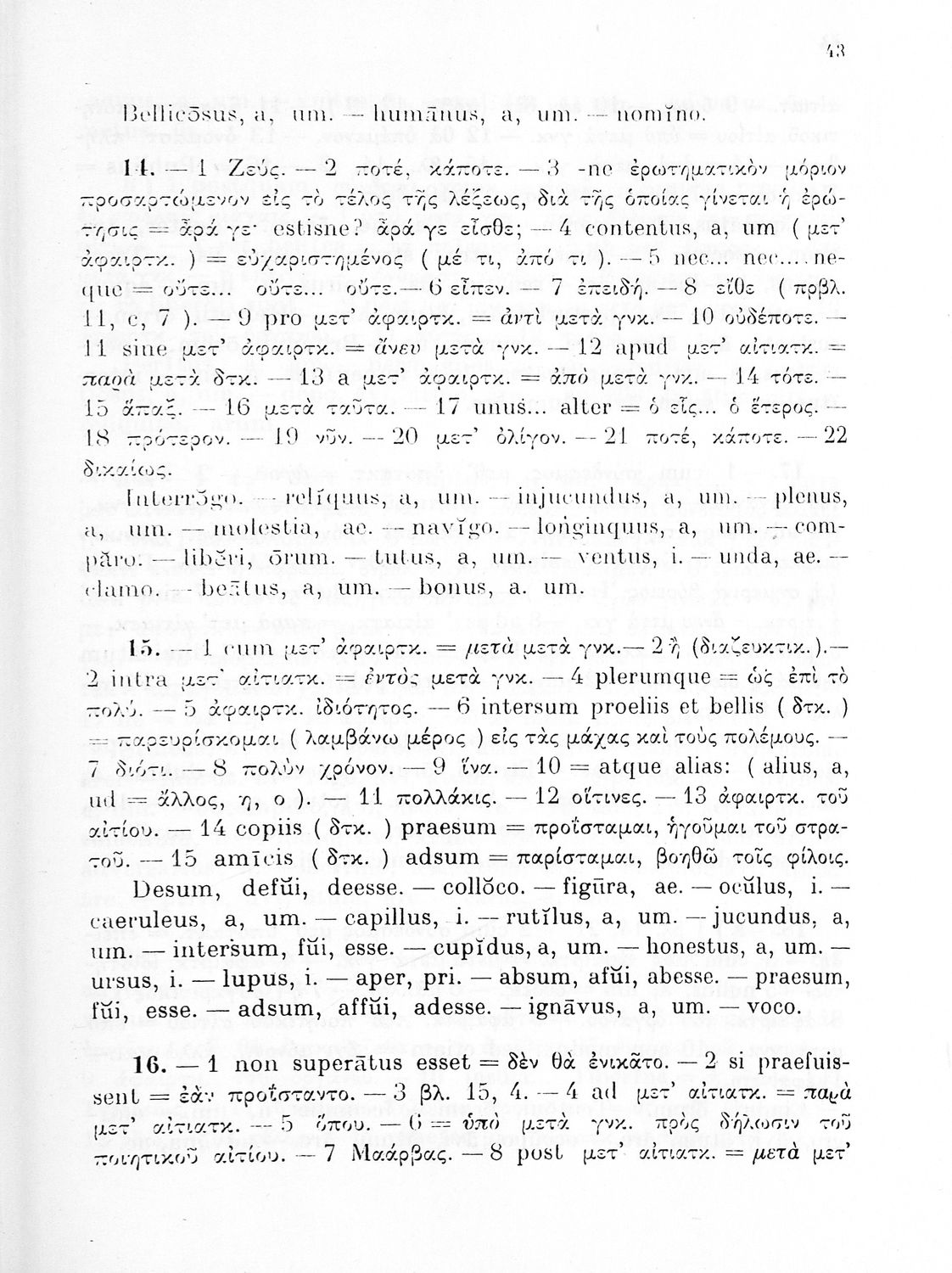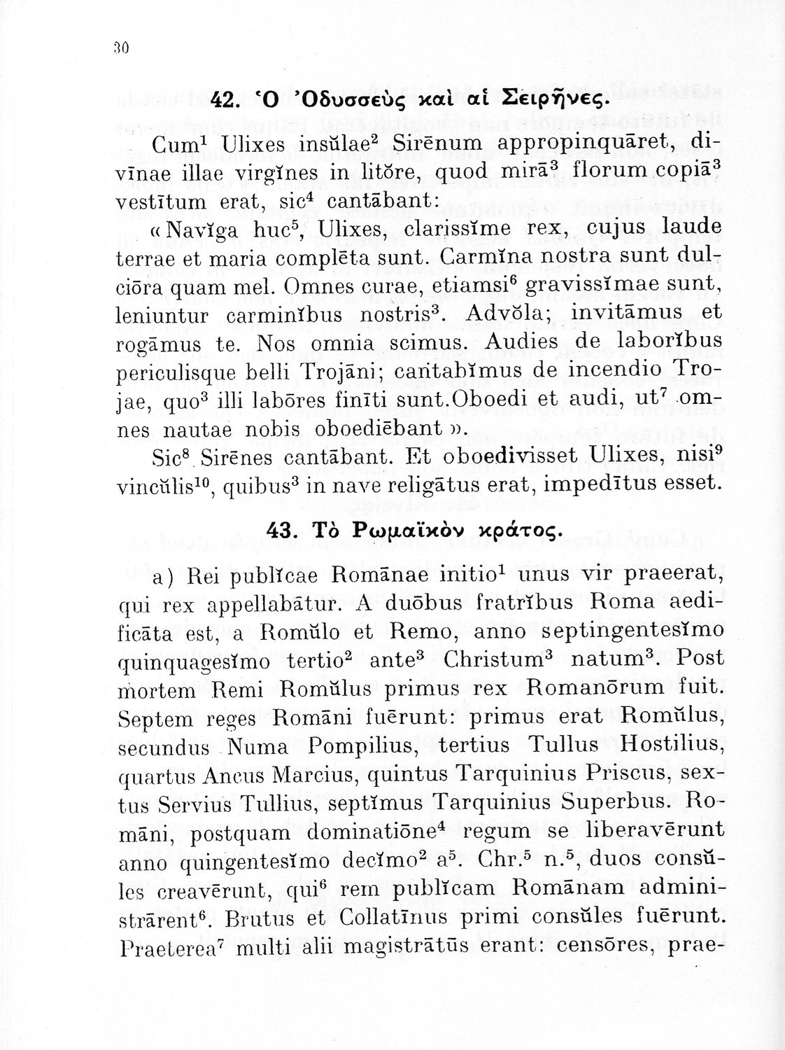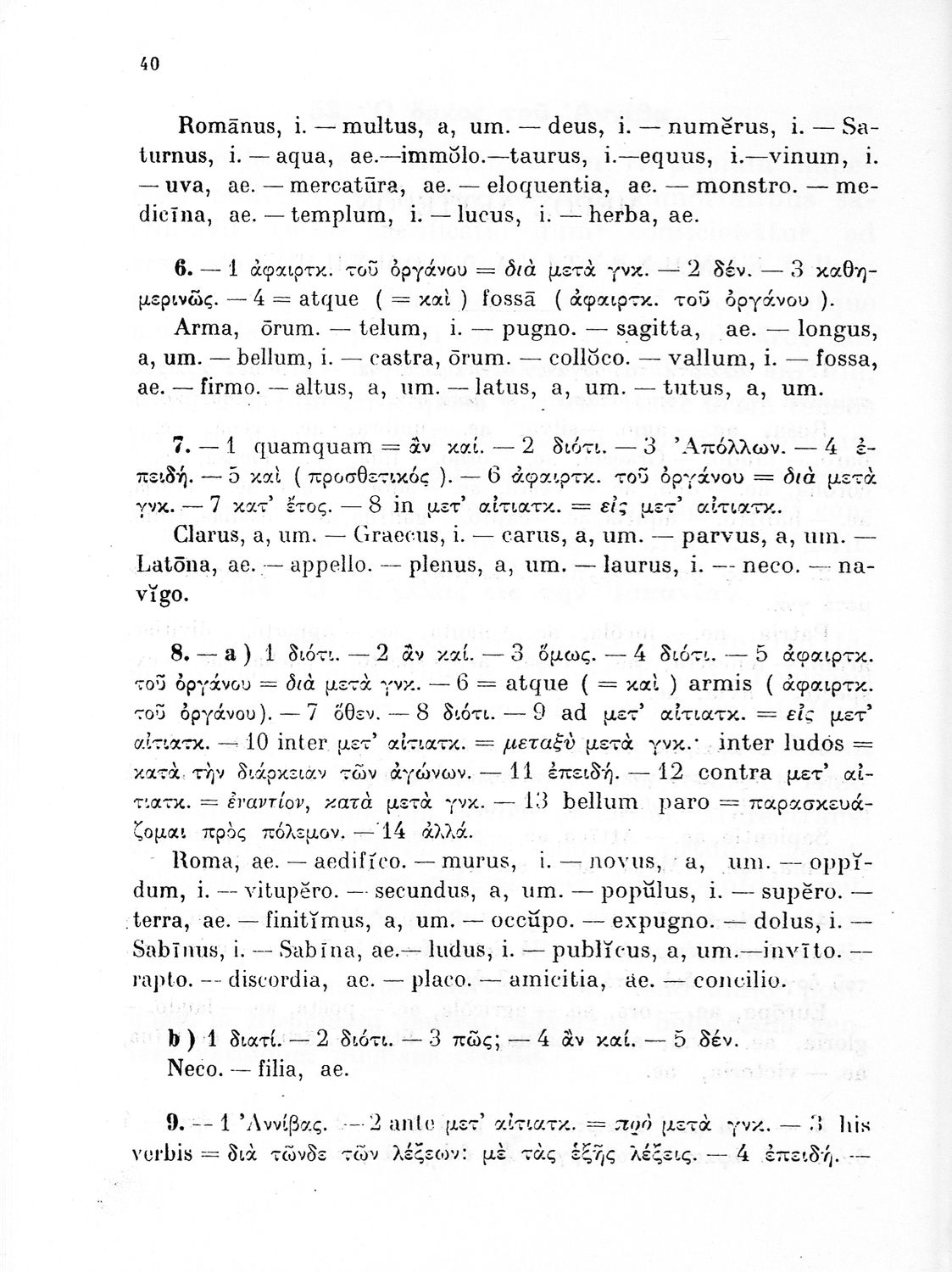 Σχολικό εγχειρίδιο Λατινικών για την Δ΄ Γυμνασίου που περιέχει 54 κείμενα/περικοπές στα λατινικά, ερμηνευτικά υπομνήματα, λεξιλόγιο και κατάλογο με τα συντακτικά φαινόμενα (αφαιρετική, προθέσεις, σύνδεσμοι) που διδάσκονται με βάση τις περικοπές.