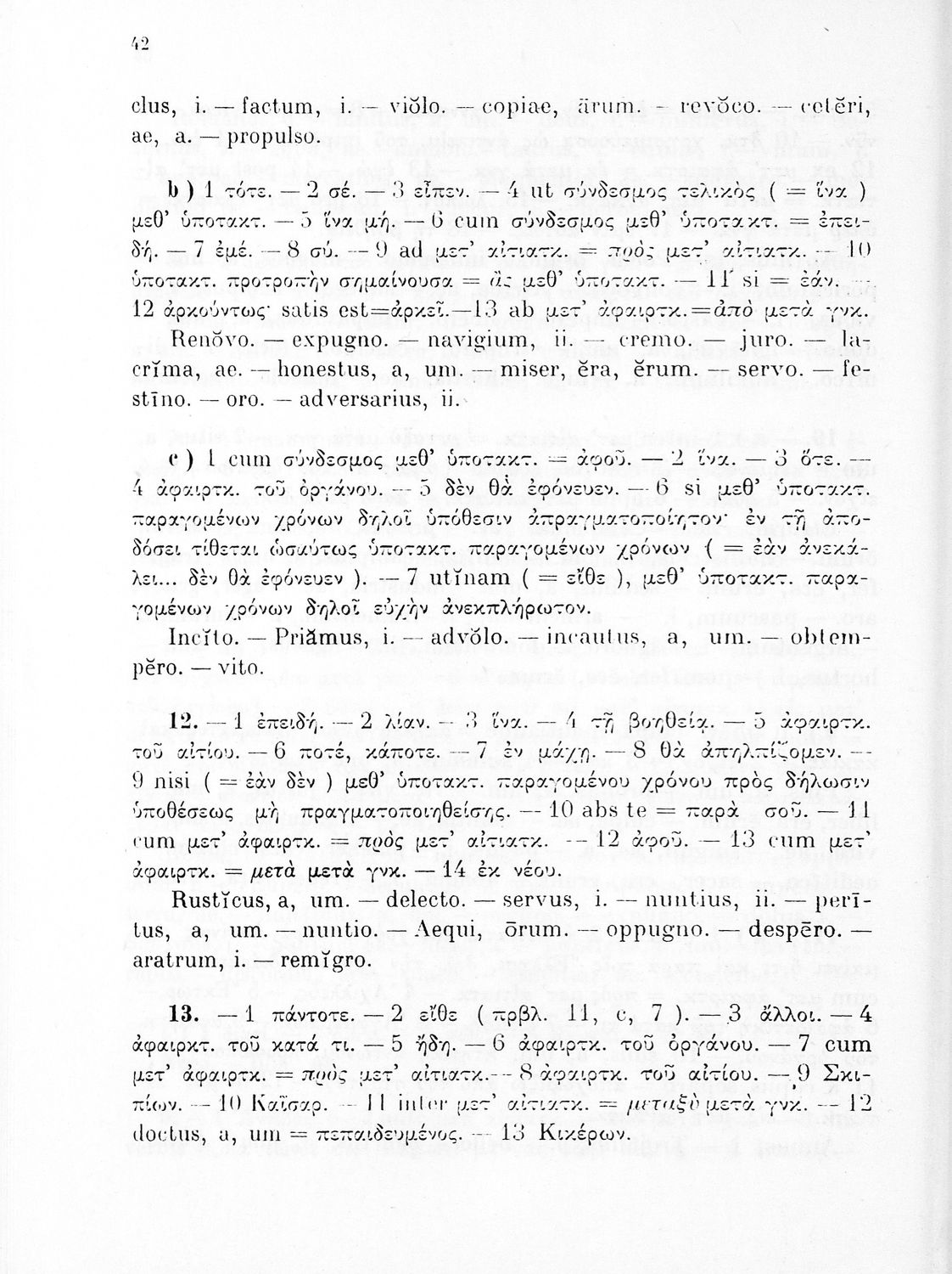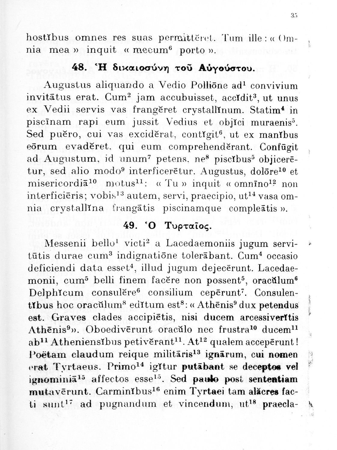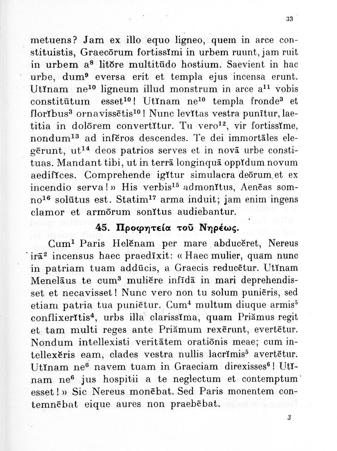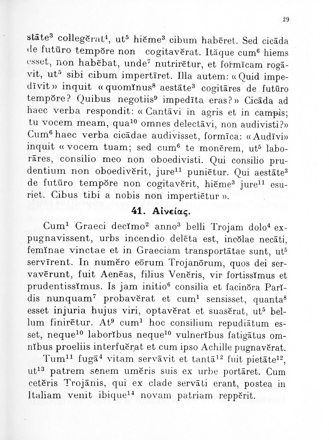 Σχολικό εγχειρίδιο Λατινικών για την Δ΄ Γυμνασίου που περιέχει 54 κείμενα/περικοπές στα λατινικά, ερμηνευτικά υπομνήματα, λεξιλόγιο και κατάλογο με τα συντακτικά φαινόμενα (αφαιρετική, προθέσεις, σύνδεσμοι) που διδάσκονται με βάση τις περικοπές.