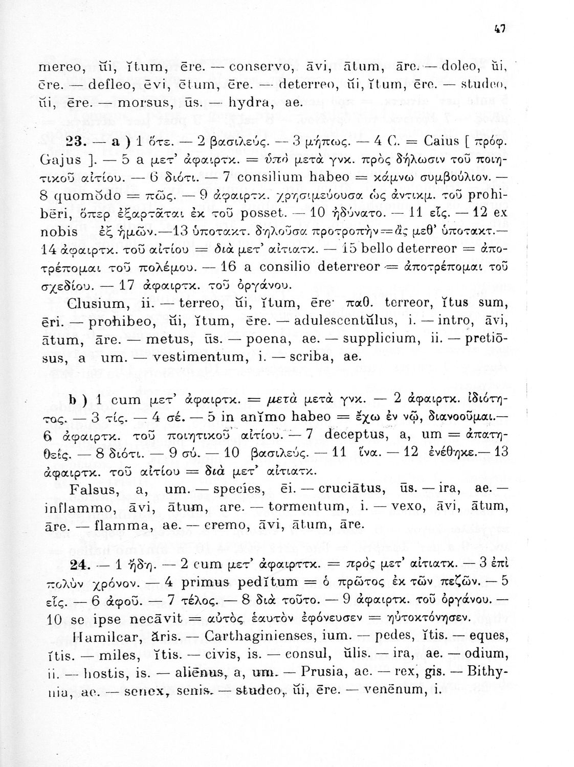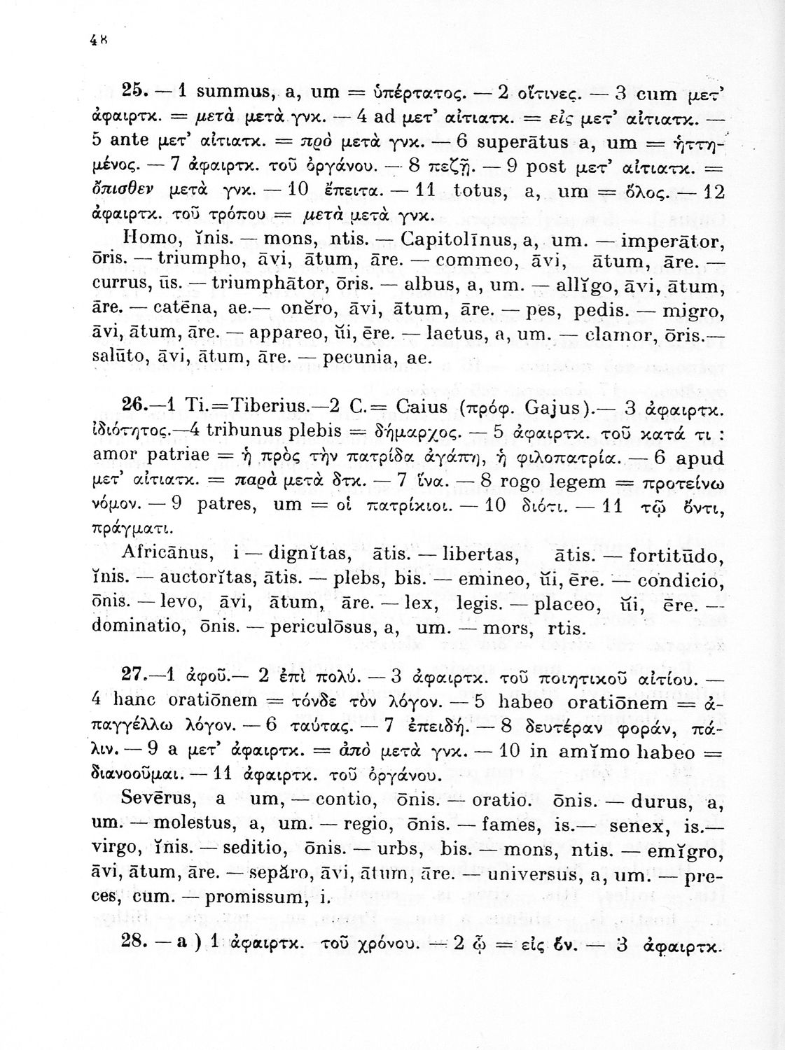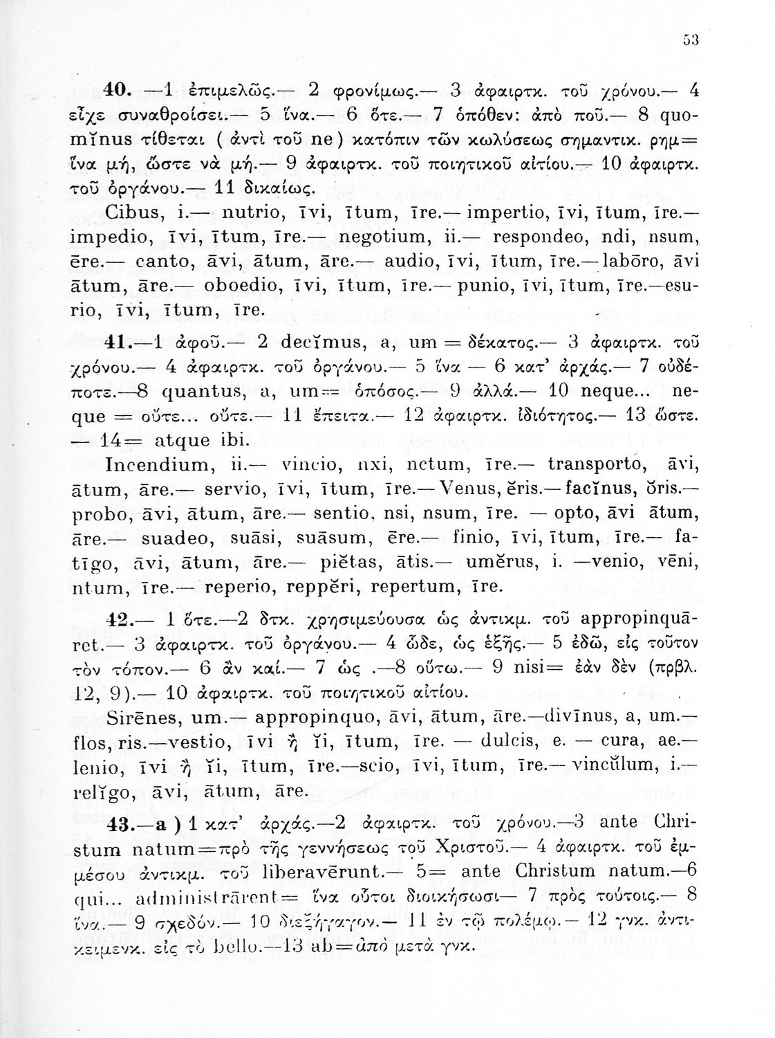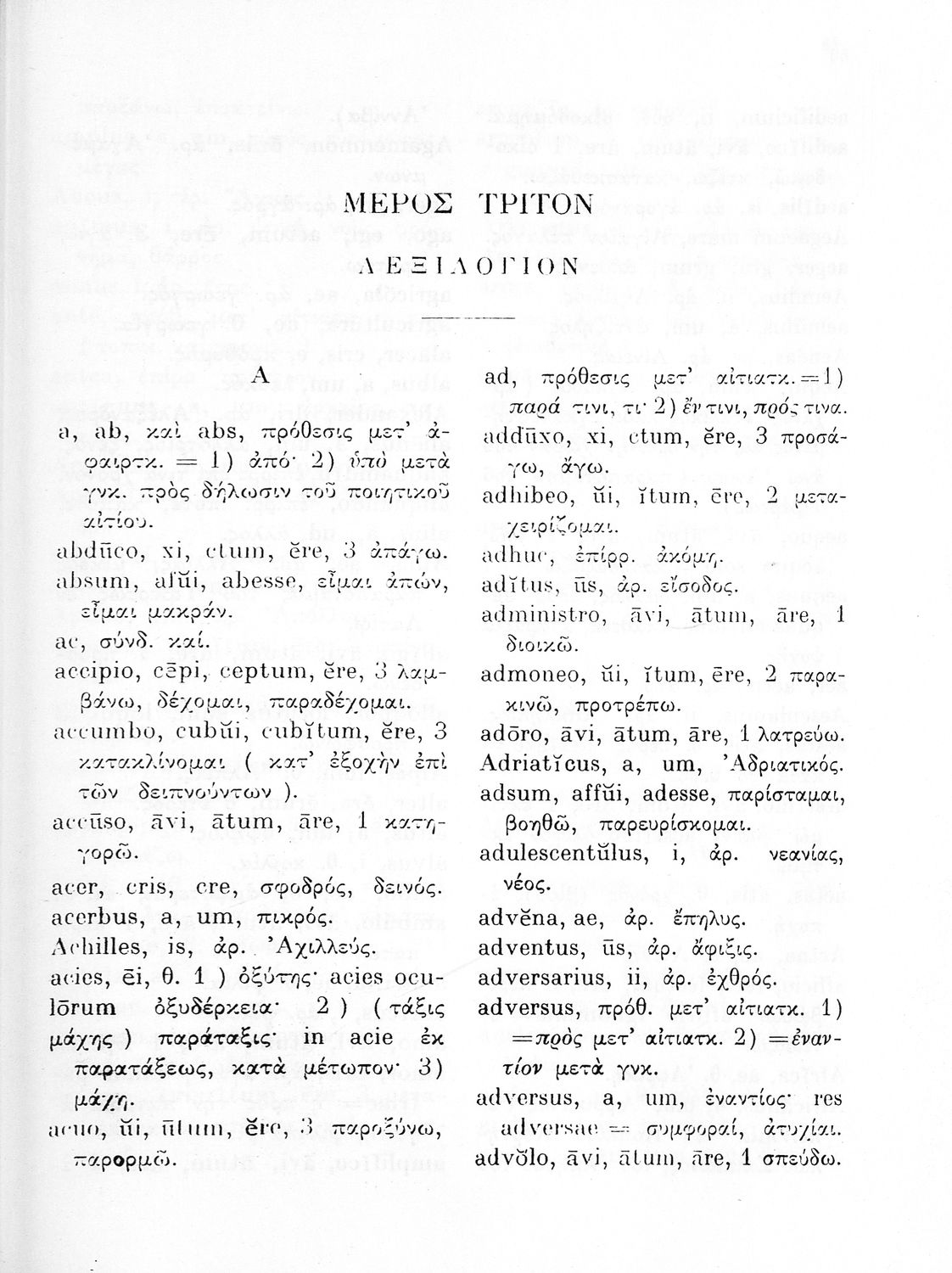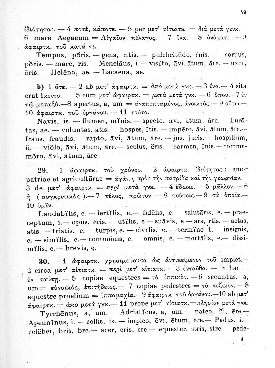 Σχολικό εγχειρίδιο Λατινικών για την Δ΄ Γυμνασίου που περιέχει 54 κείμενα/περικοπές στα λατινικά, ερμηνευτικά υπομνήματα, λεξιλόγιο και κατάλογο με τα συντακτικά φαινόμενα (αφαιρετική, προθέσεις, σύνδεσμοι) που διδάσκονται με βάση τις περικοπές.