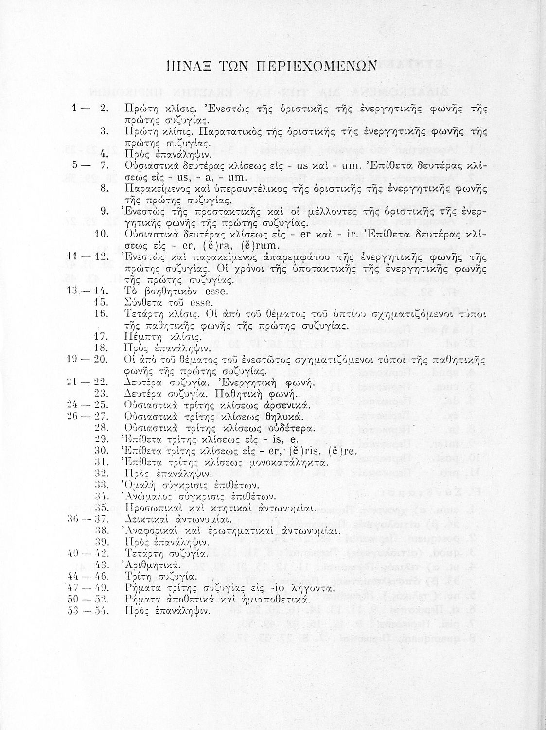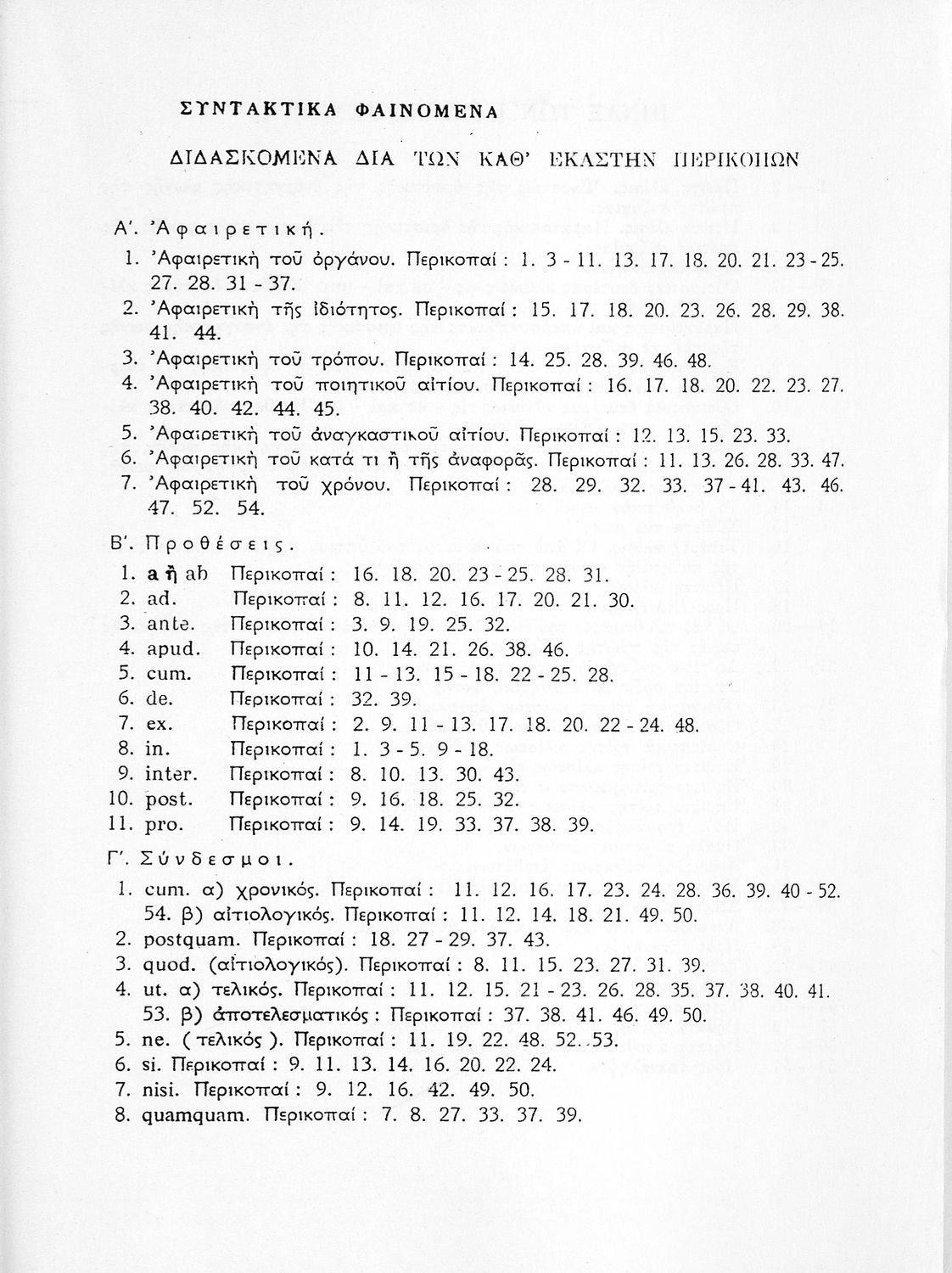 Σχολικό εγχειρίδιο Λατινικών για την Δ΄ Γυμνασίου που περιέχει 54 κείμενα/περικοπές στα λατινικά, ερμηνευτικά υπομνήματα, λεξιλόγιο και κατάλογο με τα συντακτικά φαινόμενα (αφαιρετική, προθέσεις, σύνδεσμοι) που διδάσκονται με βάση τις περικοπές.