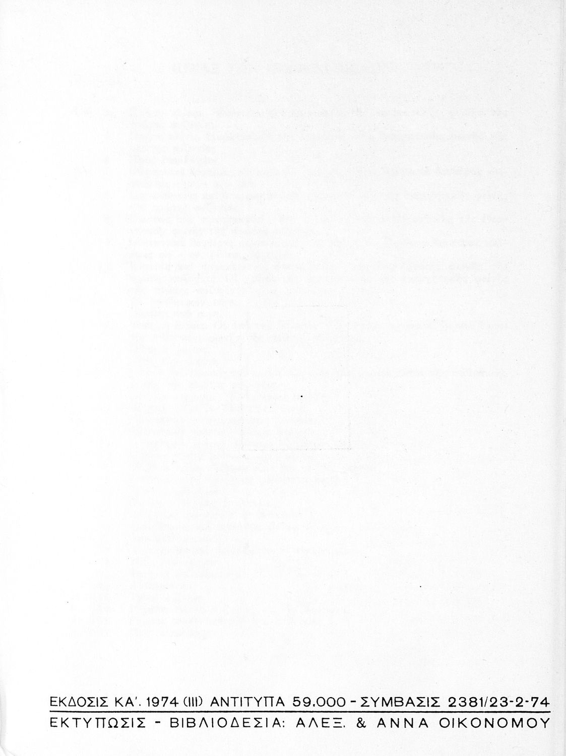 Εκδότης: Οργανισμός Εκδόσεως Διδακτικών Βιβλίων Έτος έκδοσης: 1974 Τόπος έκδοσης: Αθήνα Έκδοση: 21η Υπουργική απόφαση / Σύμβαση: 2381/23-2-1974 Έτος έγκρισης: 1974 |