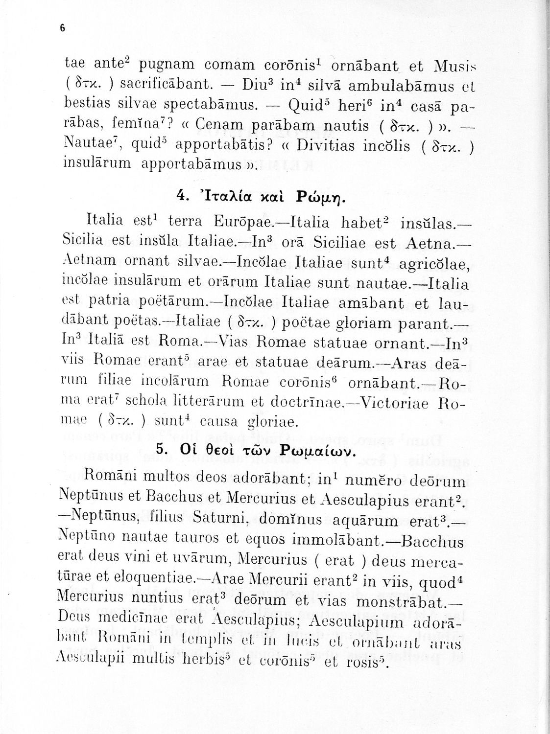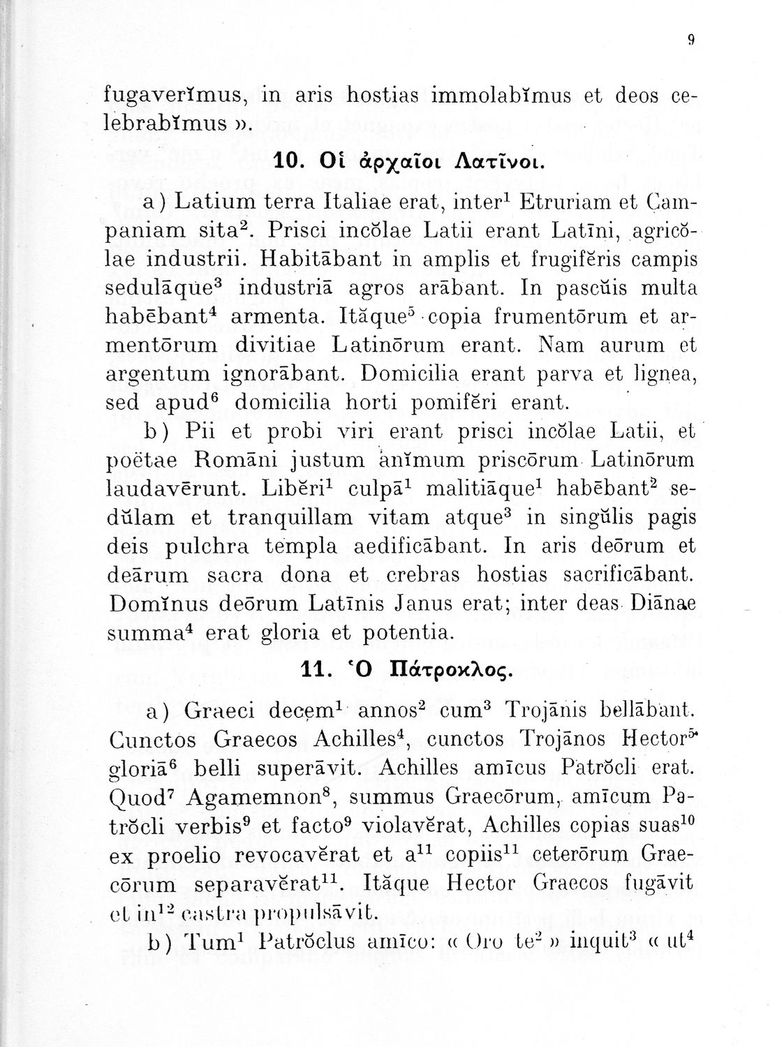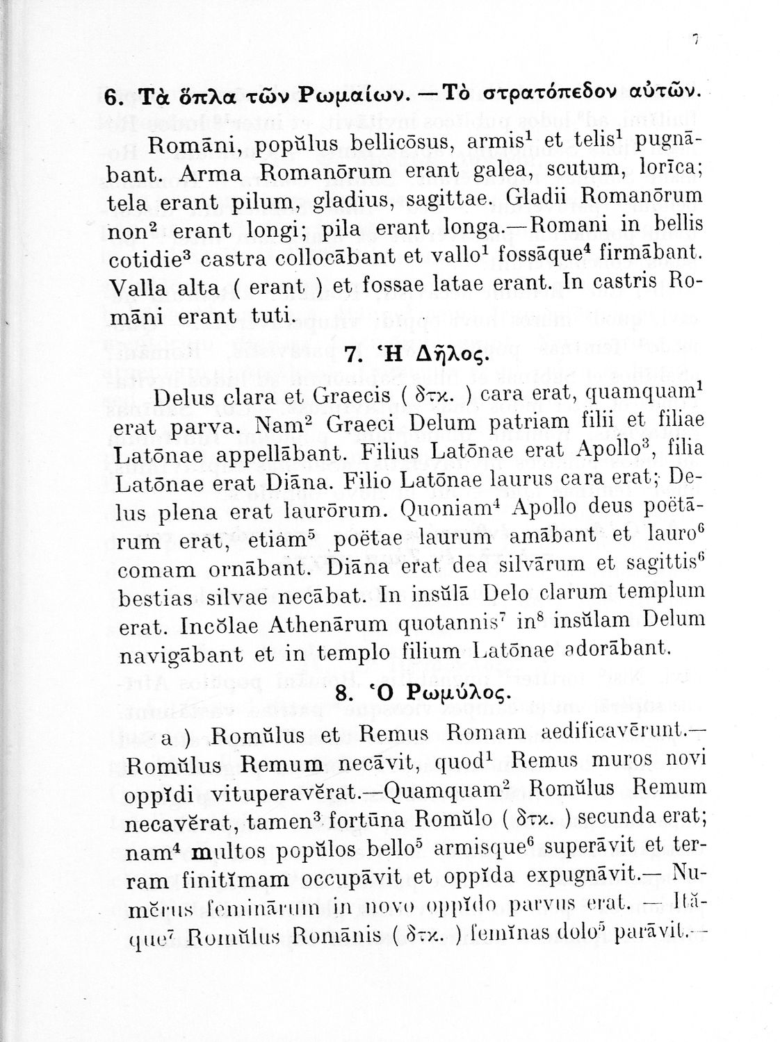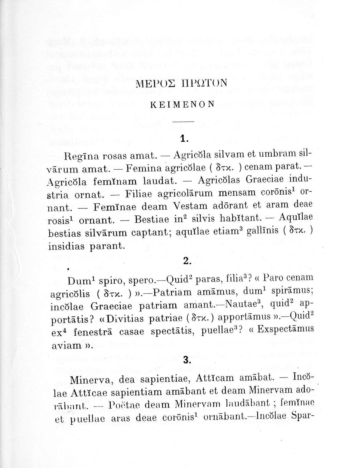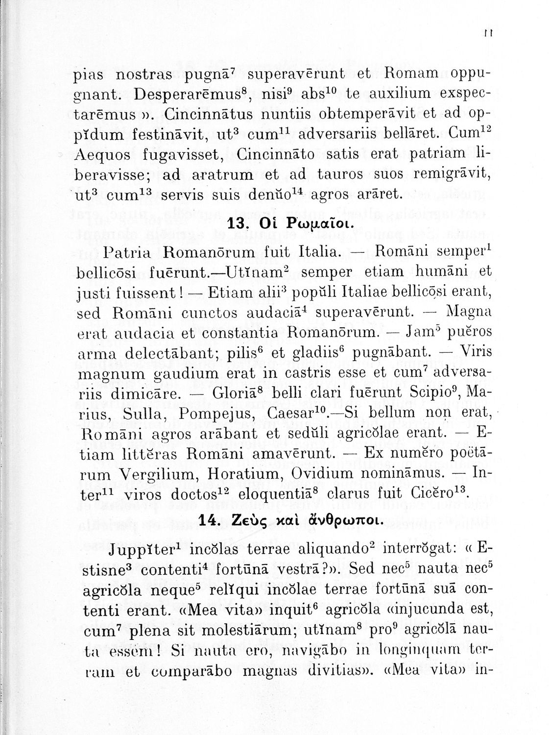 Σχολικό εγχειρίδιο Λατινικών για την Δ΄ Γυμνασίου που περιέχει 54 κείμενα/περικοπές στα λατινικά, ερμηνευτικά υπομνήματα, λεξιλόγιο και κατάλογο με τα συντακτικά φαινόμενα (αφαιρετική, προθέσεις, σύνδεσμοι) που διδάσκονται με βάση τις περικοπές.