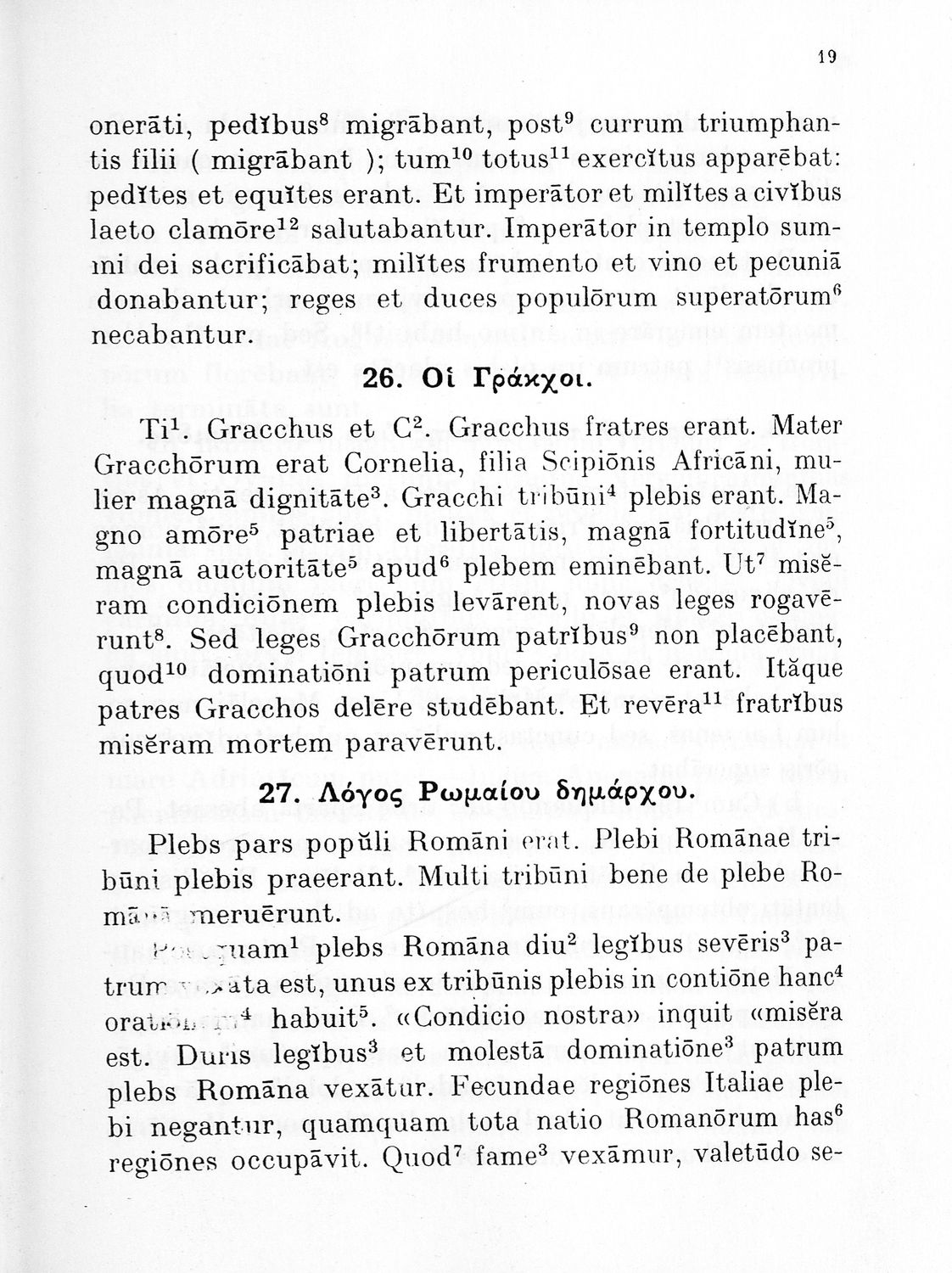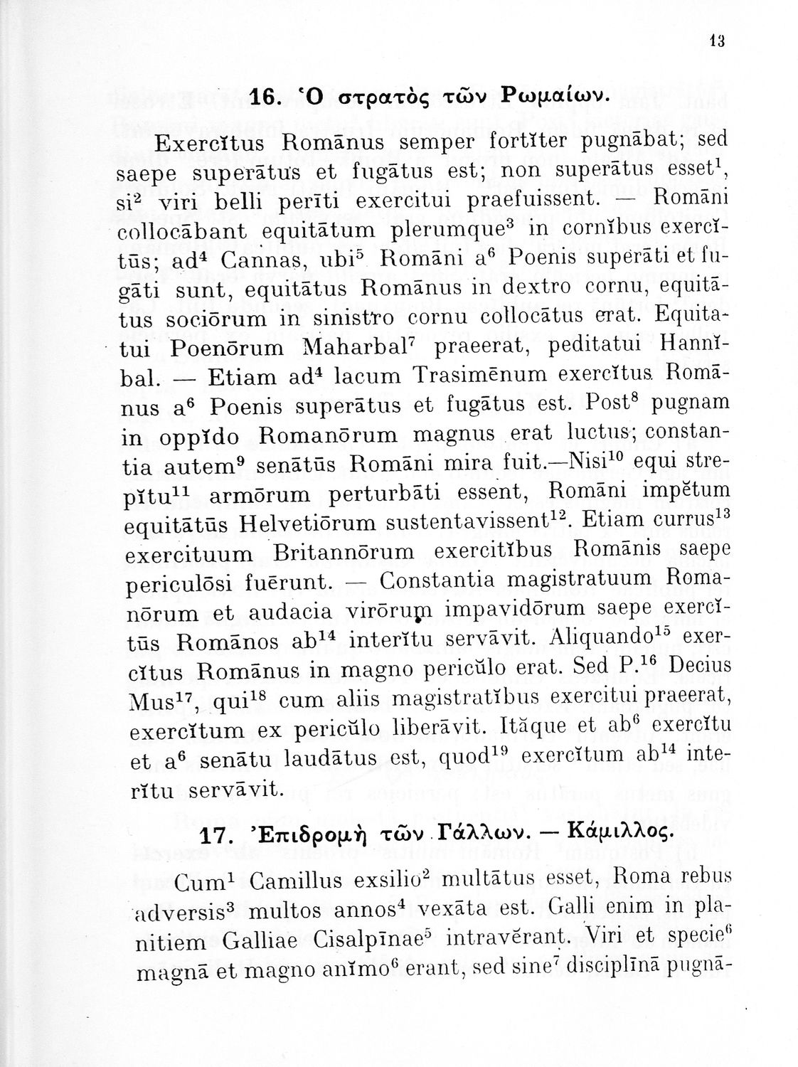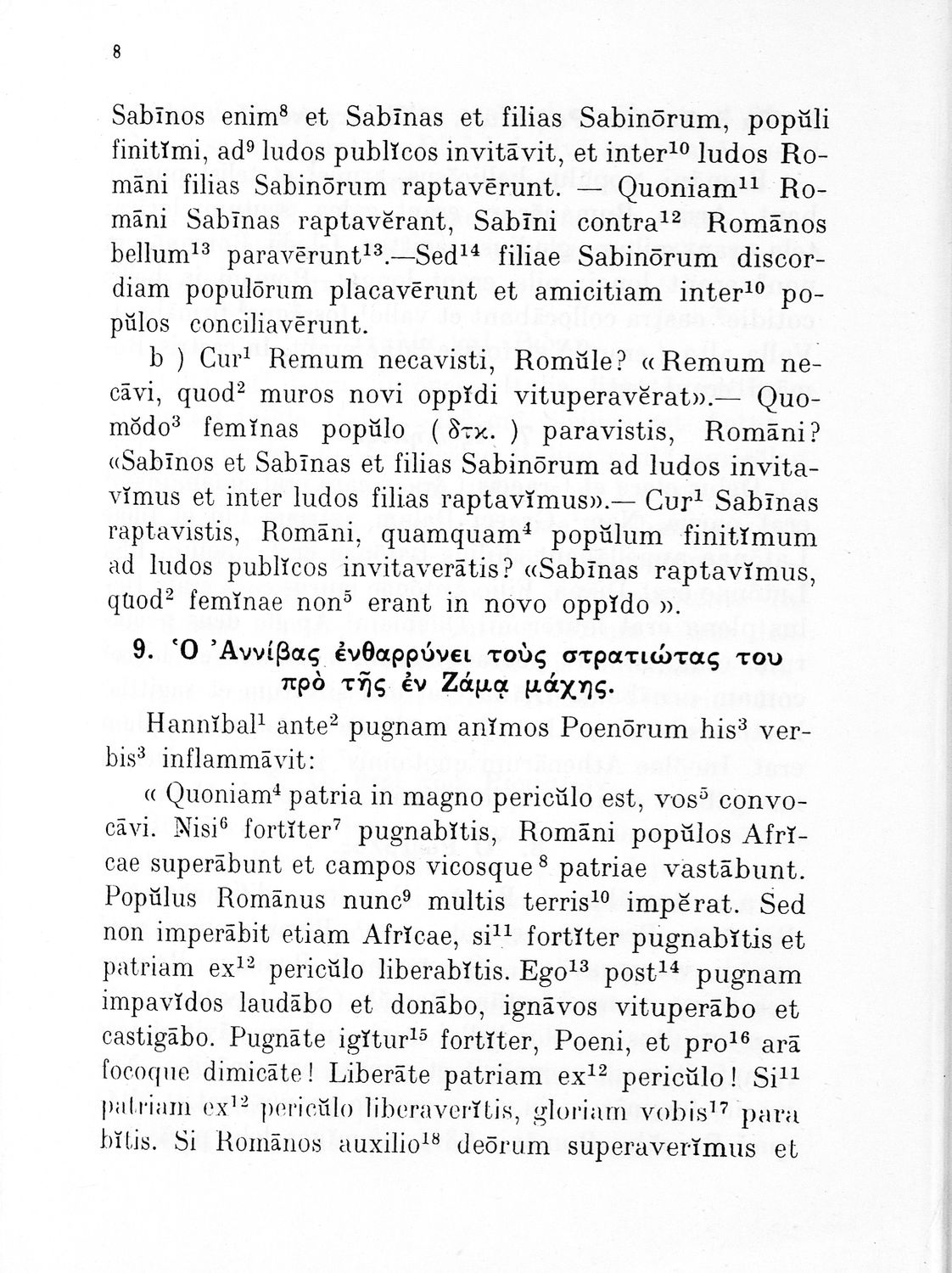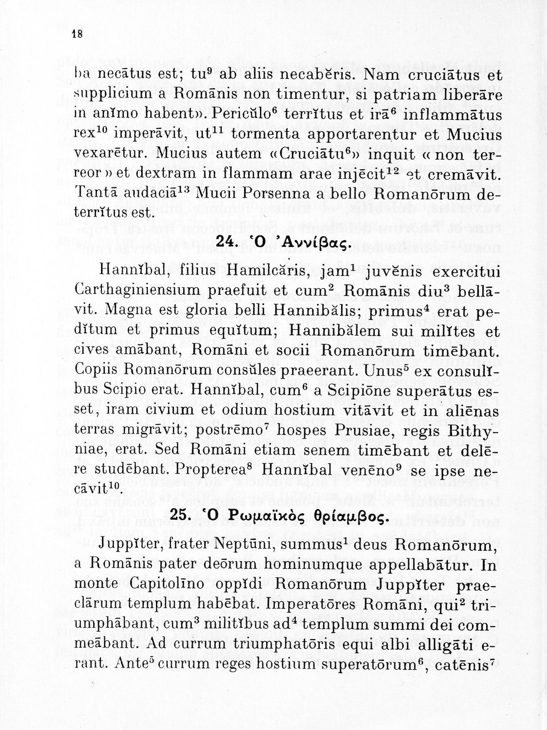 Σχολικό εγχειρίδιο Λατινικών για την Δ΄ Γυμνασίου που περιέχει 54 κείμενα/περικοπές στα λατινικά, ερμηνευτικά υπομνήματα, λεξιλόγιο και κατάλογο με τα συντακτικά φαινόμενα (αφαιρετική, προθέσεις, σύνδεσμοι) που διδάσκονται με βάση τις περικοπές.