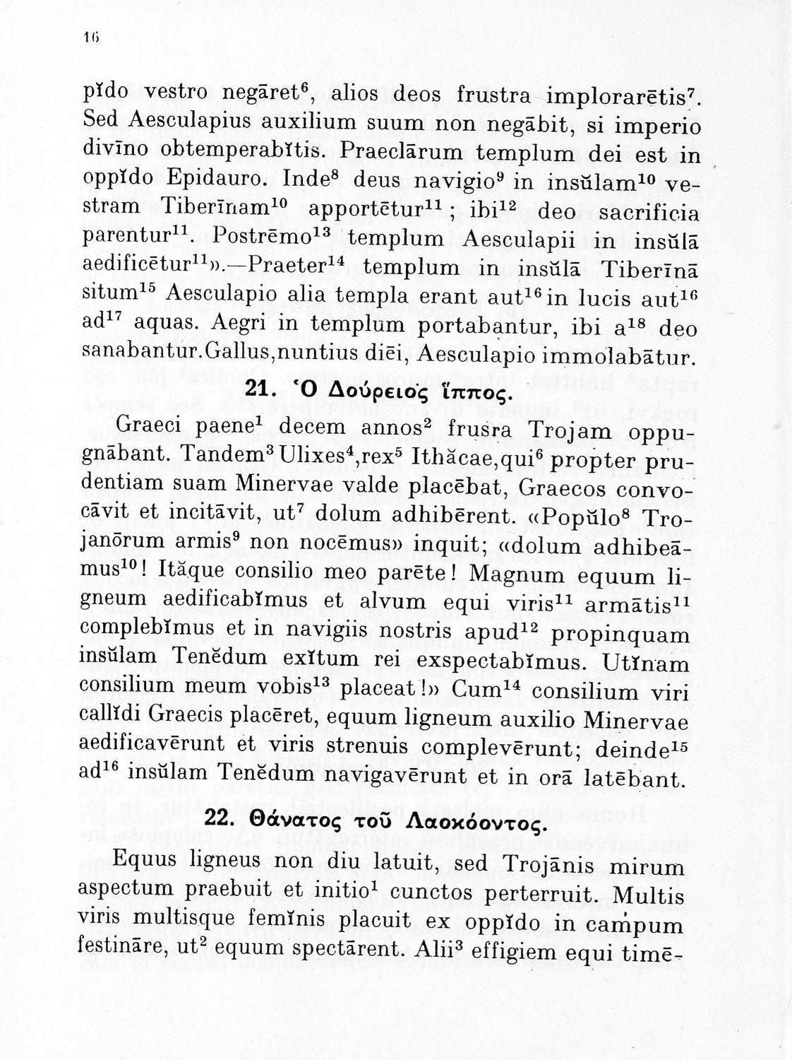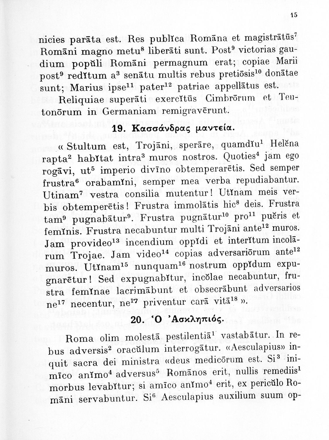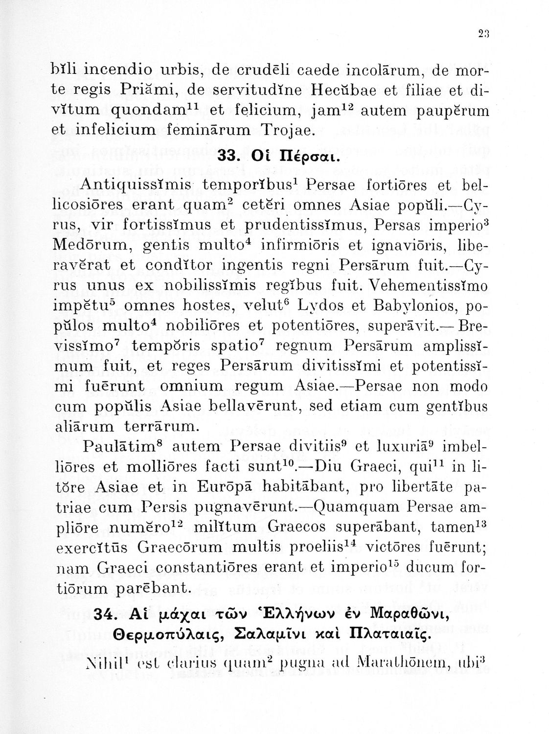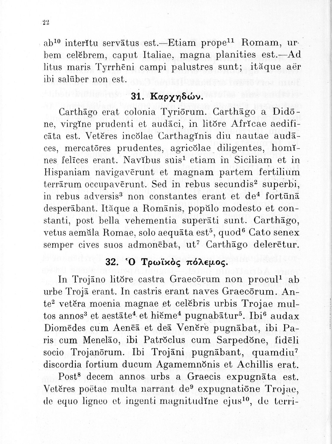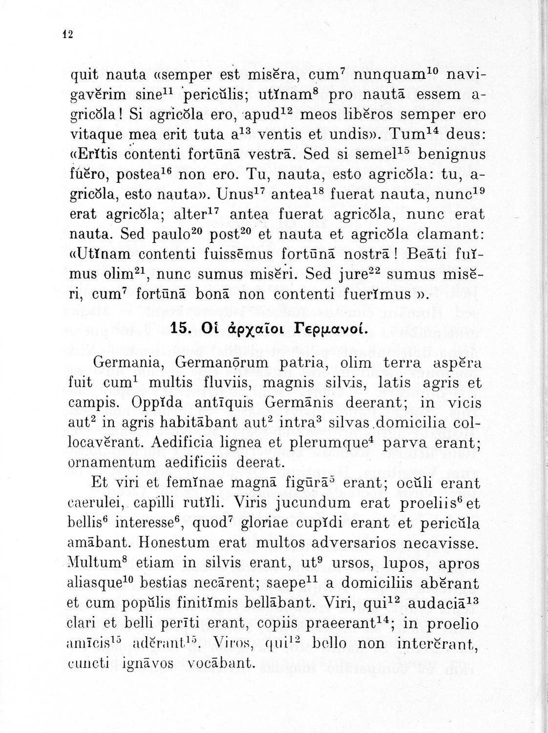 Σχολικό εγχειρίδιο Λατινικών για την Δ΄ Γυμνασίου που περιέχει 54 κείμενα/περικοπές στα λατινικά, ερμηνευτικά υπομνήματα, λεξιλόγιο και κατάλογο με τα συντακτικά φαινόμενα (αφαιρετική, προθέσεις, σύνδεσμοι) που διδάσκονται με βάση τις περικοπές.