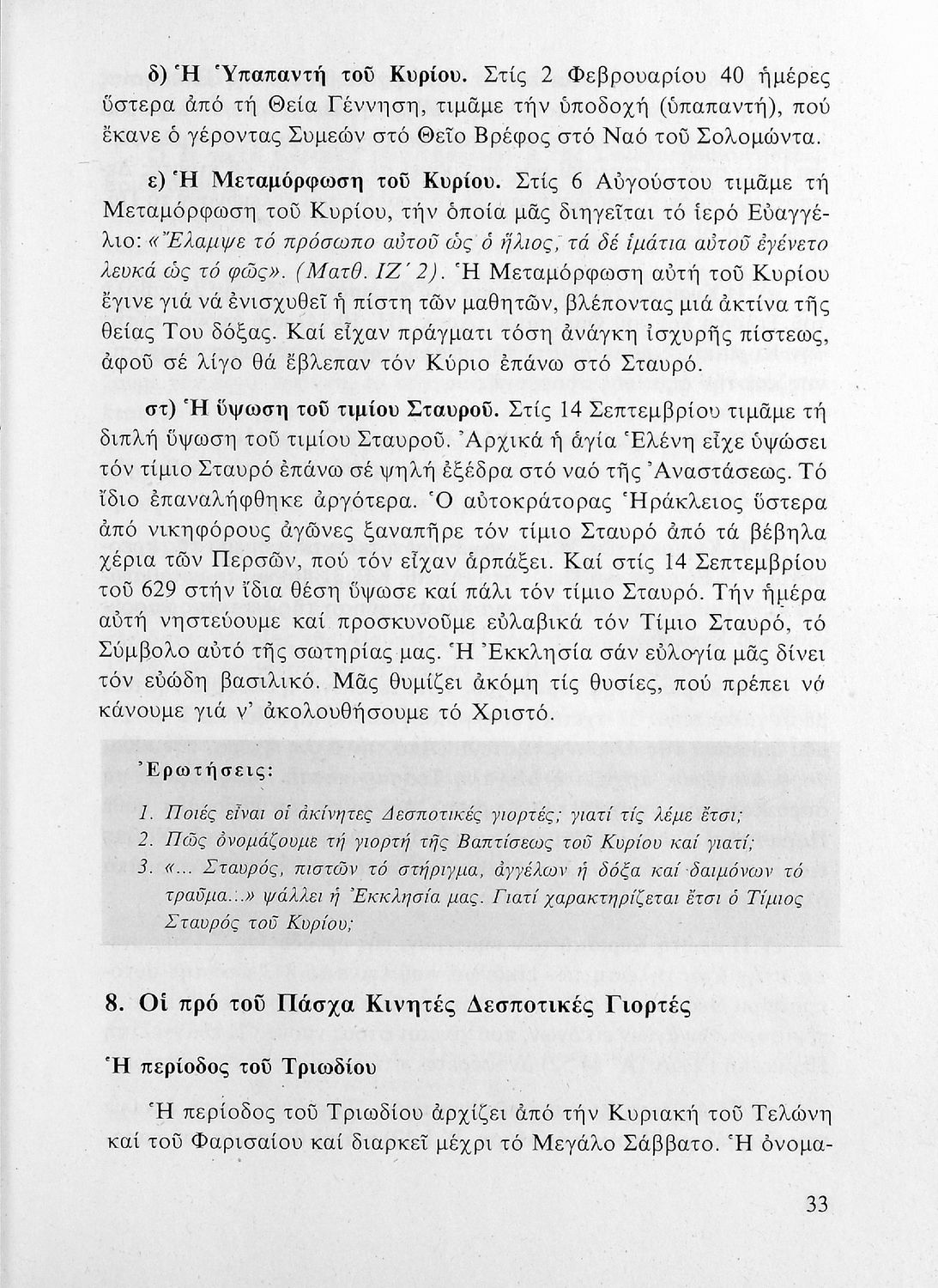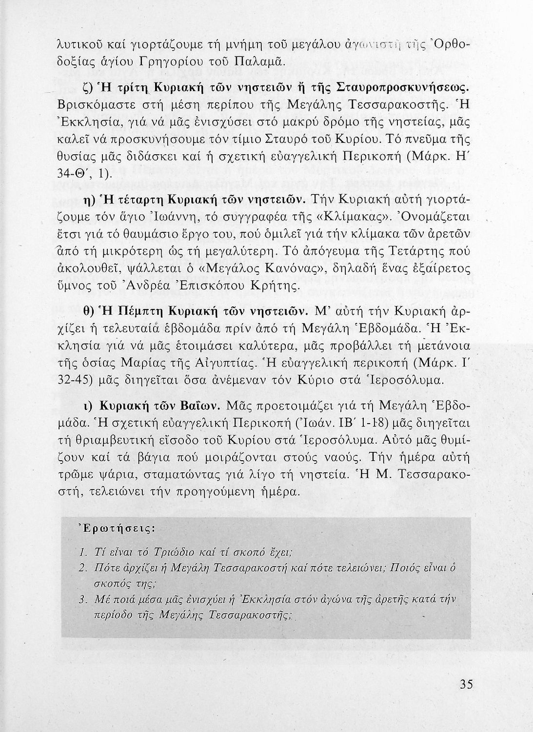 Λειτουργική και Κατήχηση για την ΣΤ΄ τάξη του Δημοτικού Σχολείου