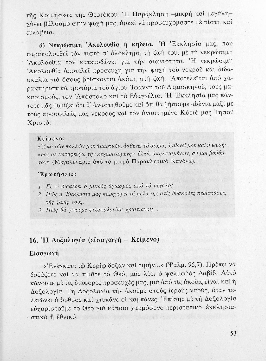 Λειτουργική και Κατήχηση για την ΣΤ΄ τάξη του Δημοτικού Σχολείου