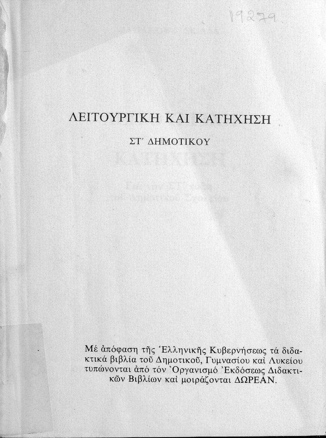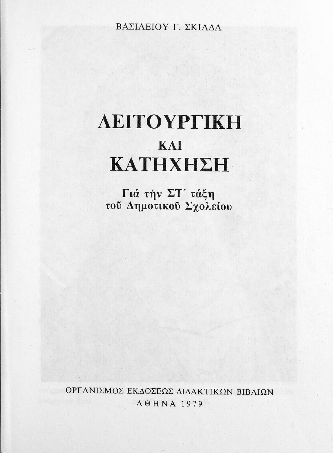 Κωδικός αναγνώρισης: 01-19279 Τίτλος: Λειτουργική και Κατήχηση για την ΣΤ΄ τάξη του Δημοτικού Σχολείου Συγγραφέας: Βασίλειος Γ. Σκιαδάς Μέγεθος και υπόστρωμα: Σχολικό εγχειρίδιο, 20εκ., μαλακό εξώφυλλο, 147 σελίδες. Εικόνες (έγχρωμες). |