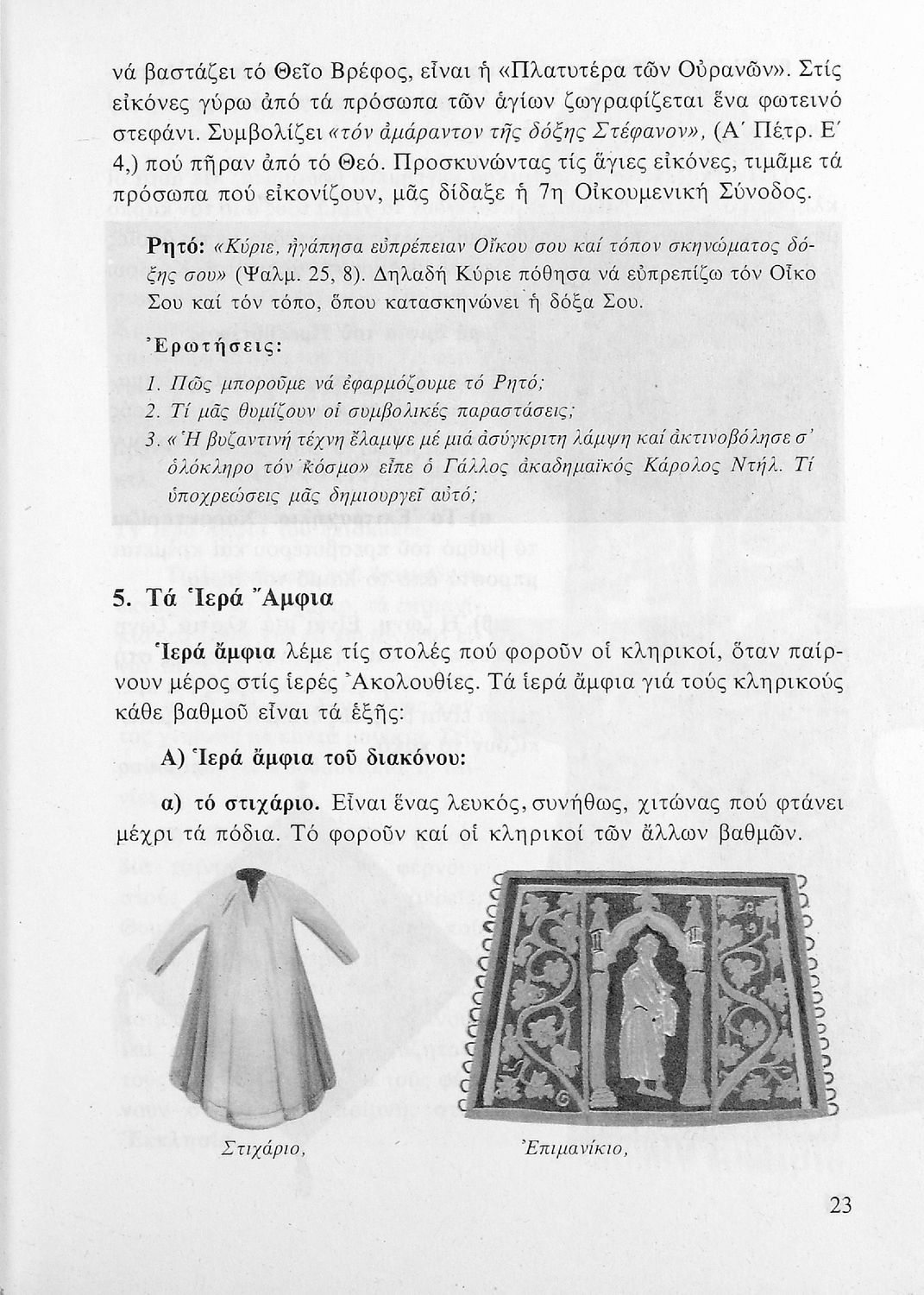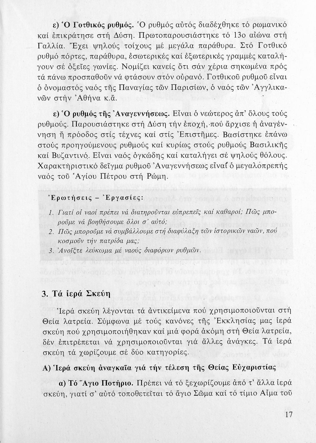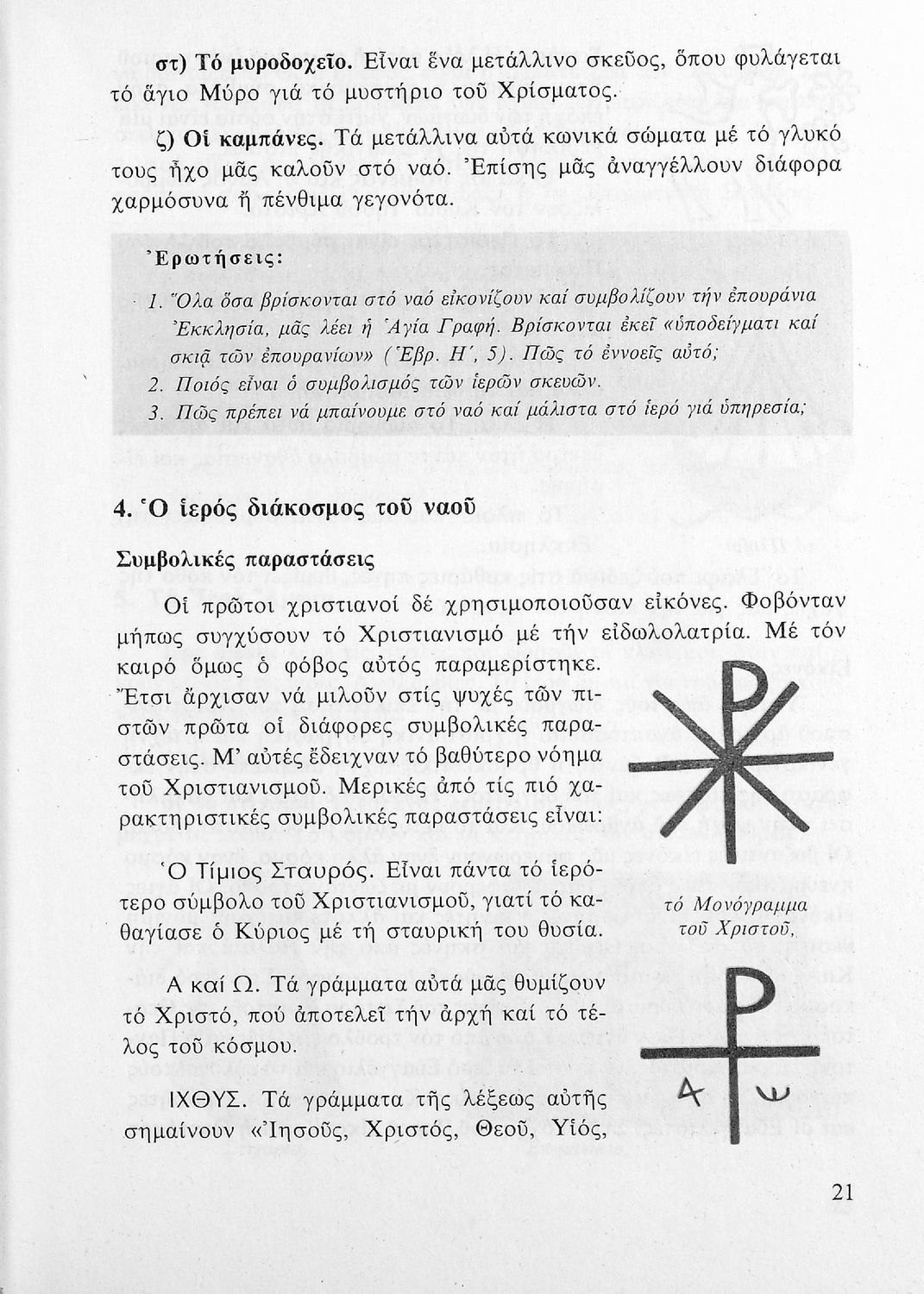 Βαθμίδα εκπαίδευσης: Πρωτοβάθμια Τάξη: ΣΤ' Δημοτικού Μάθημα: Θρησκευτικά Γλώσσα: Δημοτική Παρουσίαση περιεχομένου: Σχολικό εγχειρίδιο Θρησκευτικών ΣΤ΄ Δημοτικού που εστιάζει στους τρόπους και μέσα λειτουργίας και κατήχησης της Ορθόδοξης Χριστιανικής Εκκλησίας. |