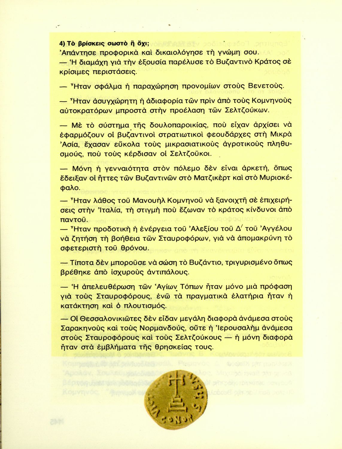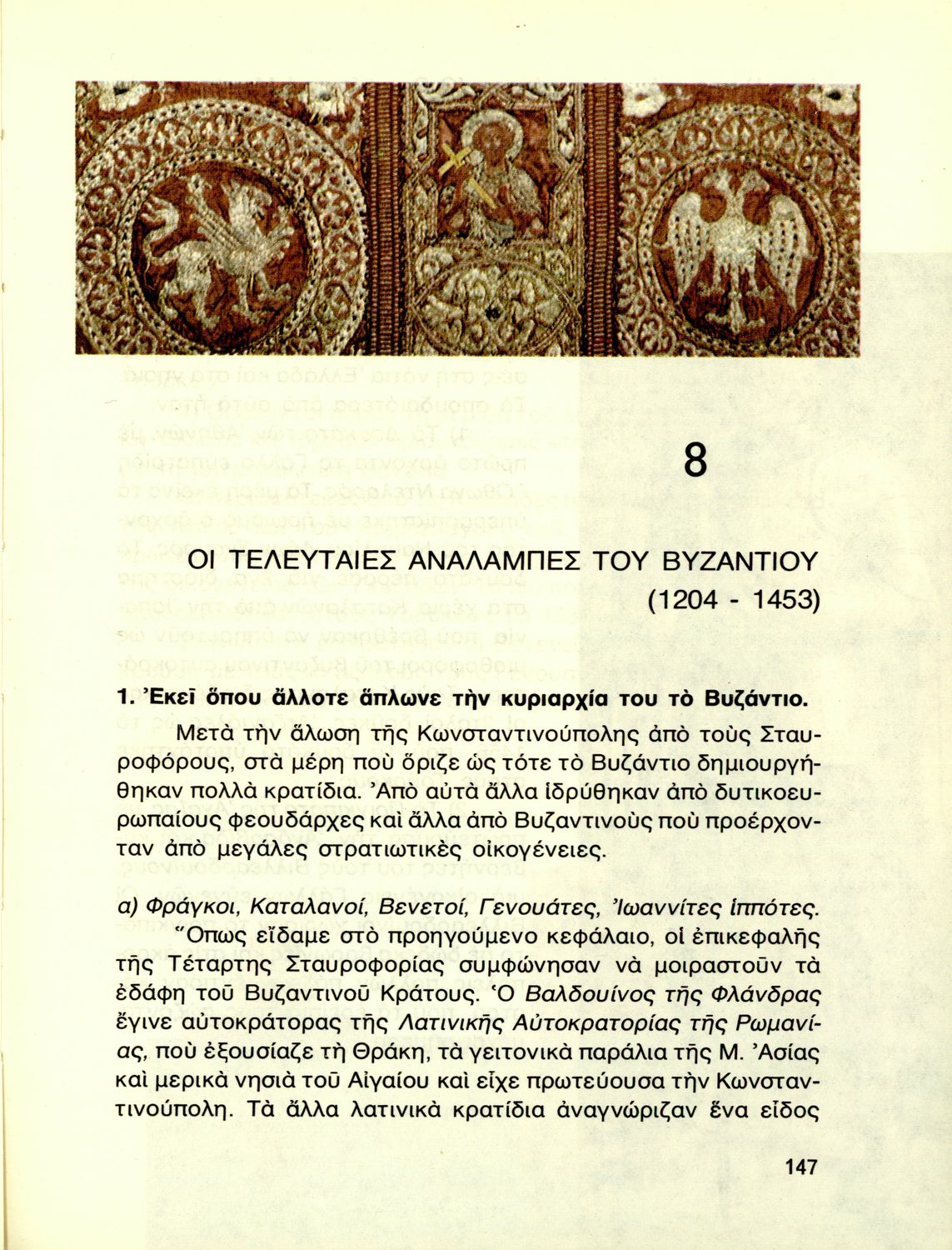 Σχολικό εγχειρίδιο της Ε΄ Δημοτικού για το μάθημα της Ιστορίας. Αναφέρεται στη ρωμαϊκή και Βυζαντινή Αυτοκρατορία. Αναλύεται το έργο και η δράση κάθε αυτοκράτορα τελειώνει με την άλωση και την επικράτηση των Οθωμανών. Στο τέλος αναφέρεται στα γράμματα και τις ανακαλύψεις των νέων χωρών.