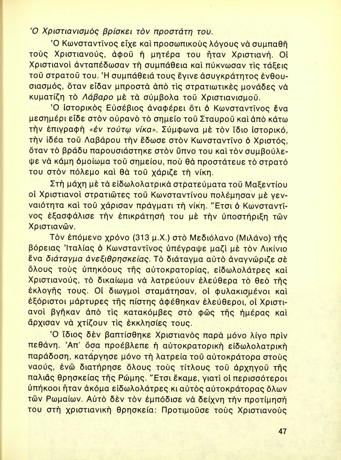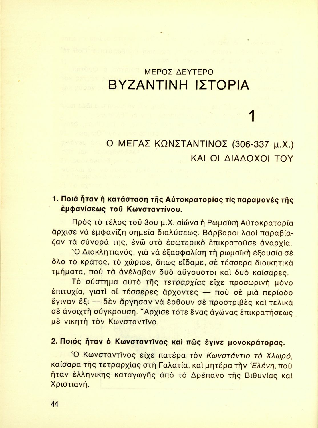 Μαθητικό βοήθημα Ιστορίας Δ΄ Δημοτικού που καλύπτει την περίοδο της Ρωμαϊκής και Βυζαντινής Αυτοκρατορίας μέχρι και την άλωση της Κωνσταντινούπολης. Ο συγγραφέας ήταν επιθεωρητής Δημοτικών Σχολείων.