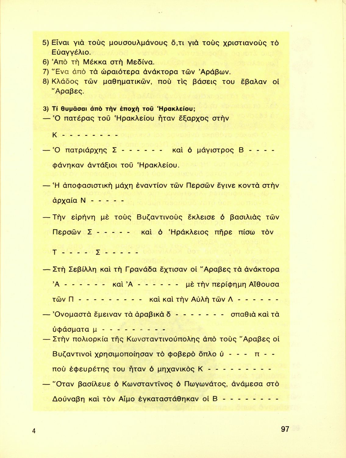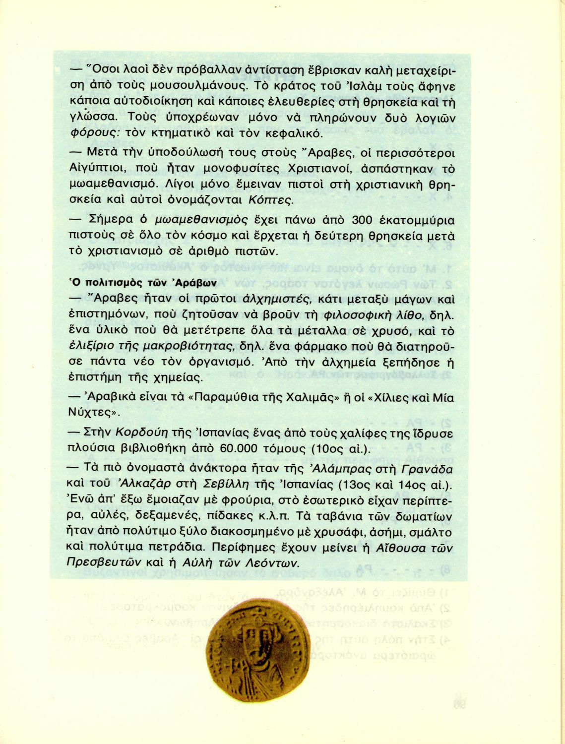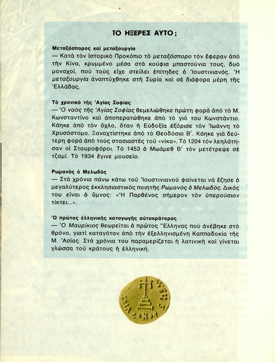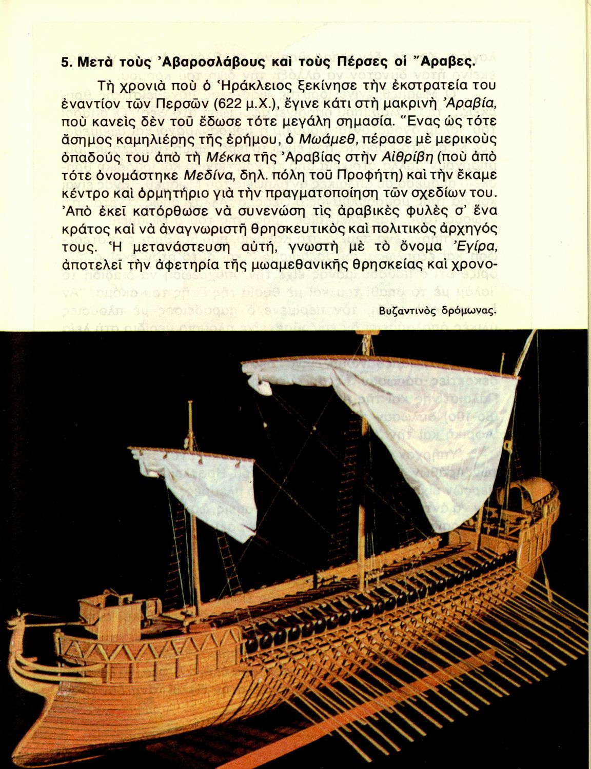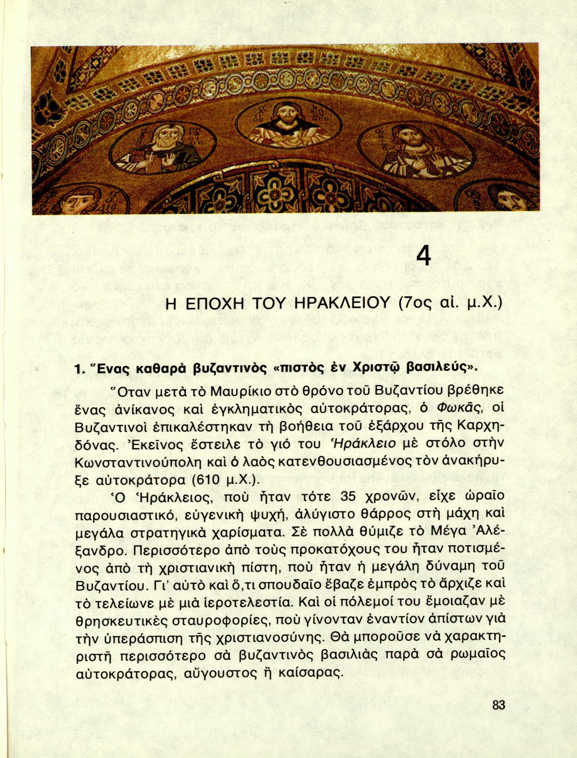Σχολικό εγχειρίδιο της Ε΄ Δημοτικού για το μάθημα της Ιστορίας. Αναφέρεται στη ρωμαϊκή και Βυζαντινή Αυτοκρατορία. Αναλύεται το έργο και η δράση κάθε αυτοκράτορα τελειώνει με την άλωση και την επικράτηση των Οθωμανών. Στο τέλος αναφέρεται στα γράμματα και τις ανακαλύψεις των νέων χωρών.