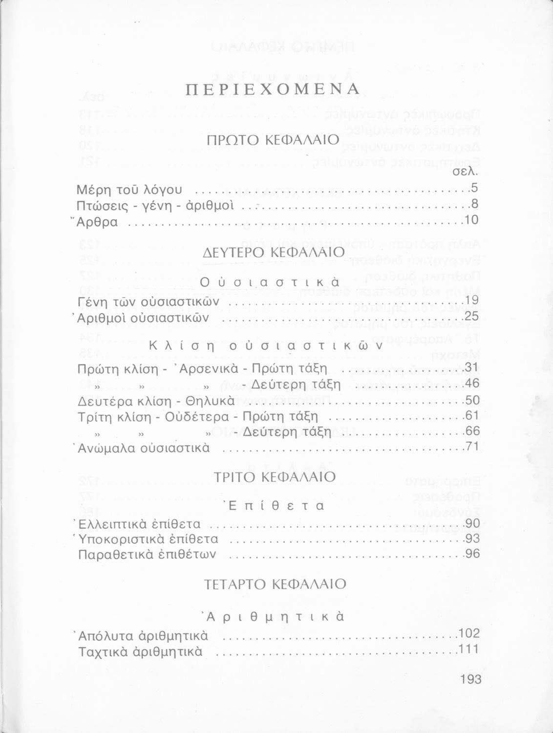 Σχολικό εγχειρίδιο Γραμματικής για την Ε' και ΣΤ΄ τάξη με κανόνες και παράδειγμα που εστιάζει στα μέρη του λόγου και στην κλίση τους. Το βιβλίο αποτελεί σύνοψη Της Μικρής Νεοελληνικής Γραμματικής του ίδιου ...