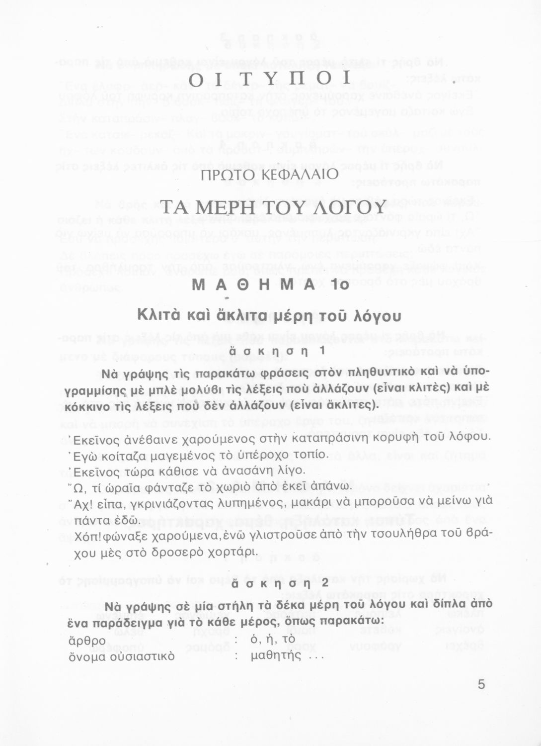Σχολικό εγχειρίδιο για την Ε΄ και ΣΤ΄ Δημοτικού με κείμενα και ασκήσεις πάνω σε μαθήματα της Γραμματικής για εξάσκηση και εμπέδωση των μαθητών.