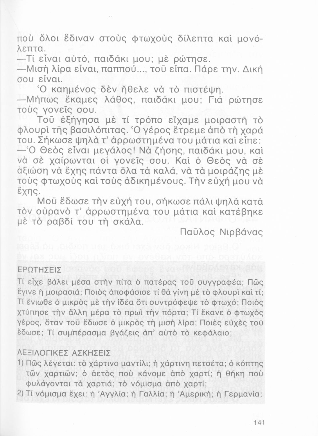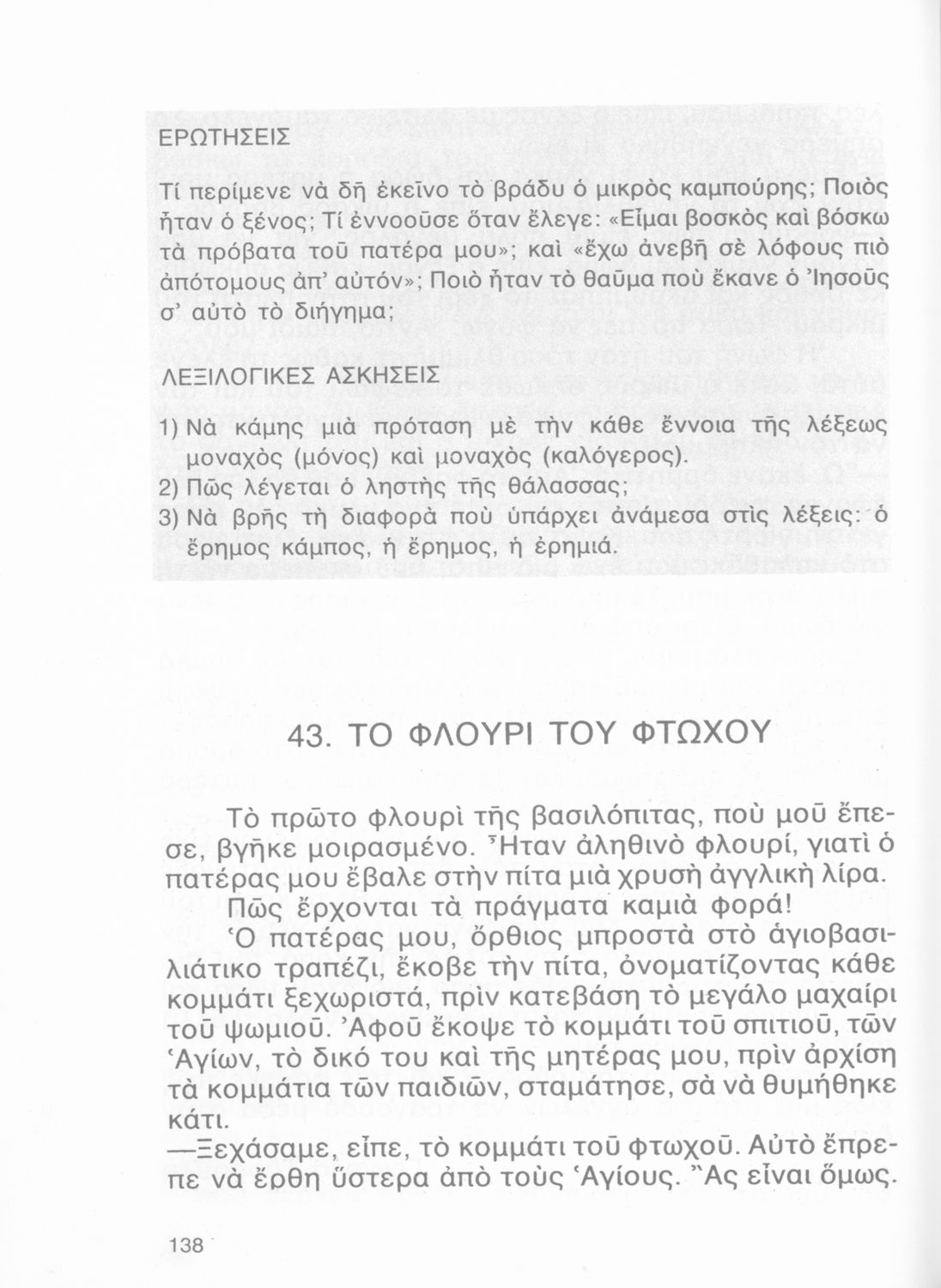 Παρουσίαση περιεχομένου: Αναγνωστικό της Γ΄ Δημοτικού που περιέχει πεζά και ποιήματα εμπνευσμένα από την κοινωνική και οικογενειακή ζωή του τόπου. Περιλαμβάνει ερωτήσεις κατανόησης και λεξιλογικές ασκήσεις.