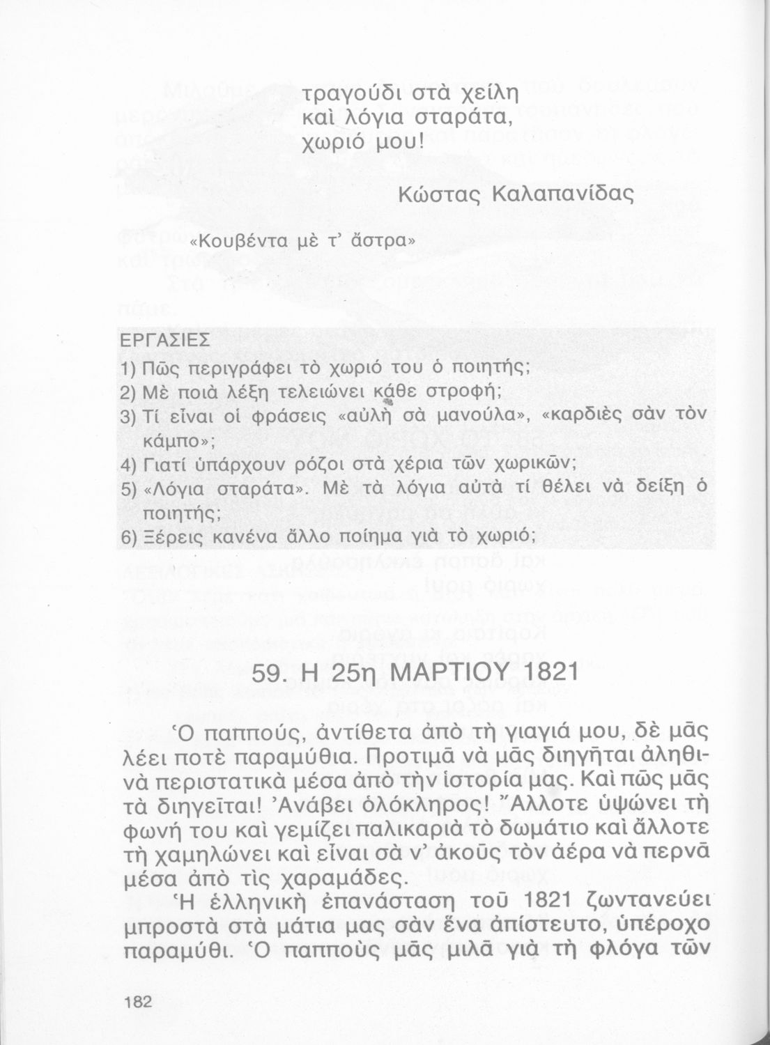 Παρουσίαση περιεχομένου: Αναγνωστικό της Γ΄ Δημοτικού που περιέχει πεζά και ποιήματα εμπνευσμένα από την κοινωνική και οικογενειακή ζωή του τόπου. Περιλαμβάνει ερωτήσεις κατανόησης και λεξιλογικές ασκήσεις.