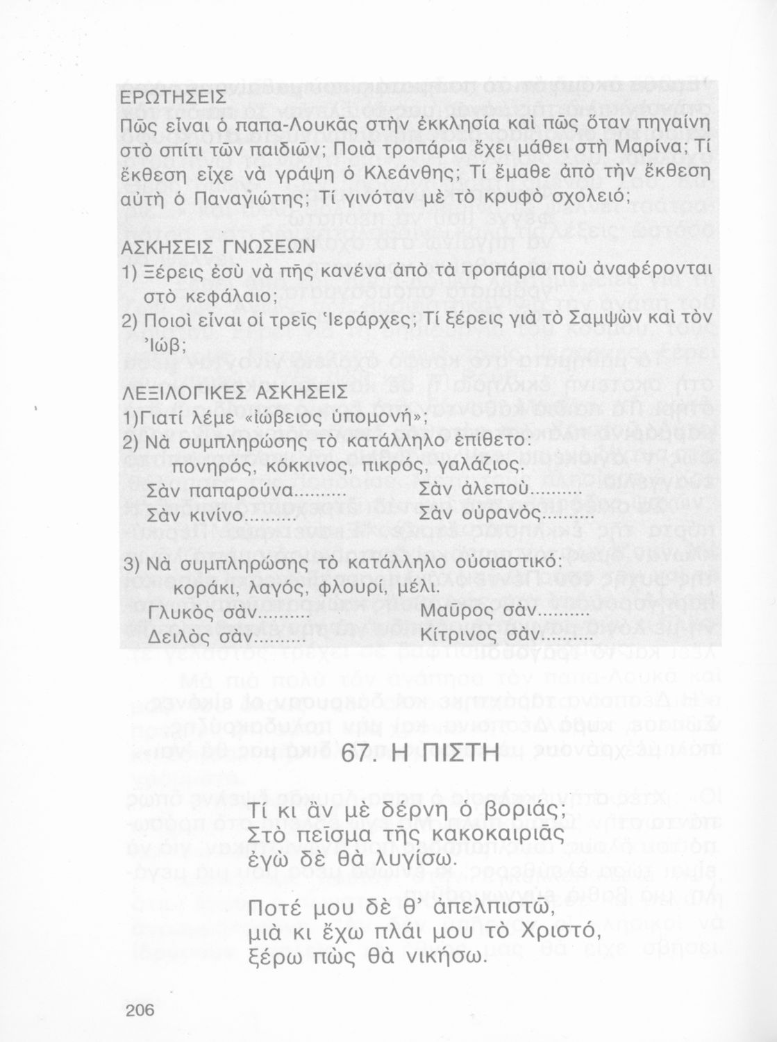 Αναγνωστικό Γ΄ Δημοτικού που περιλαμβάνει ποιήματα και πεζά με θέματα όπως η καλή και κακή συναναστροφή, η φρόνηση, η οκνηρία, η φιλανθρωπία και η πίστη στο Θεό