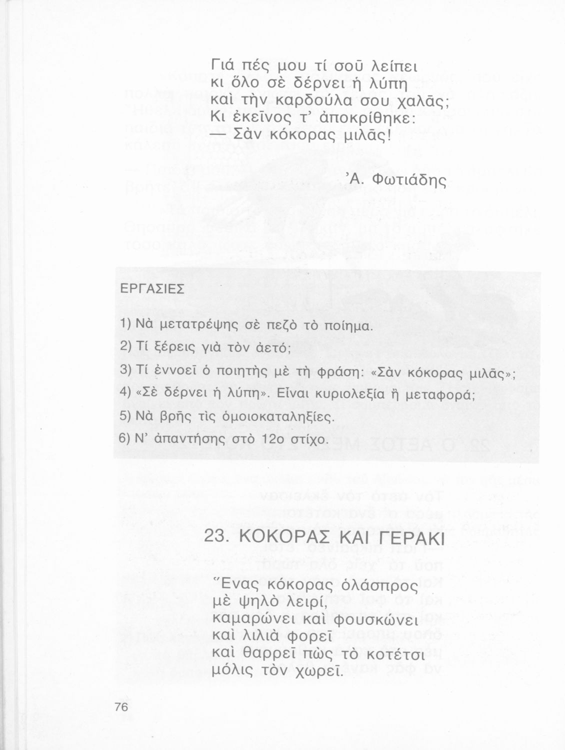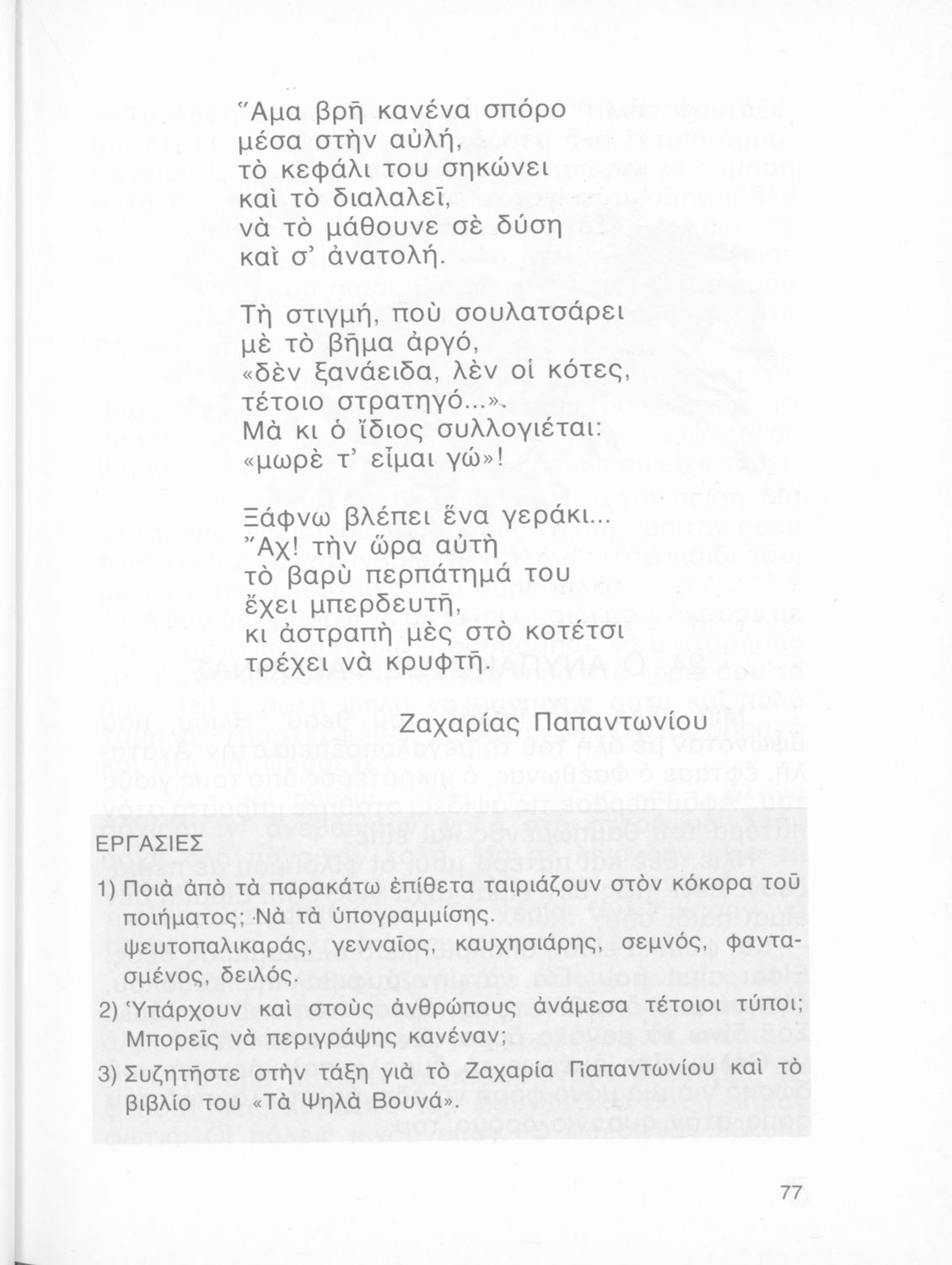 Αναγνωστικό Γ' Δημοτικού που είναι χωρισμένο σύμφωνα με τις εποχές του χρόνου και περιλαμβάνει ποιήματα και πεζά εμπνευσμένα από τη ζωή στην ύπαιθρο, την εθνική, οικογενειακή και κοινωνική ζωή, τη θρησκευτική ...