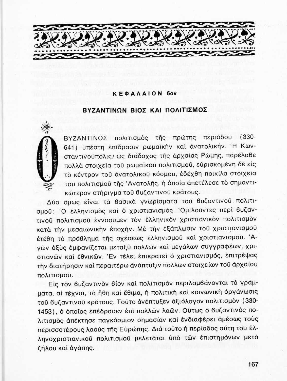 Σχολικό εγχειρίδιο Ιστορίας Β΄ και Ε΄ Γυμνασίου που καλύπτει την περίοδο από την άνοδο του Μ. Κωνσταντίνου στο θρόνο μέχρι και την άλωση της Κωνσταντινούπολης. Παρουσιάζει και τα πνευματικά και καλλιτεχνικά ρεύματα της περιόδου.