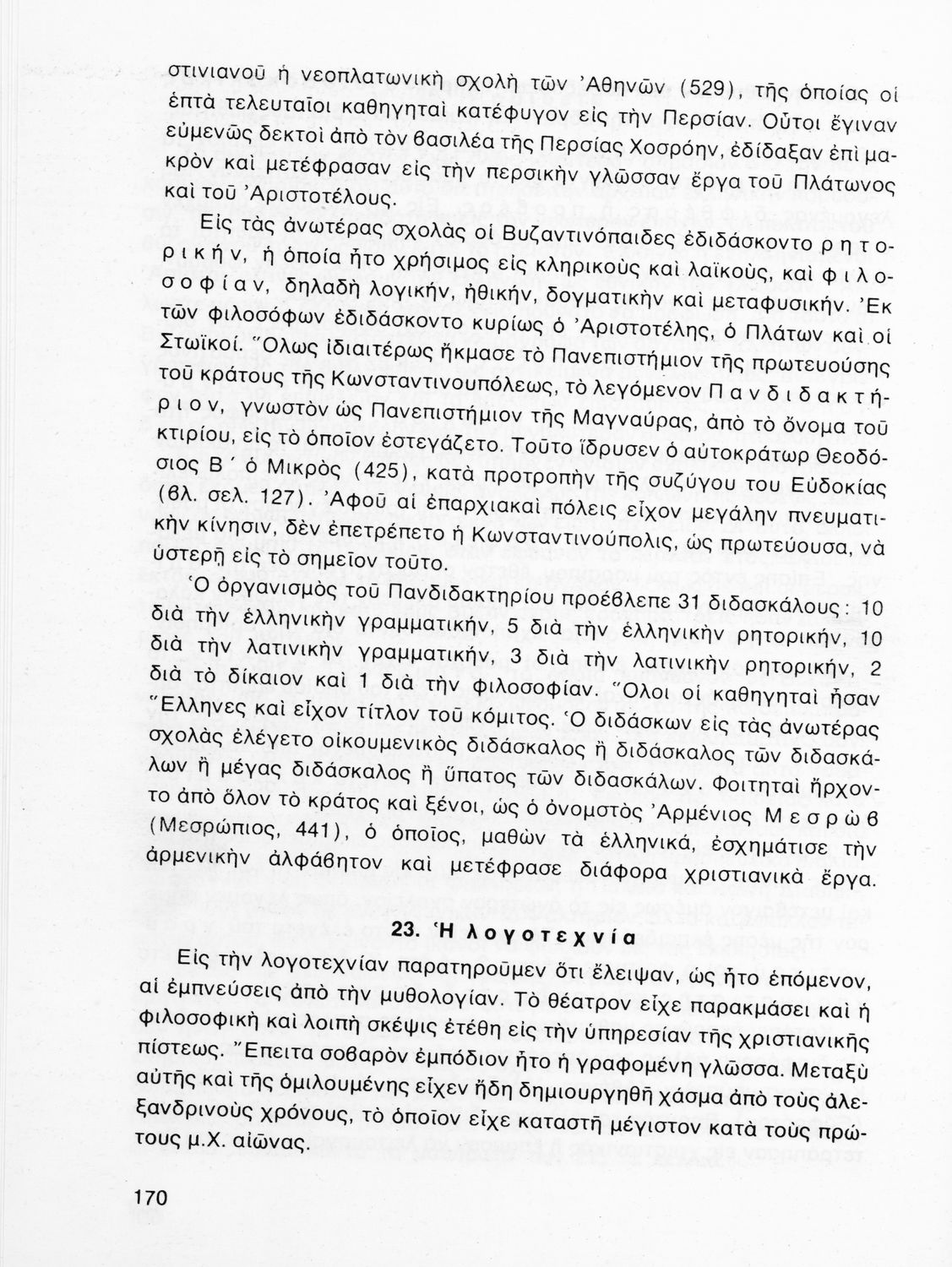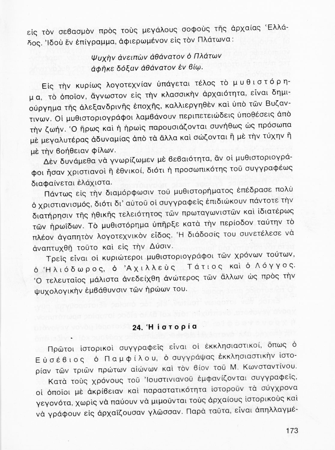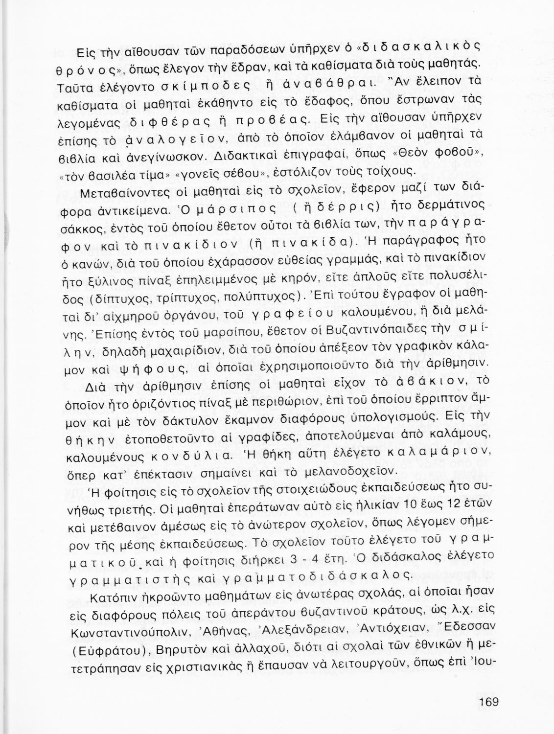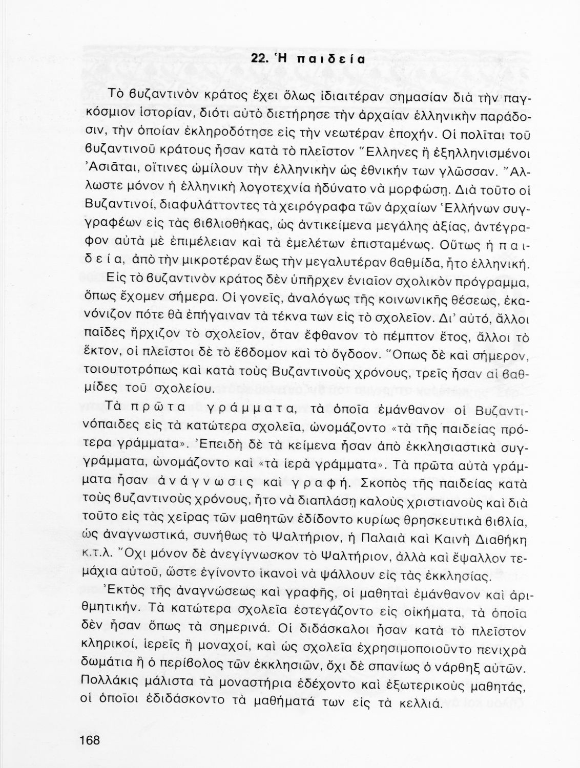 Βαθμίδα εκπαίδευσης: Δευτεροβάθμια Τάξη: Β' Γυμνασίου / Ε' Γυμνασίου Μάθημα: Ιστορία Γλώσσα: Απλή καθαρεύουσα Παρουσίαση περιεχομένου: Σχολικό εγχειρίδιο Ιστορίας Β΄ και Ε΄ Γυμνασίου που καλύπτει την περίοδο από την άνοδο του Μ. Κωνσταντίνου στο θρόνο μέχρι και την άλωση της Κωνσταντινούπολης. Παρουσιάζει και τα πνευματικά και καλλιτεχνικά ρεύματα της περιόδου. |