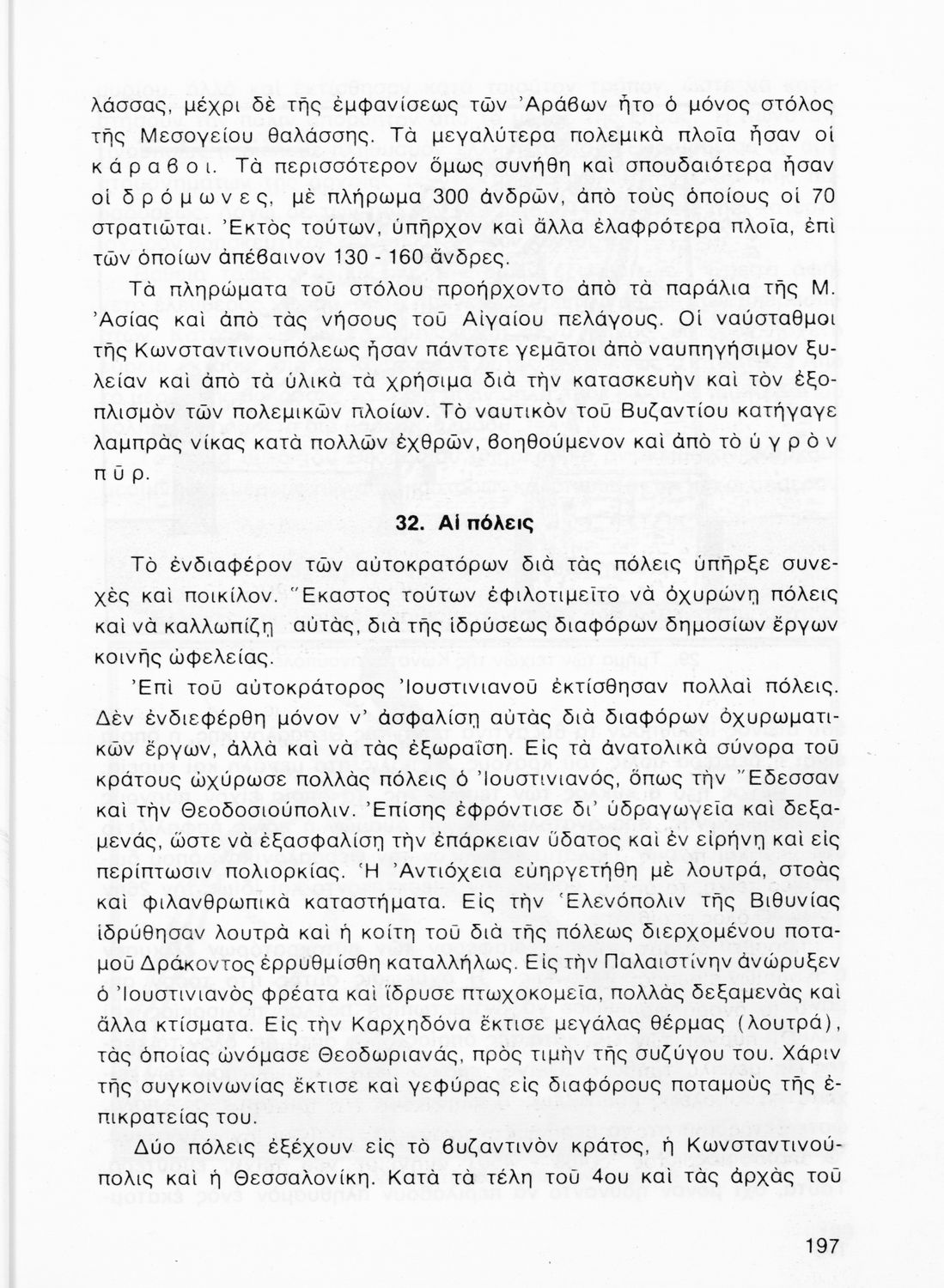 Σχολικό εγχειρίδιο Ιστορίας Β΄ και Ε΄ Γυμνασίου που καλύπτει την περίοδο από την άνοδο του Μ. Κωνσταντίνου στο θρόνο μέχρι και την άλωση της Κωνσταντινούπολης. Παρουσιάζει και τα πνευματικά και καλλιτεχνικά ρεύματα της περιόδου.