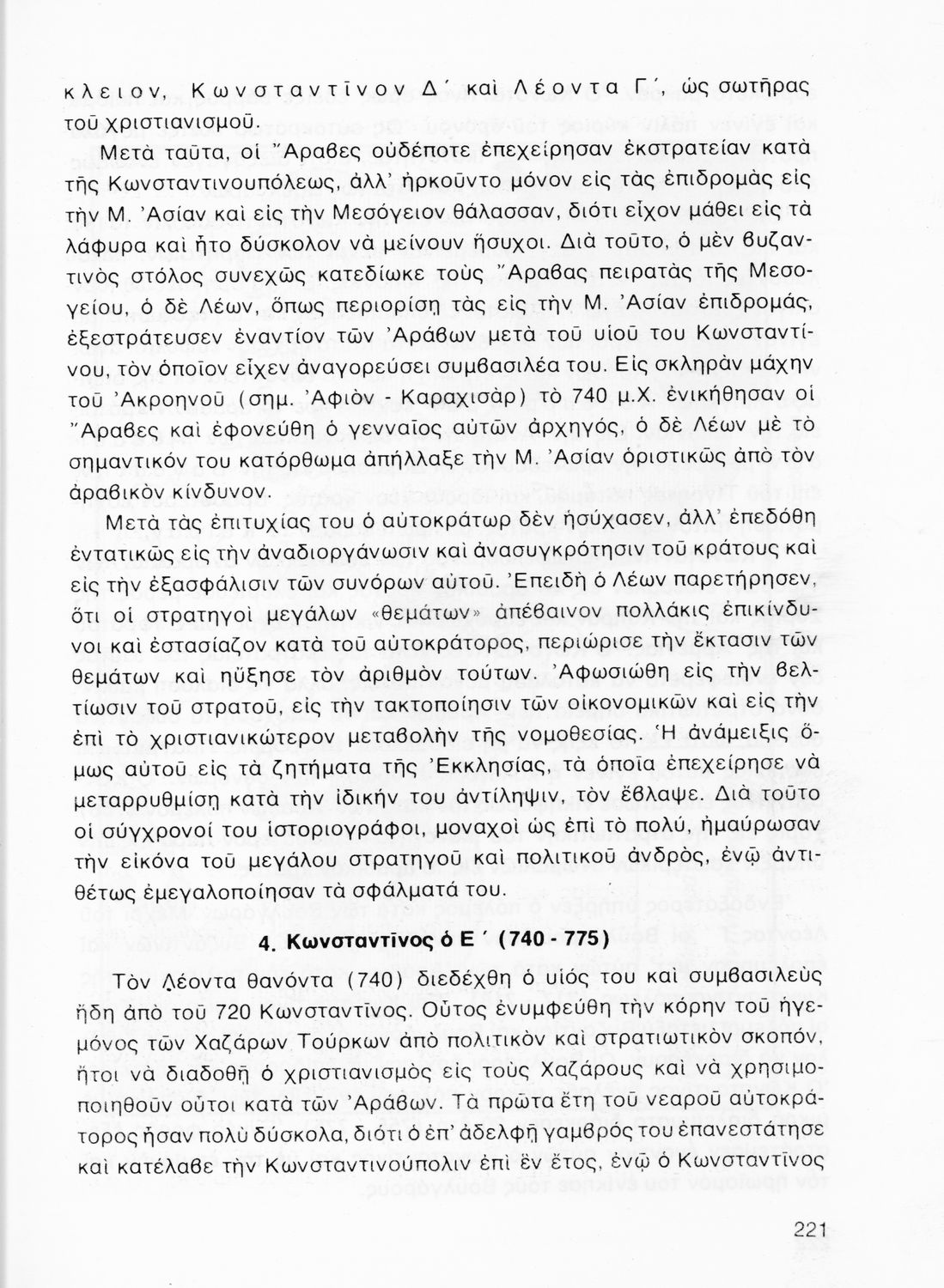 Σχολικό εγχειρίδιο Ιστορίας Β΄ και Ε΄ Γυμνασίου που καλύπτει την περίοδο από την άνοδο του Μ. Κωνσταντίνου στο θρόνο μέχρι και την άλωση της Κωνσταντινούπολης. Παρουσιάζει και τα πνευματικά και καλλιτεχνικά ρεύματα της περιόδου.