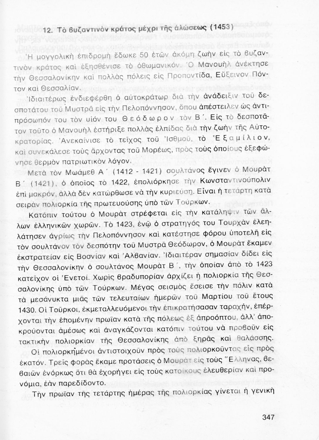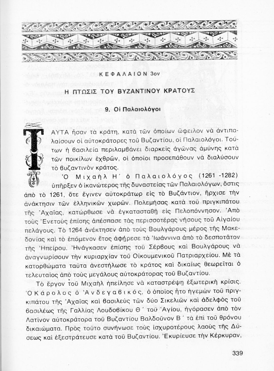 Σχολικό εγχειρίδιο Ιστορίας Β΄ και Ε΄ Γυμνασίου που καλύπτει την περίοδο από την άνοδο του Μ. Κωνσταντίνου στο θρόνο μέχρι και την άλωση της Κωνσταντινούπολης. Παρουσιάζει και τα πνευματικά και καλλιτεχνικά ρεύματα της περιόδου.