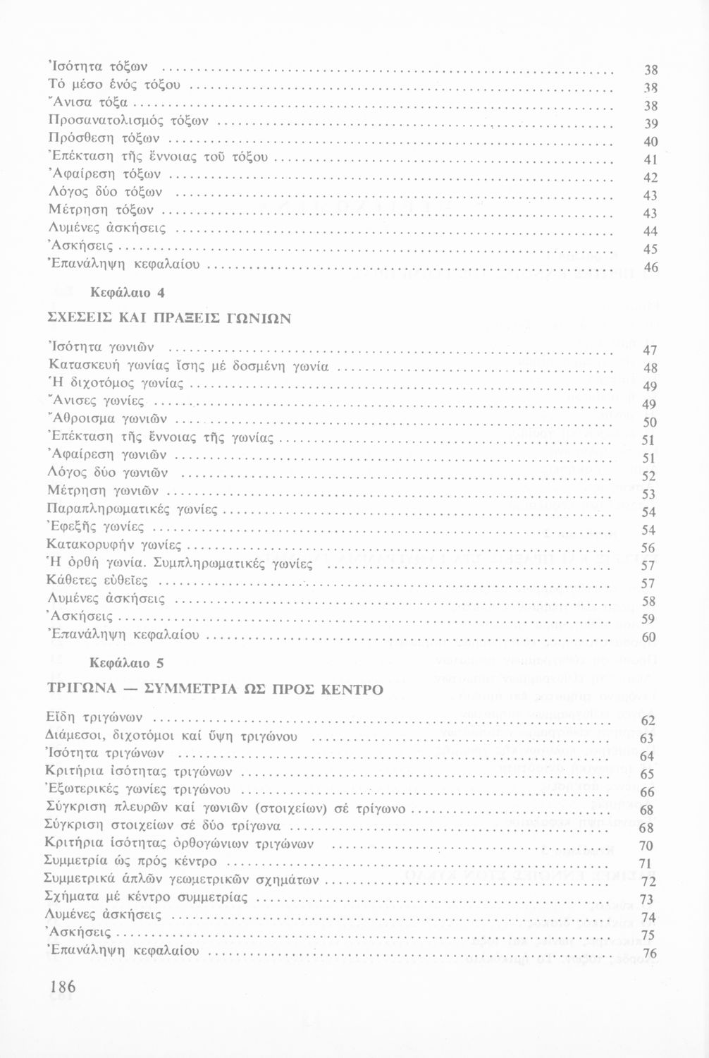 Σχολικό εγχειρίδιο Γεωμετρίας για τις Α΄, Β΄, Γ΄ Γυμνασίου που είναι χωρισμένο σε Επιπεδομετρία και Στερεομετρία και περιλαμβάνει θεωρία και ασκήσεις.