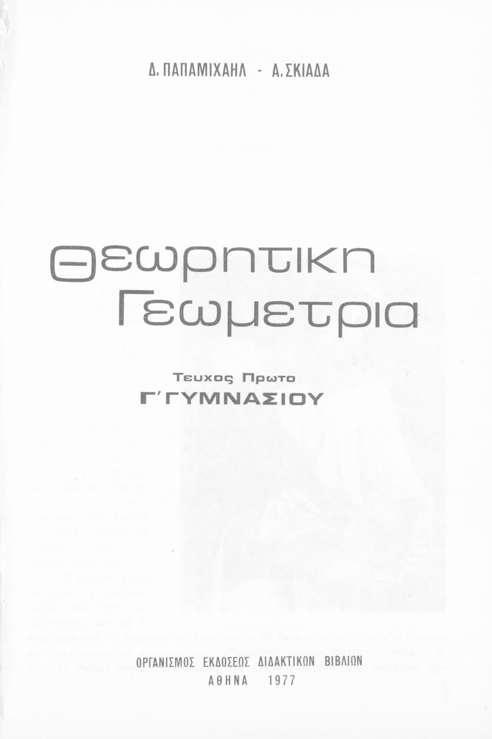 Σχολικό εγχειρίδιο Γεωμετρίας για τις Α΄, Β΄, Γ΄ Γυμνασίου που είναι χωρισμένο σε Επιπεδομετρία και Στερεομετρία και περιλαμβάνει θεωρία και ασκήσεις.